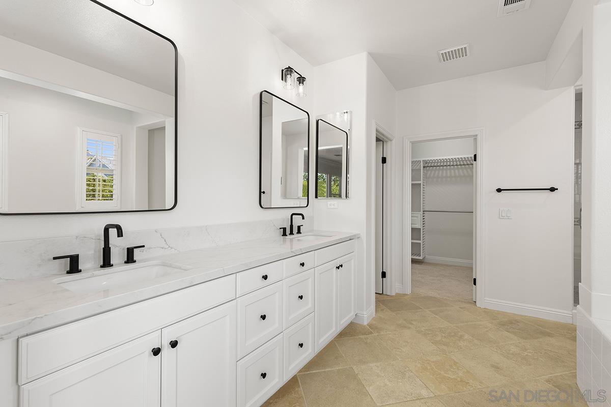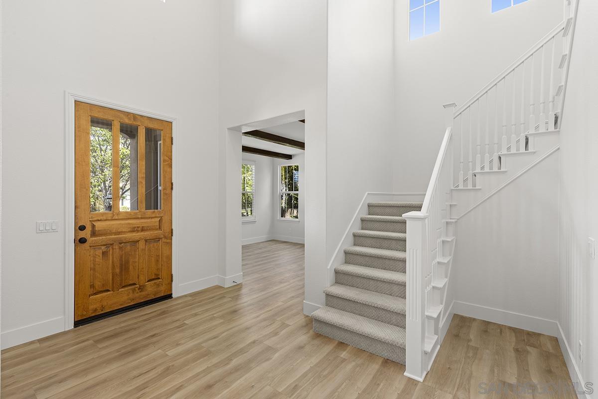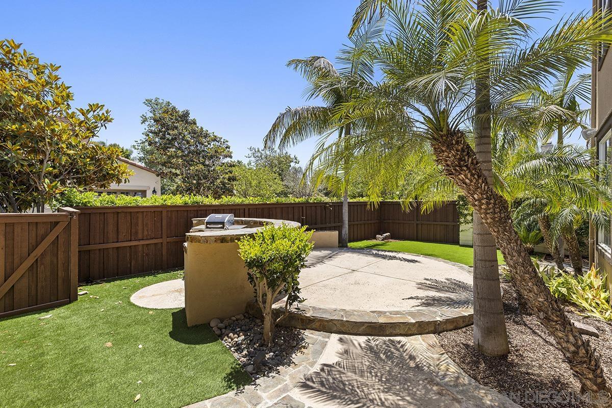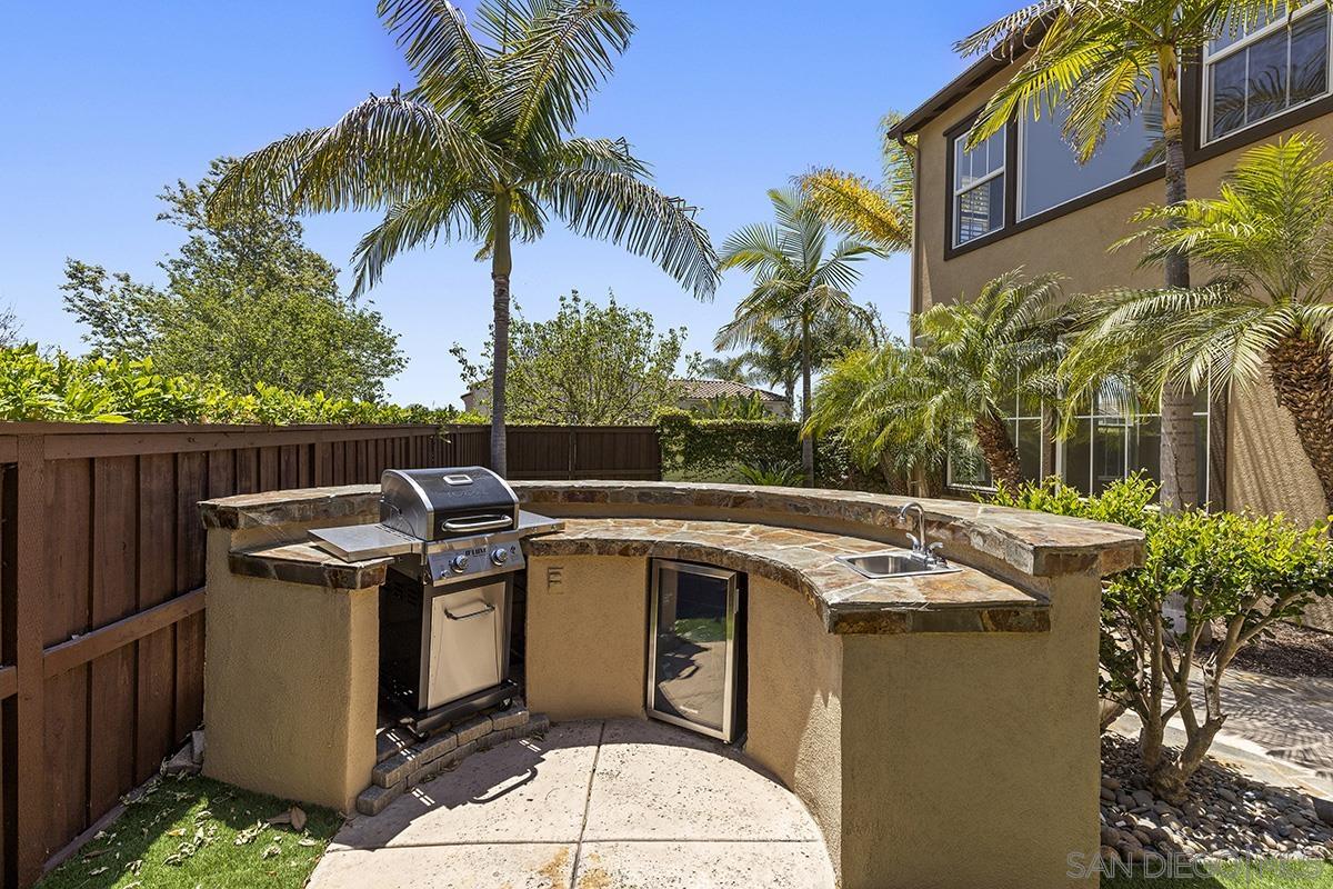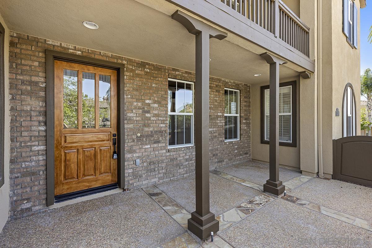 Breathtaking Bressi Ranch estate with modern finishes located on a quiet and elevated corner lot. Private and gated entry to your front porch, featuring 4 bedrooms plus a front facing office/den downstairs and one full ensuite downstairs. Flooded with tons of natural light in all parts of the home. The Chef's kitchen has been meticulously upgraded with stunning quartz countertops, stainless steel appliances, large kitchen island with farm house sink, and walk-in pantry. Your great room is open and spacious to your kitchen and with direct access to your cozy yard perfect for entertaining. Oversized primary bedroom upstairs with luxurious finishes in your primary bathroom and generous sized walk-in closet. Two secondary bedrooms upstairs, with one bedroom featuring direct access to a front facing balcony. Hall bathroom upstairs features dual sinks with sleek quartz countertops. Laundry room upstairs with service sink and storage. Newer flooring throughout with luxury vinyl plank mostly downstairs and plush carpet upstairs. Interior designer paint and crown moulding. Three car tandem attached garage plus a bonus storage room in the garage. Located in the coveted Bressi Ranch community with a plethora of amenities including community pool, parks, schools, shopping, and dining nearby. Just minutes to Carlsbad beaches, La Costa Resort, Legoland, and more. This is a must see!