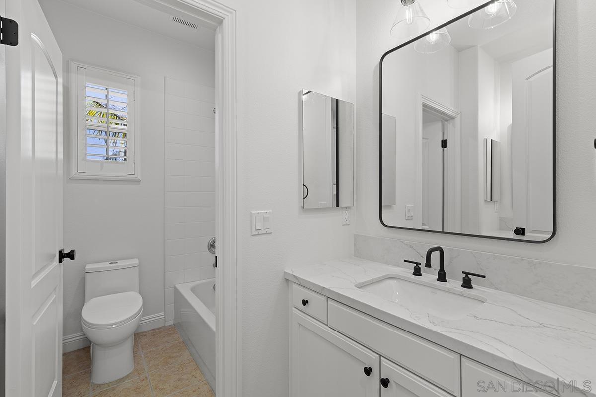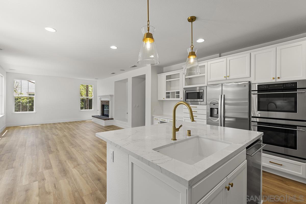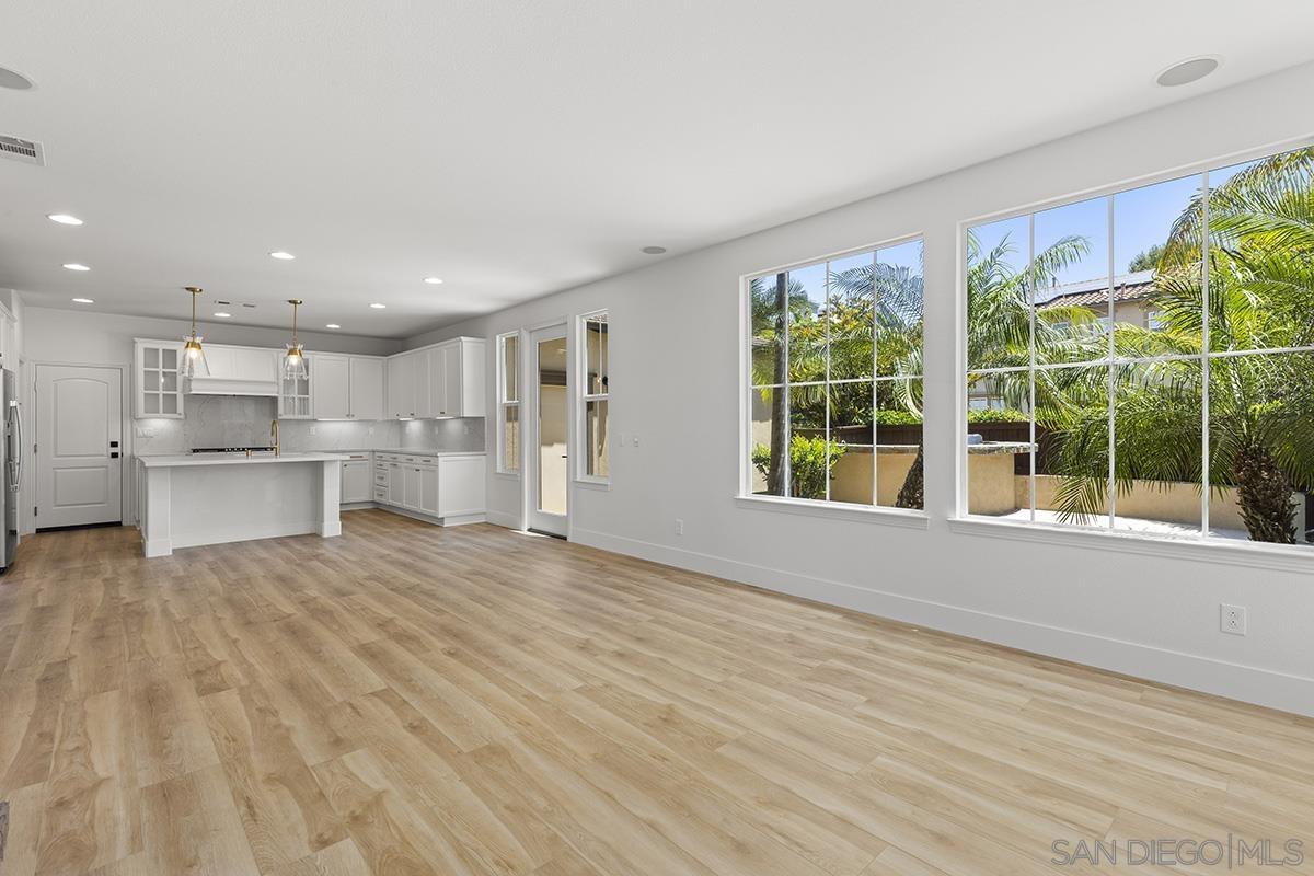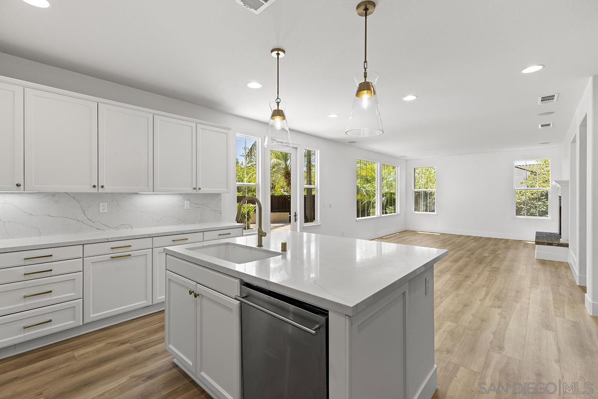 Breathtaking Bressi Ranch estate with modern finishes located on a quiet and elevated corner lot. Private and gated entry to your front porch, featuring 4 bedrooms plus a front facing office/den downstairs and one full ensuite downstairs. Flooded with tons of natural light in all parts of the home. The Chef's kitchen has been meticulously upgraded with stunning quartz countertops, stainless steel appliances, large kitchen island with farm house sink, and walk-in pantry. Your great room is open and spacious to your kitchen and with direct access to your cozy yard perfect for entertaining. Oversized primary bedroom upstairs with luxurious finishes in your primary bathroom and generous sized walk-in closet. Two secondary bedrooms upstairs, with one bedroom featuring direct access to a front facing balcony. Hall bathroom upstairs features dual sinks with sleek quartz countertops. Laundry room upstairs with service sink and storage. Newer flooring throughout with luxury vinyl plank mostly downstairs and plush carpet upstairs. Interior designer paint and crown moulding. Three car tandem attached garage plus a bonus storage room in the garage. Located in the coveted Bressi Ranch community with a plethora of amenities including community pool, parks, schools, shopping, and dining nearby. Just minutes to Carlsbad beaches, La Costa Resort, Legoland, and more. This is a must see!