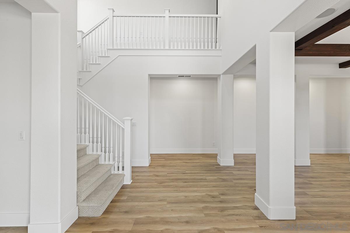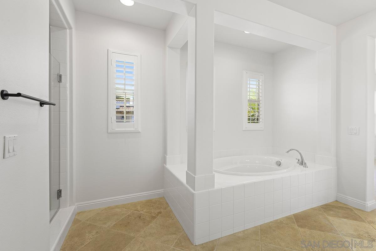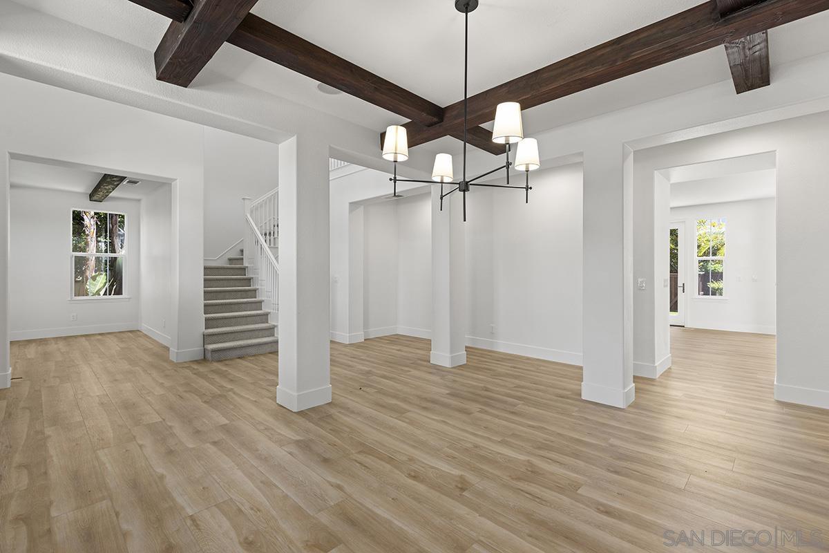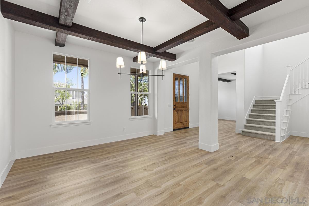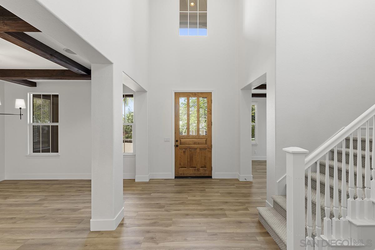 Breathtaking Bressi Ranch estate with modern finishes located on a quiet and elevated corner lot. Private and gated entry to your front porch, featuring 4 bedrooms plus a front facing office/den downstairs and one full ensuite downstairs. Flooded with tons of natural light in all parts of the home. The Chef's kitchen has been meticulously upgraded with stunning quartz countertops, stainless steel appliances, large kitchen island with farm house sink, and walk-in pantry. Your great room is open and spacious to your kitchen and with direct access to your cozy yard perfect for entertaining. Oversized primary bedroom upstairs with luxurious finishes in your primary bathroom and generous sized walk-in closet. Two secondary bedrooms upstairs, with one bedroom featuring direct access to a front facing balcony. Hall bathroom upstairs features dual sinks with sleek quartz countertops. Laundry room upstairs with service sink and storage. Newer flooring throughout with luxury vinyl plank mostly downstairs and plush carpet upstairs. Interior designer paint and crown moulding. Three car tandem attached garage plus a bonus storage room in the garage. Located in the coveted Bressi Ranch community with a plethora of amenities including community pool, parks, schools, shopping, and dining nearby. Just minutes to Carlsbad beaches, La Costa Resort, Legoland, and more. This is a must see!