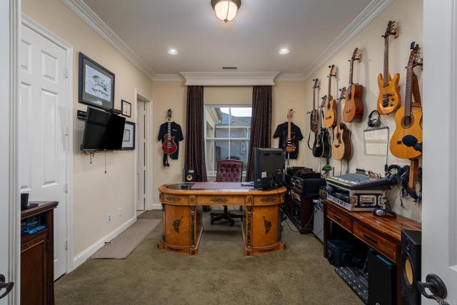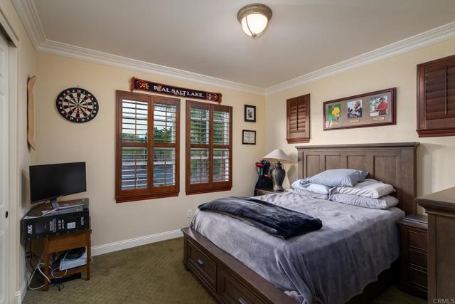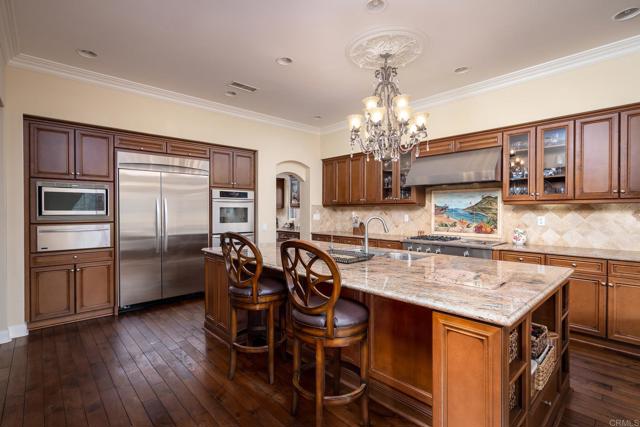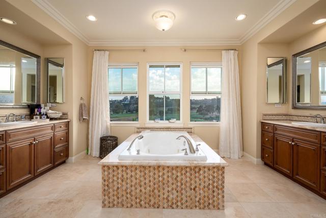 REMARKABLE, RARE LEASE OPPORTUNITY! Property offered fully furnished, partially furnished, or unfurnished. Gorgeous putting green just added in back yard! Overlooking the 9th hole of the renowned La Costa Golf Course in the sought after La Costa Greens community, this luxurious, highly upgraded single-family residence is an entertainer s dream! Tucked away on a quiet double cul-de-sac street, virtually every room in this 5 bedroom, 4.5 bathroom, 4,164 SqFt house has upgraded crown molding, baseboards, and in-ceiling lighting. This home features the highest quality materials and finishes, including American black walnut hardwood flooring, plush Fabrica carpeting, travertine flooring in the ensuite den, custom fans and light fixtures, and owned solar paneling. The gourmet kitchen contains top of the line Thermador stainless steel appliances, granite countertops, a butler s pantry that connects to the formal dining room, a walk-in pantry, and is adjoining to an expansive family room with stone fireplace. Enjoy panoramic views of the golf course and Carlsbad Hills from the master suite, which contains dual sinks and vanities with Italian marble counters, travertine flooring and shower, a sizable jetted bathtub, and an oversized walk-in closet. Ample storage and work areas throughout incorporate 3 built in desk areas, a library nook with built-in shelving, a full-sized laundry/ utility room, and a 4 car garage with built-in storage. Several outdoor entertaining areas include an enclosed front patio with a fireplace and porcelain stone, and a back yard with a beautiful gas fire pit, covered patio, lush landscaping with blossoming rose bushes, orange, lemon, kumquat, and other mature fruit trees, and a secret garden with French lavender, rosemary, basil, mint, onion, strawberries, tomatoes, and red peppers. Residents of La Costa Greens have the exclusive use of "The Presidio" and its resort-like amenities, including a Junior Olympic size pool, tennis courts, tot lot, fitness center, and recreation room. Convenient to shopping, entertainment, dining, freeway access, multiple world-renowned golf courses and resorts, amusement parks, McClellan-Palomar Airport and an easy drive or bike to North County's best beaches! This fine home includes a wide range of upgrades and additional security features to protect you and your family.Interested in this Listing?