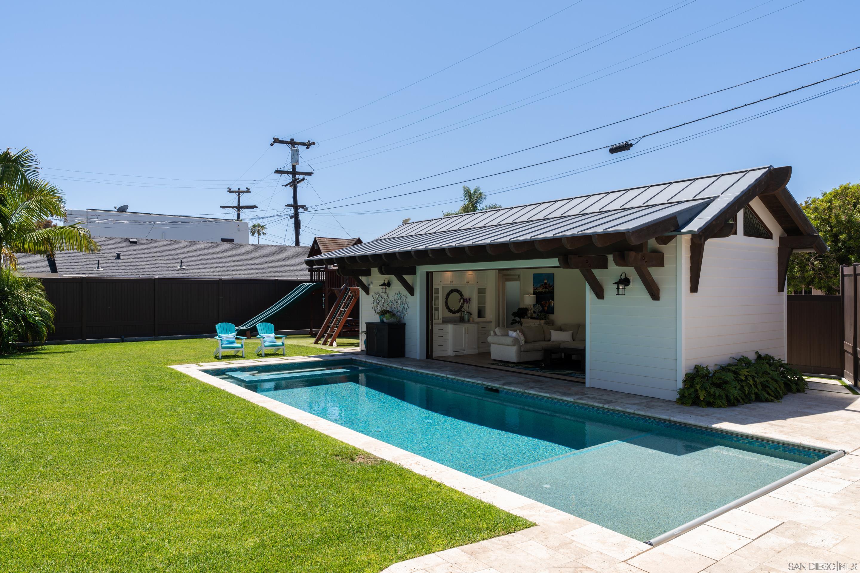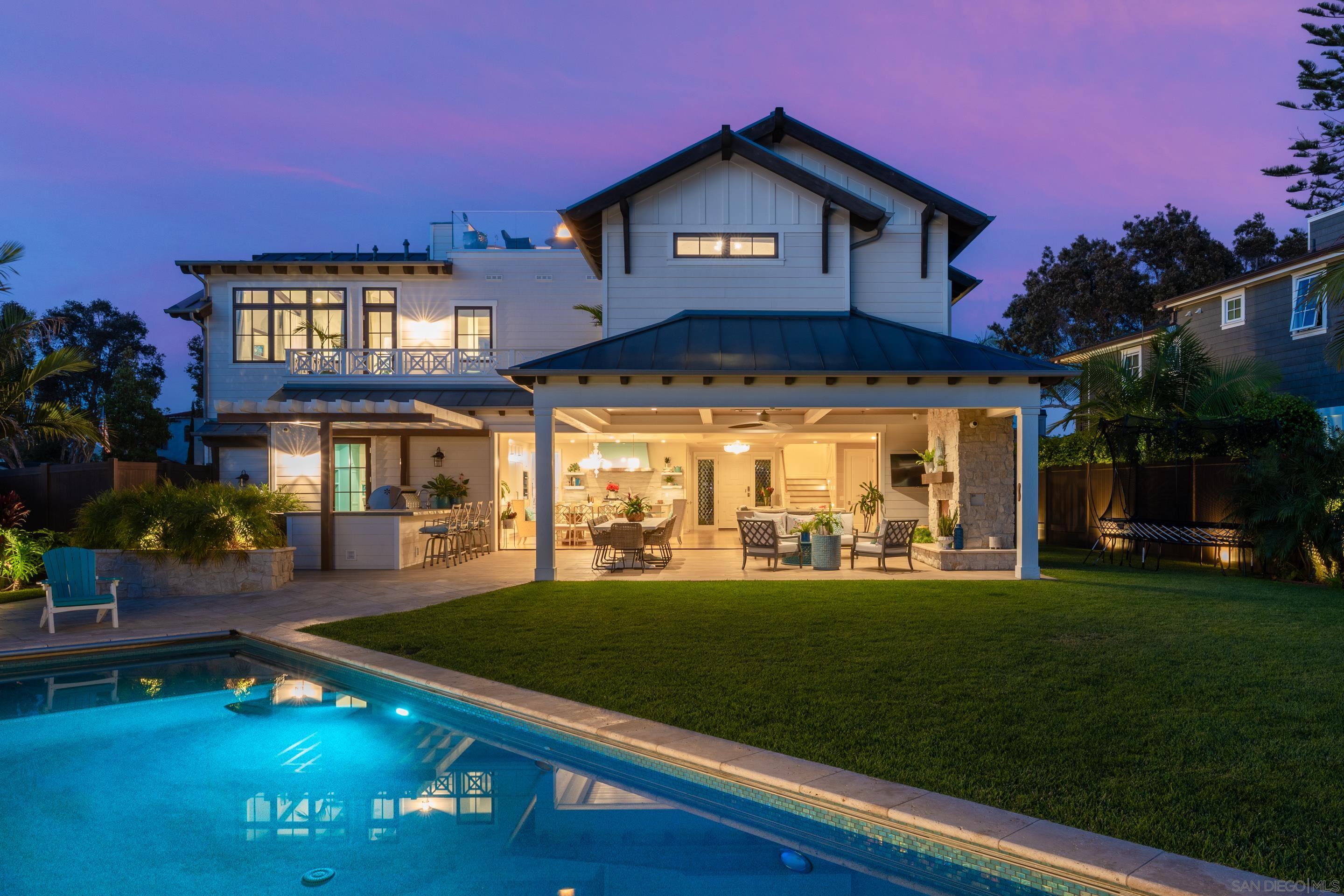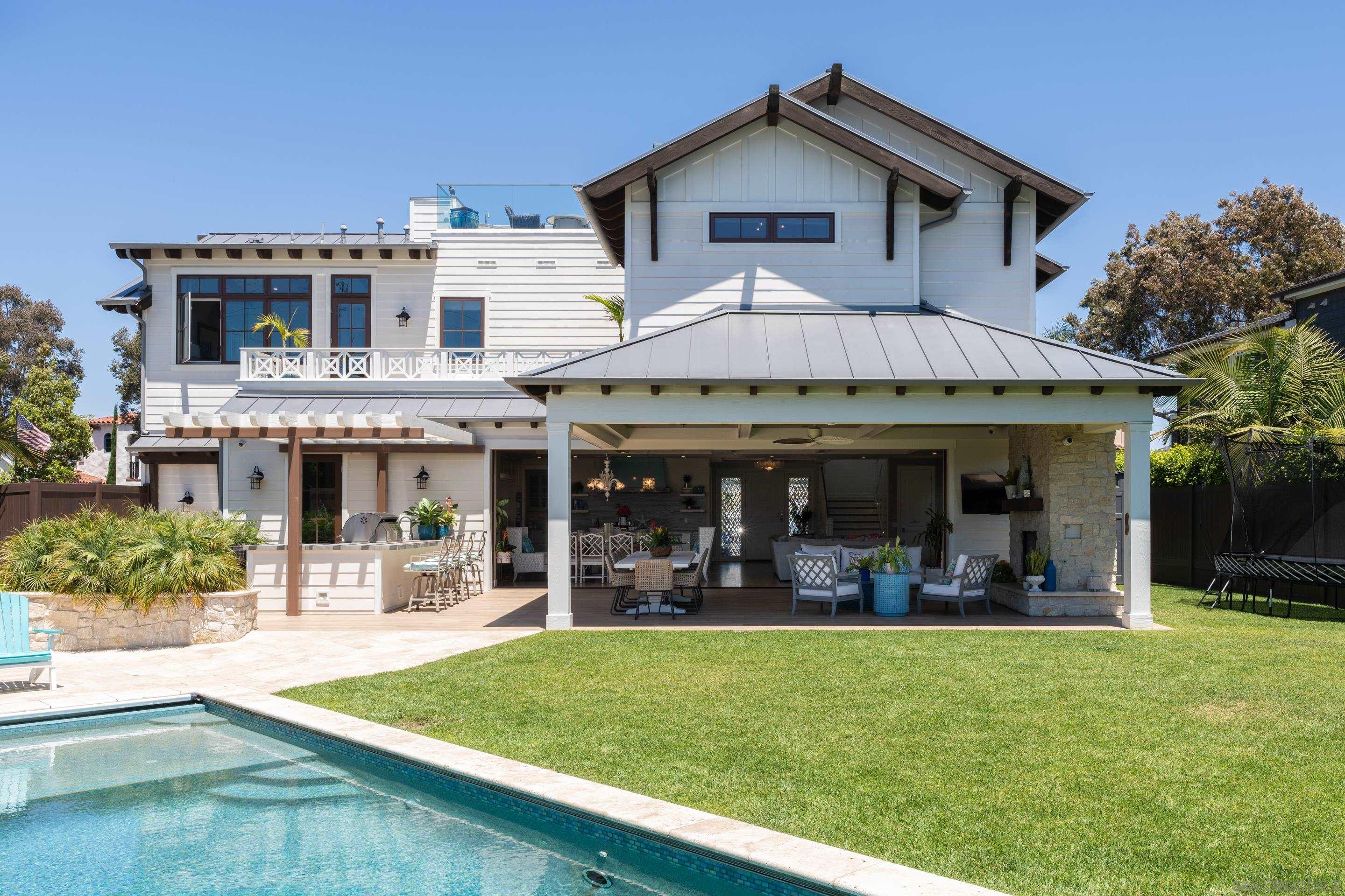 Just a seashell-toss from Coronado Beach, this newly built coastal estate sits on an exceptional 11,702 sq ft lot which is nearly twice the typical parcel this close to the sand . Resort-style grounds showcase a pebble-finish pool with raised spa, Baja shelf, outdoor shower and built in bbq, all bordered by lush landscaping and a covered fireside patio for year-round entertaining . Inside, 3,607 sq ft of light-filled living space unfolds beneath 10' ceilings. A magazine-worthy chef s kitchen centers the main level with a 65" French-blue La Cornue Chteau 165 range, dual 36" Sub-Zero refrigerators and a full Miele suite, wrapped in custom cabinetry and stone countertops while a fully outfitted butler s pantry and dumbwaiter keep service effortless. Rift-sawn white-oak floors glide through living and dining areas to 12' bifold doors that blur the line to the backyard oasis. Upstairs, three ensuite bedrooms include a sun-filled primary retreat with dual dressing rooms and a spa-caliber marble bath. Capping the home, a 360 viewing sun deck captures sweeping ocean, downtown-skyline and sunset vistas. A detached 487 sq ft casita with kitchenette and full bath provides ideal guest, office or multigenerational space, bringing total conditioned living area to approximately 4,094 sq ft. Designed by award-winning Architect, Christian Rice, the residence layers board-and-batten siding, standing-seam metal accents and copper details for a timeless Caribbean-coastal aesthetic.Interested in this Listing?