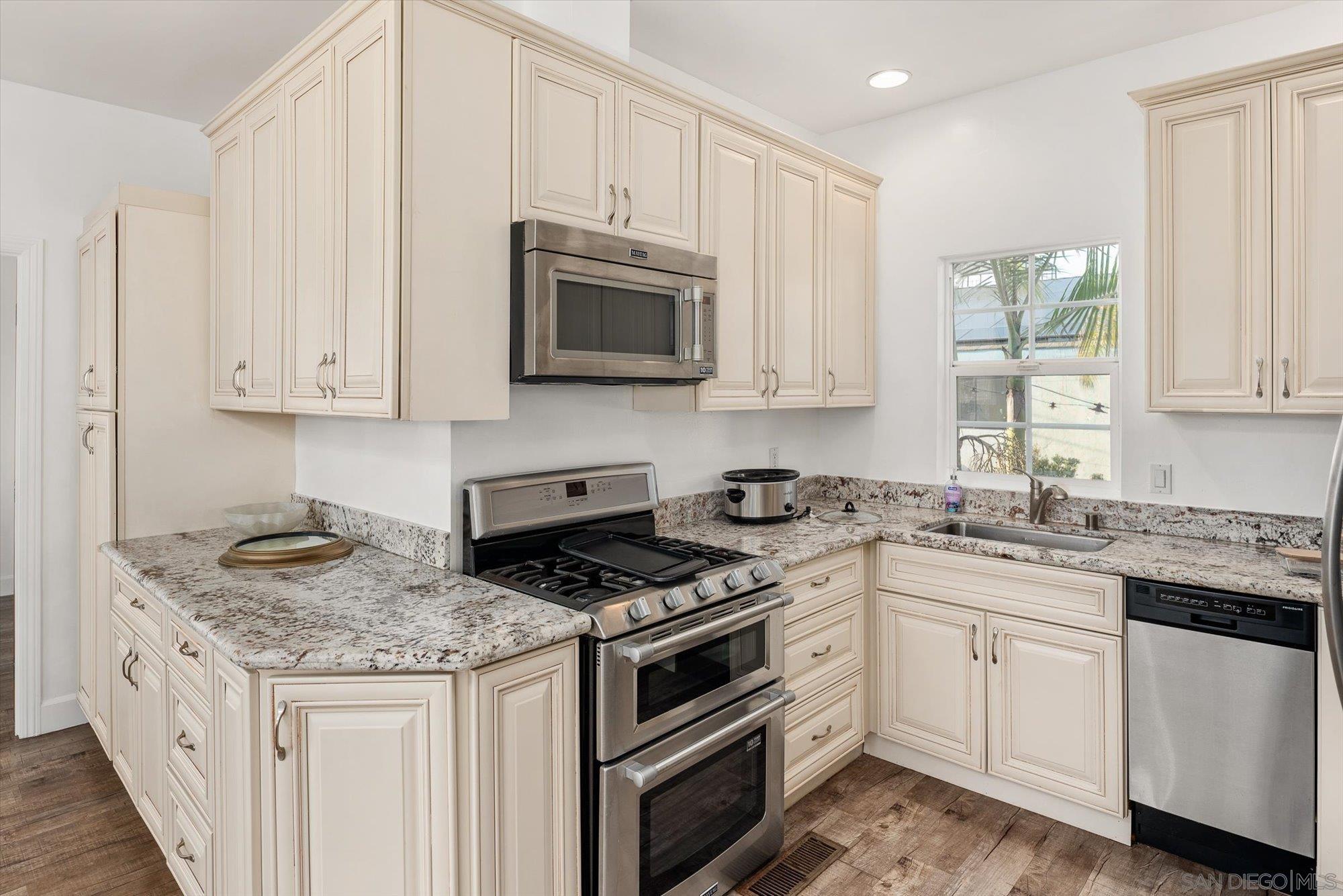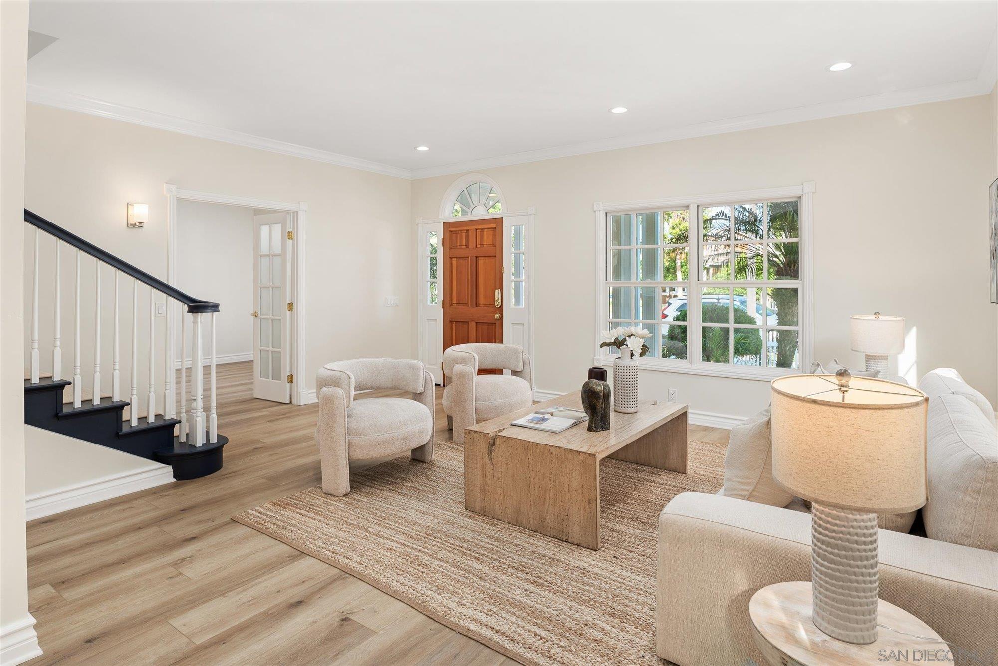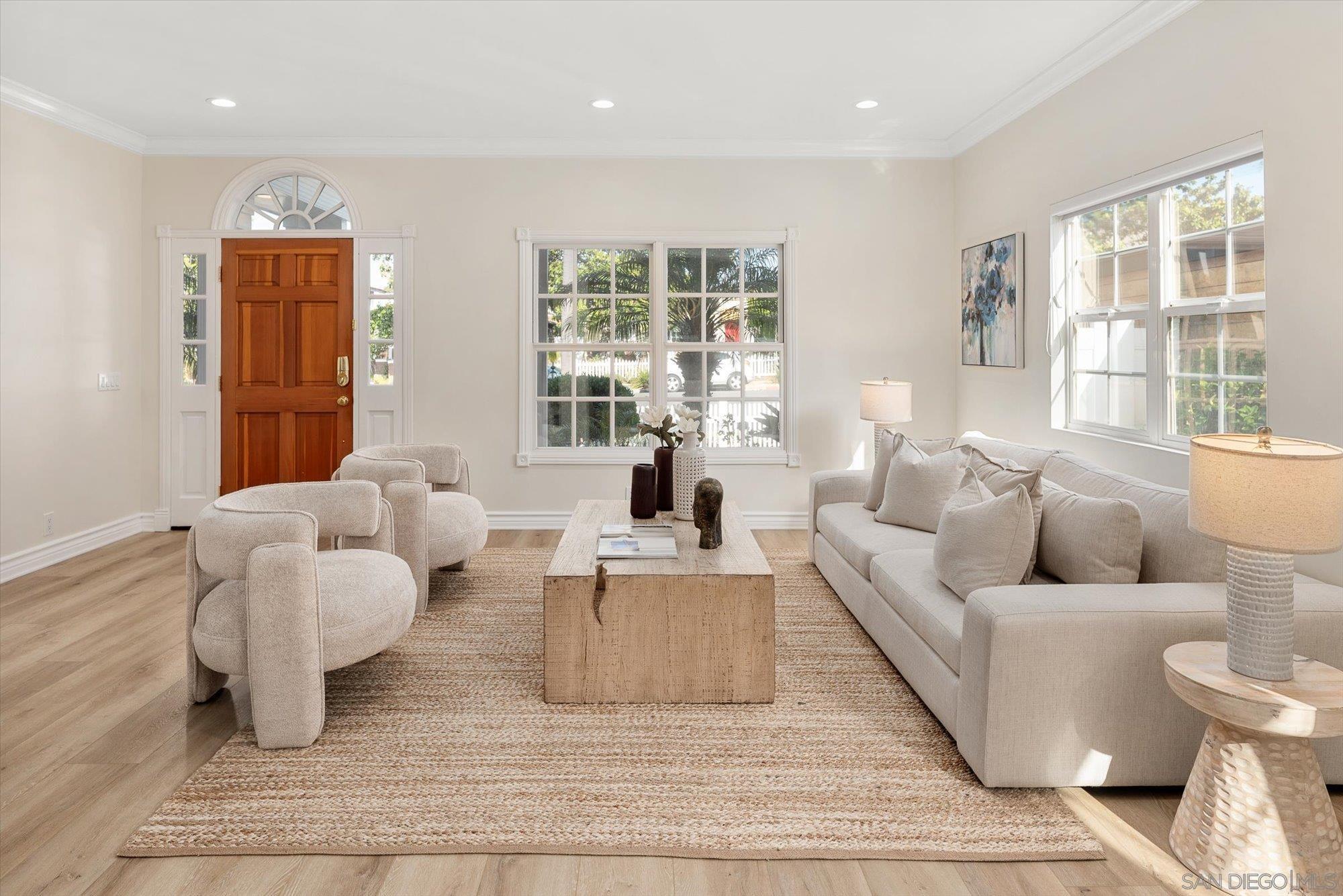 Welcome to one of Coronado's most exquisite properties, 260 H Avenue. This pristine property is located on a quintessential and charming street with fabulous bay and town views from the large rooftop view deck, just a short stroll away from the bay, restaurants and shops on Orange Ave. The main home features four bedrooms and three and a half bathrooms which has been immaculately maintained and is glistening with its recent renovations to include new luxury vinyl flooring throughout, new paint, carpet, lighting fixtures, quartz countertops and appliances. Located above the two-car garage, boasts an enchanting one-bedroom guest suite with its own recently renovated living room, double sink full bathroom, kitchen, and laundry room. Perfect for endless options such as stay from family and friends or rental potential. The spacious backyard offers both privacy and views of the Palm Park across the street, ready for an entertainer's delight. This is a fabulous family home and move-in ready for the most meticulous buyer. Come make 260 H Avenue your family dream home.Interested in this Listing?