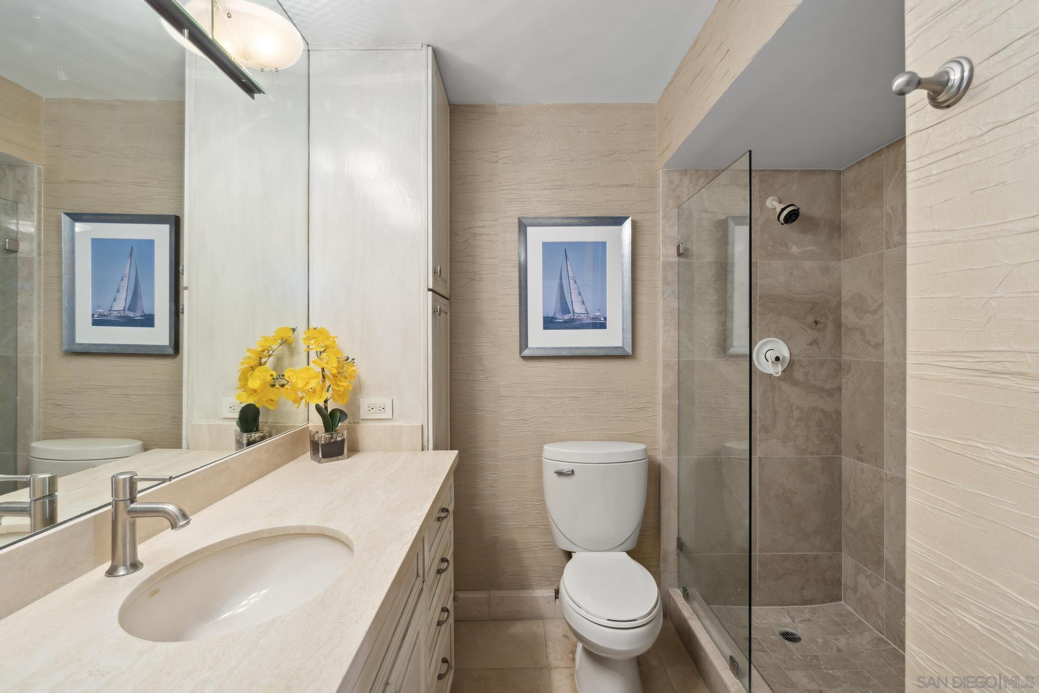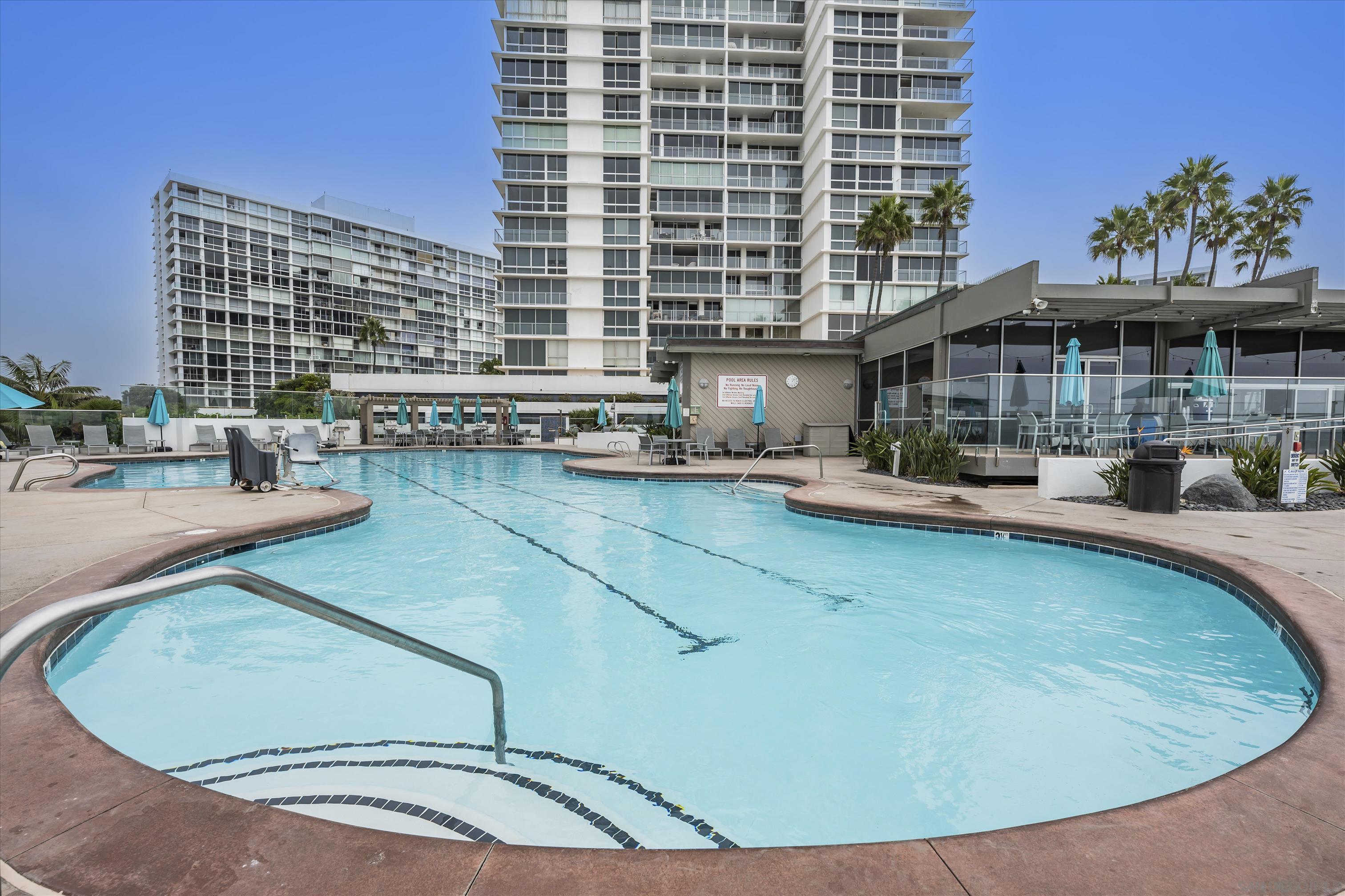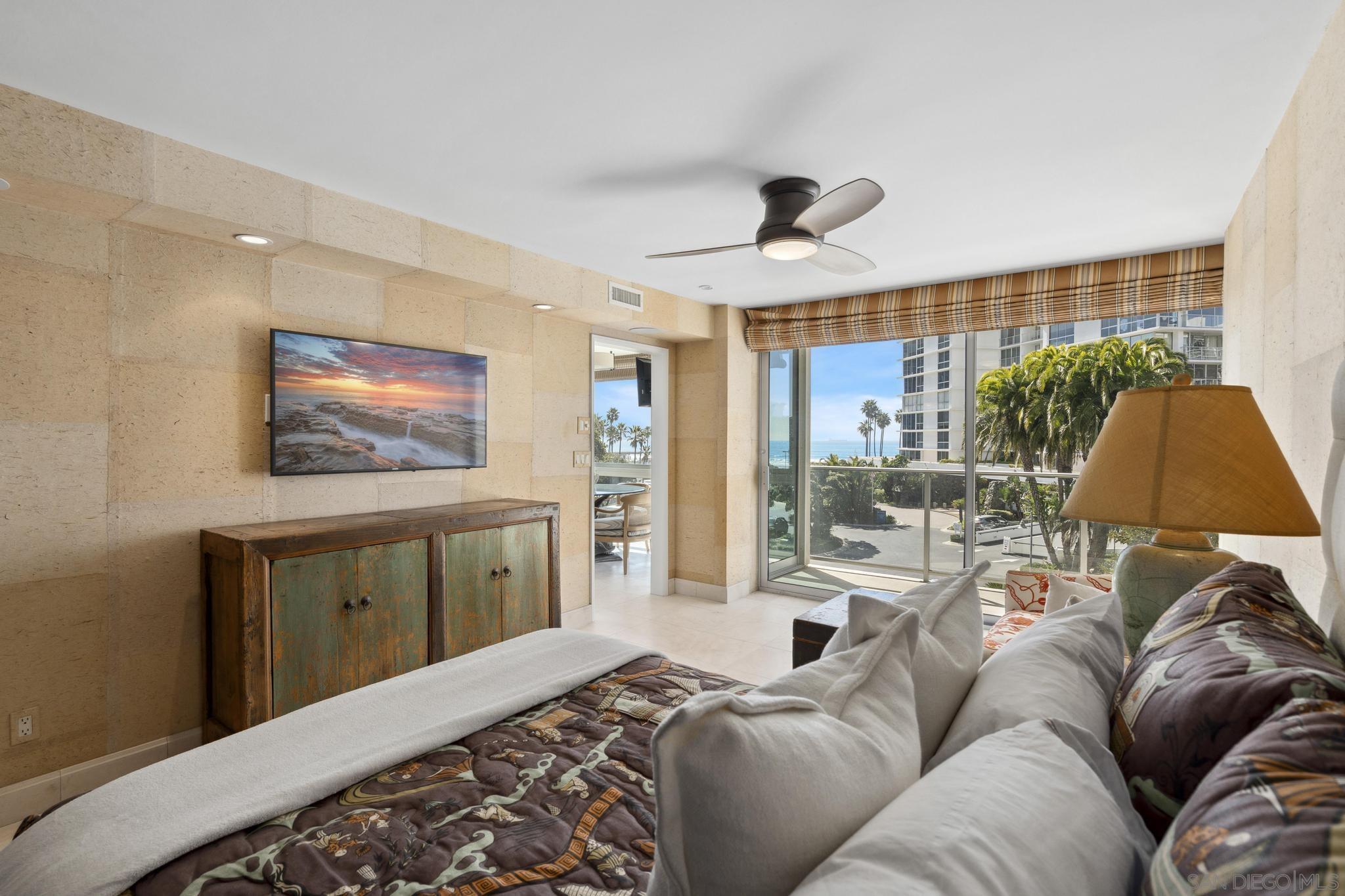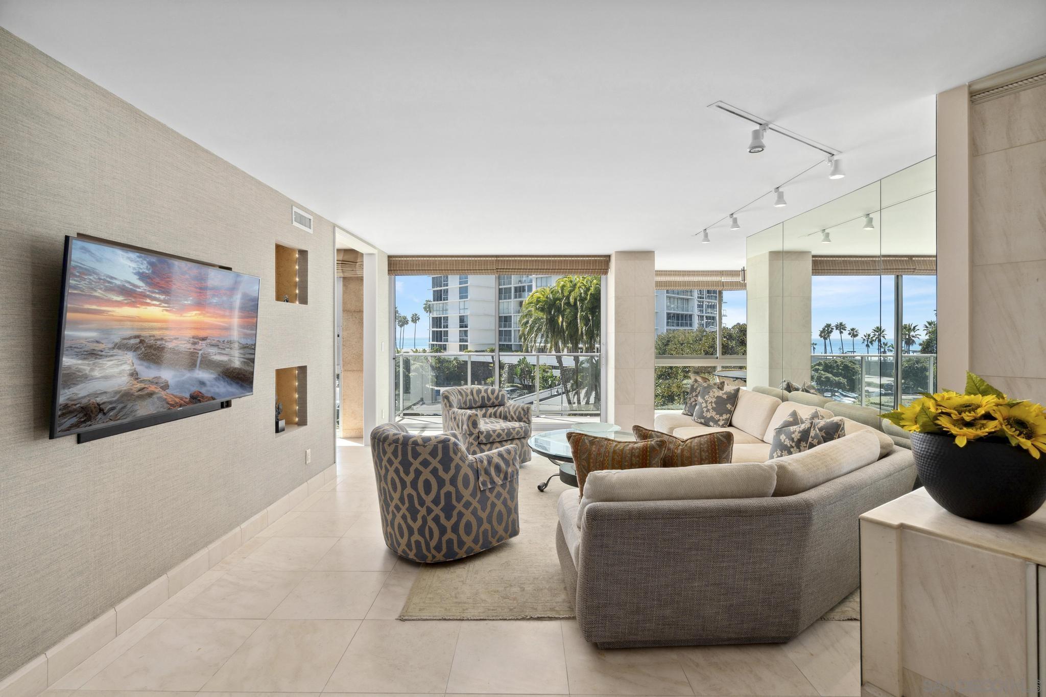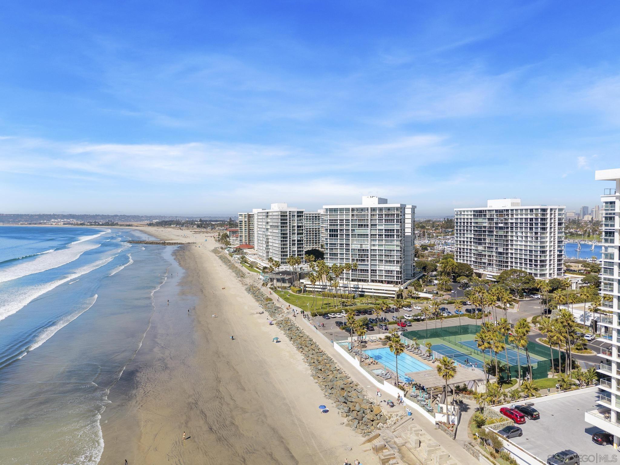 Live in Designer Coastal Condo that exudes luxury at the prestigious Las Flores Tower with multiple decks for your enjoyment. With gorgeous Pacific Ocean views, ocean breeze and courtyard Palm trees, this light-filled designer condo offers sweeping views with floor-to-ceiling windows. The designer updated gourmet kitchen features quality custom cabinetry, granite countertops and high-end appliances including a wine fridge. A grand Primary Bedroom impresses with an en-suite Bathroom and views from an exclusive Patio. The 2nd Bedroom also has amazing views, an en-suite Bathroom and custom cabinetry. Custom details abound with a built-in media and sound-system, custom drapery, designer tile and wallpaper, custom cabinetry and closets. Plus, Coronado Shores offers world-class amenities: a Private Beach Club, state-of-the-art Health Club, pools, tennis and pickle ball courts. A Dedicated Building Manager, a 24/7 security kiosk and a Front Desk/Concierge are included. Plus, with air conditioning, in-unit laundry, 1-car deeded parking, and storage, convenience is at your doorstep. This is more than a home it's a lifestyle. Seize the opportunity to live in one of Southern California's most desirable coastal destinations. With a $100k price improvement it's both amazing and priced to sell! And to make it even easier, the furniture may convey with the sale to be truly turnkey and ready to go!Interested in this Listing?