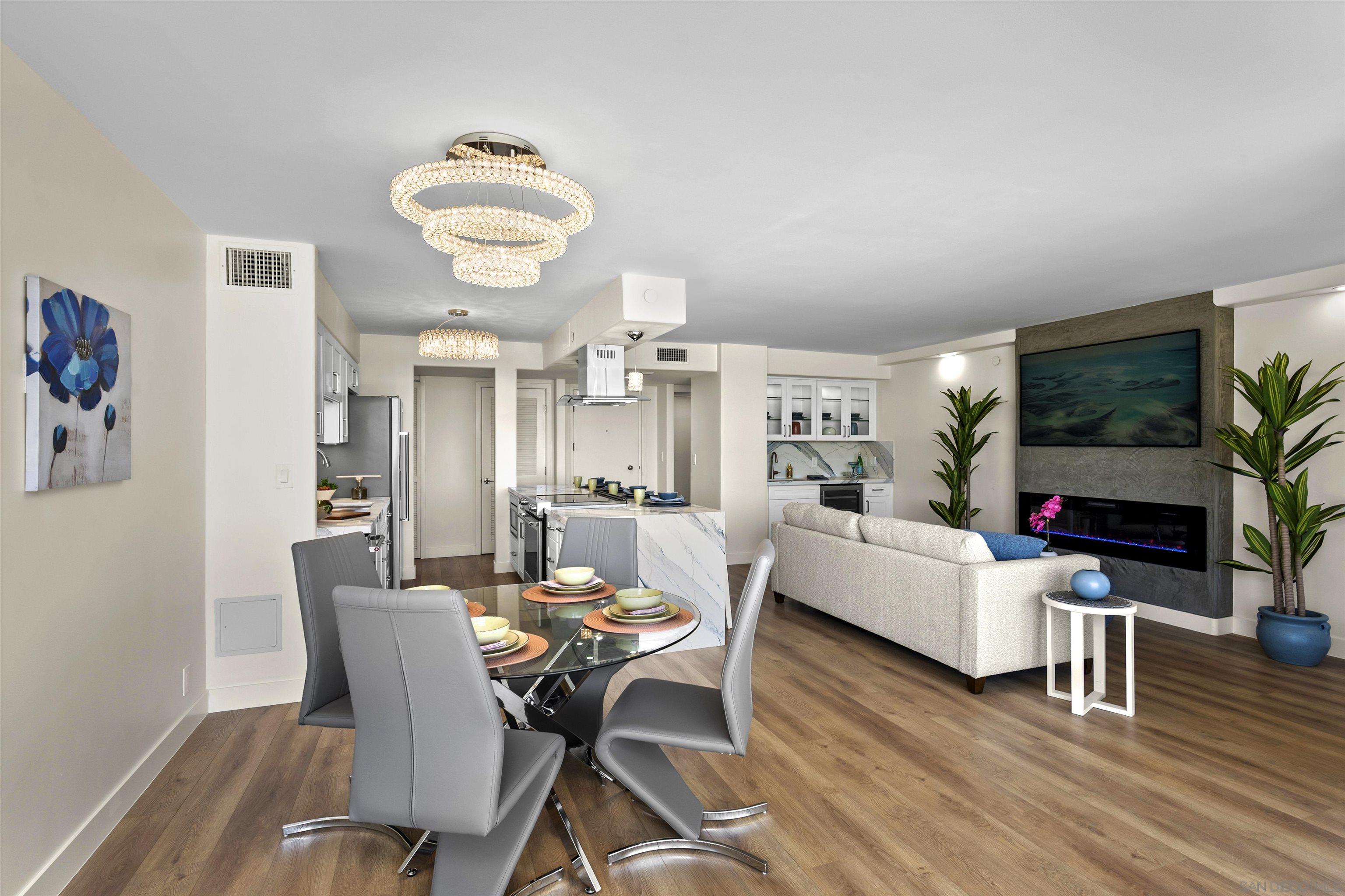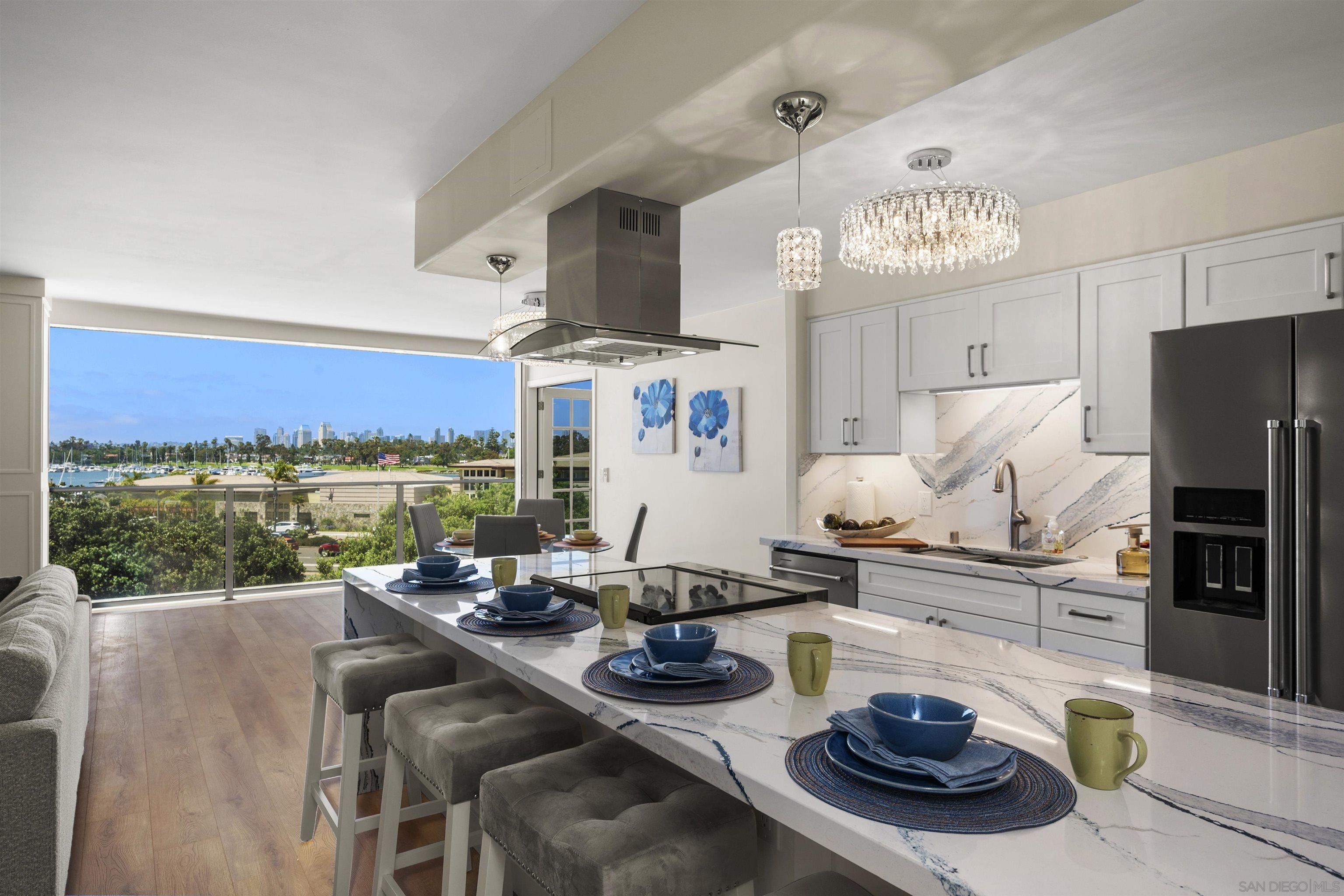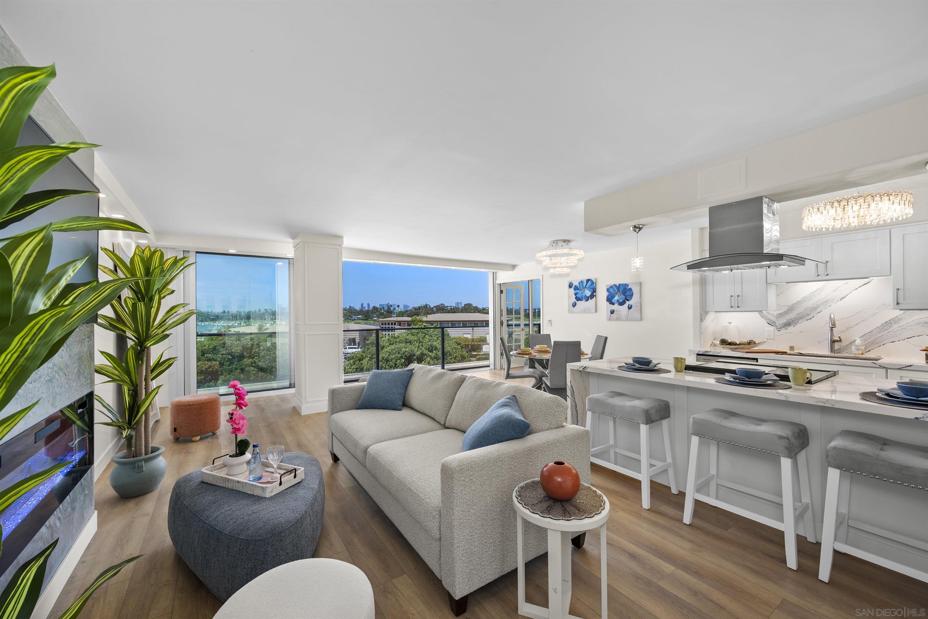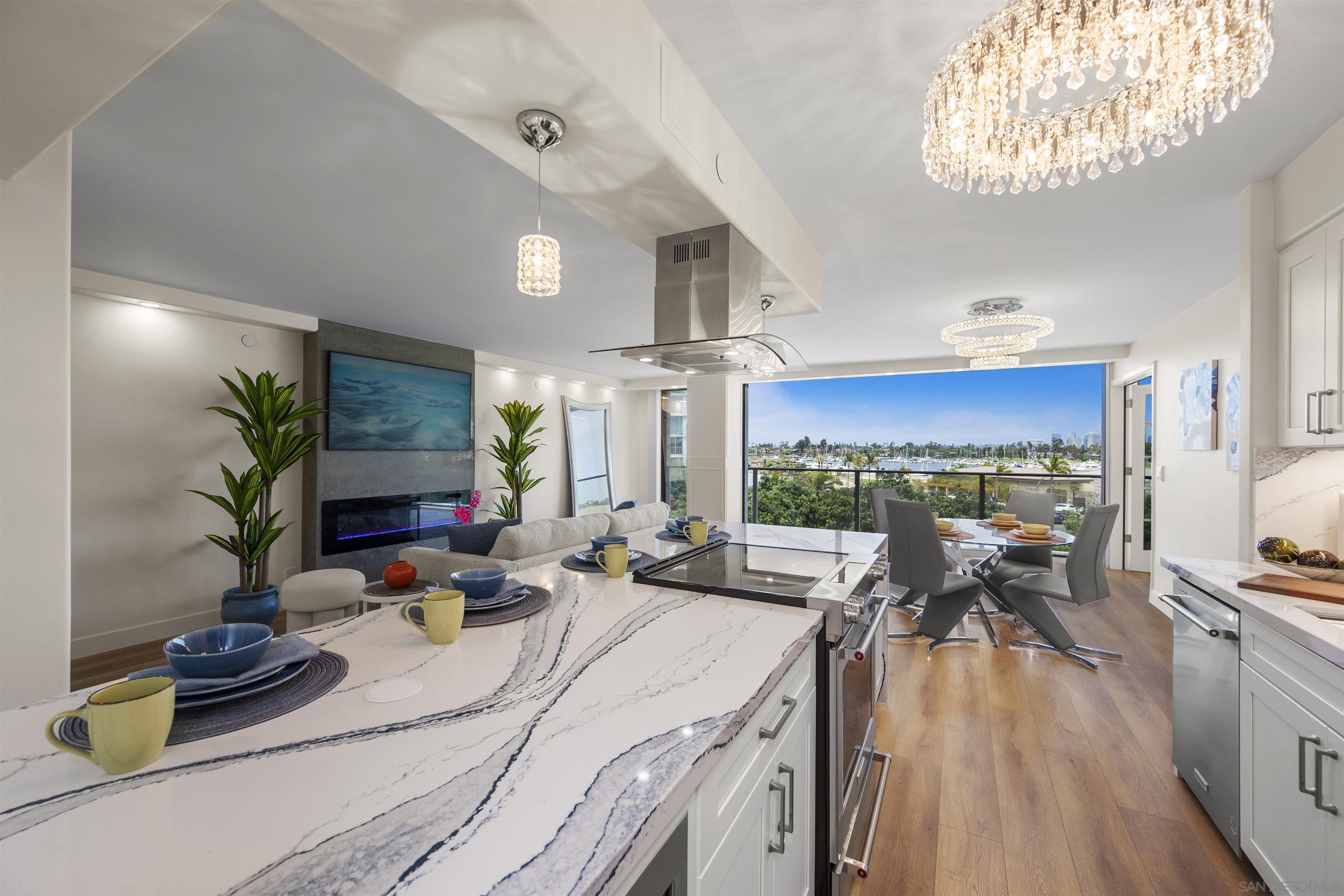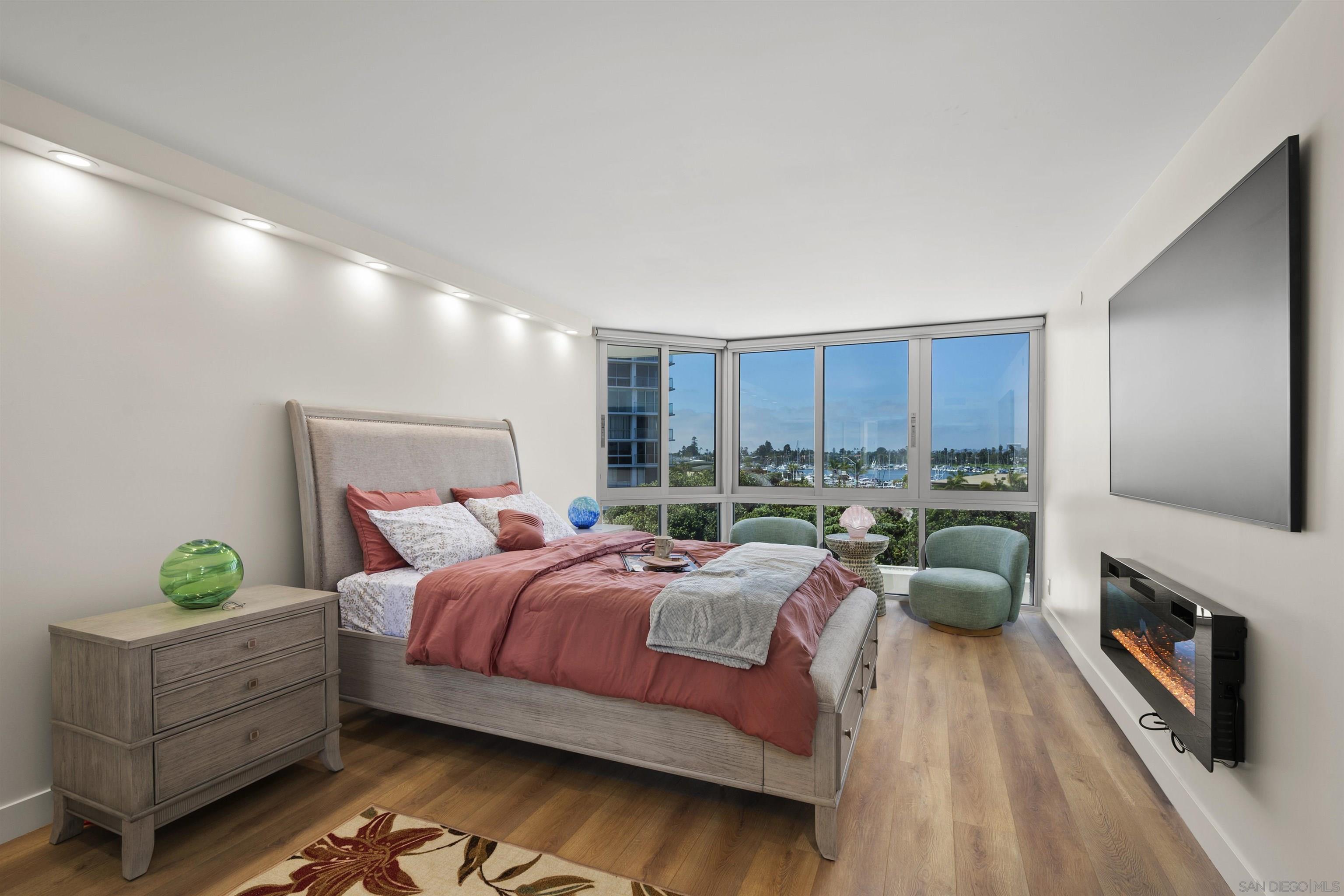 This unit has the best of both worlds! Full bay view and a partial ocean view. Fully remodeled unit from all aspects with higher end finishes. New sliding panoramic glass doors that open to give you the unobstructed bay, Coronado Bridge and the Downtown skyline. Enjoy the 4th of July fireworks from anywhere in the living room or primary bedroom. New HVAC system, wall finishes, plaster finished fireplace with operable electric wall mounted units. Custom bar with it's own wine cooler and sink. LVP flooring throughout with custom tile finishes in the bathrooms. The panoramic windows also have automatic shades. The kitchen boasts a custom island with new appliances and high quartz with a waterfall finish on both ends. Enjoy the luxury of having 4 large swimming pools, 8 tennis courts, 2 clubhouses, a sauna and a gym all included in the association. This unit is 100% move-in ready.Interested in this Listing?