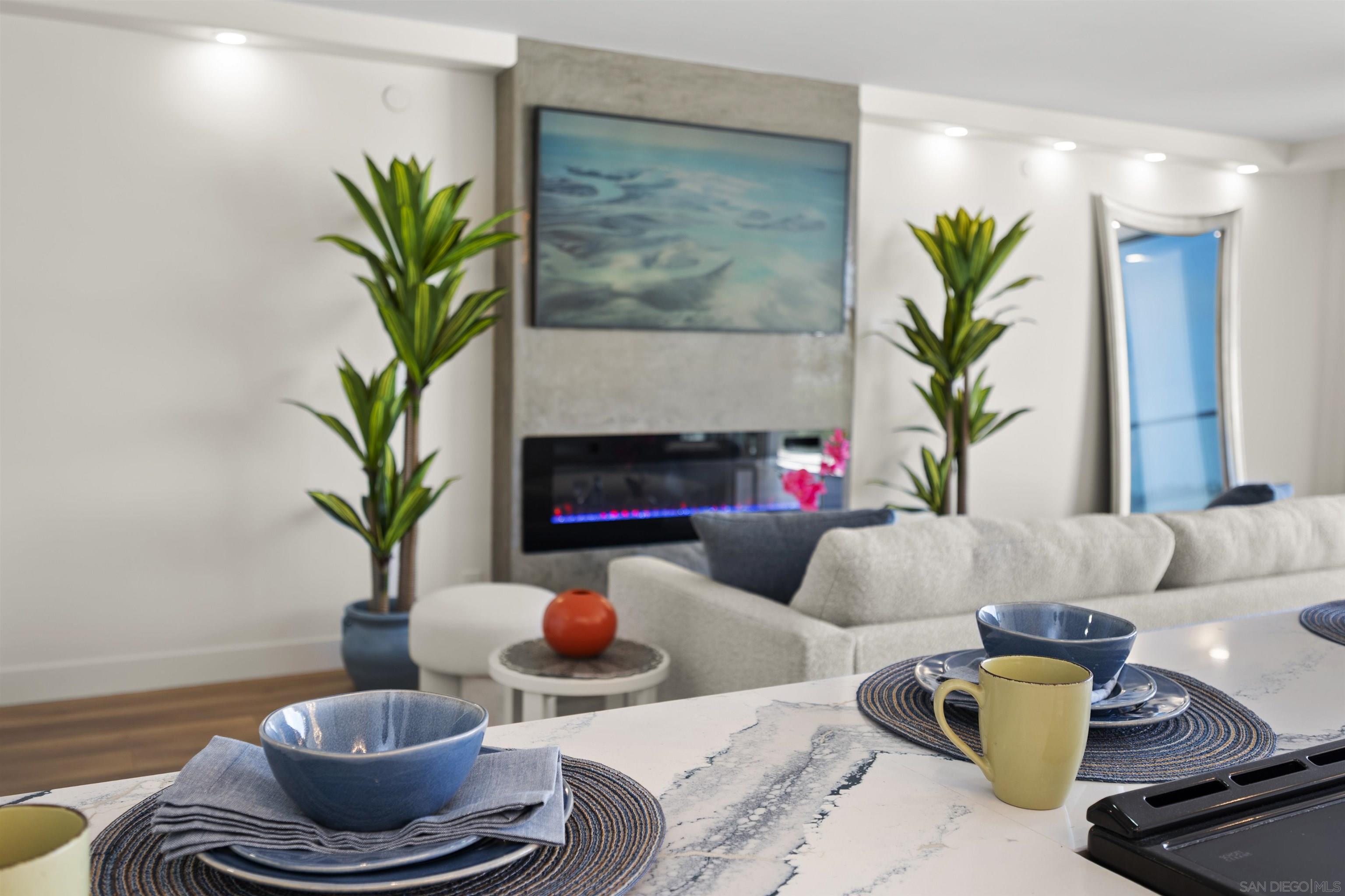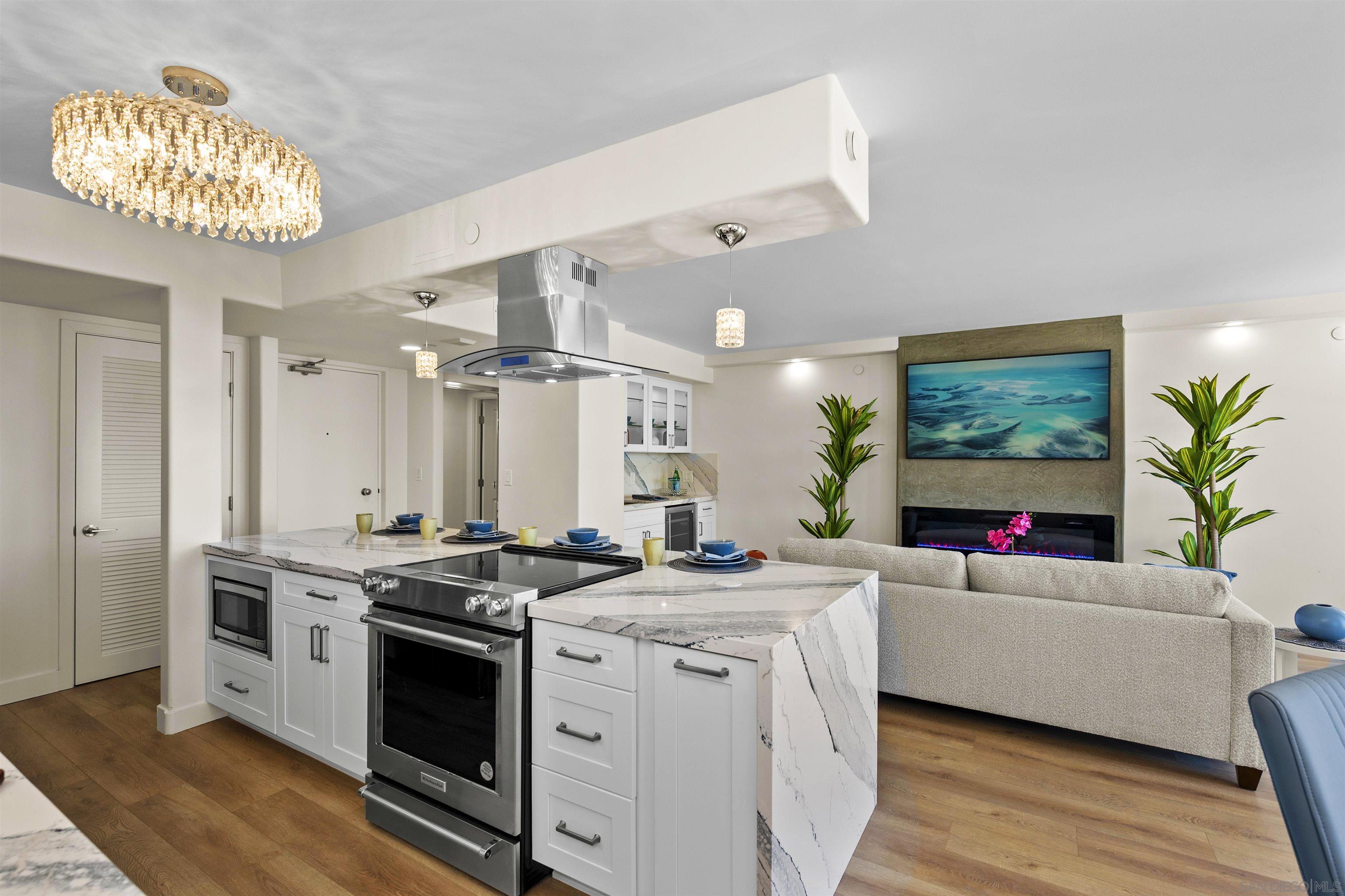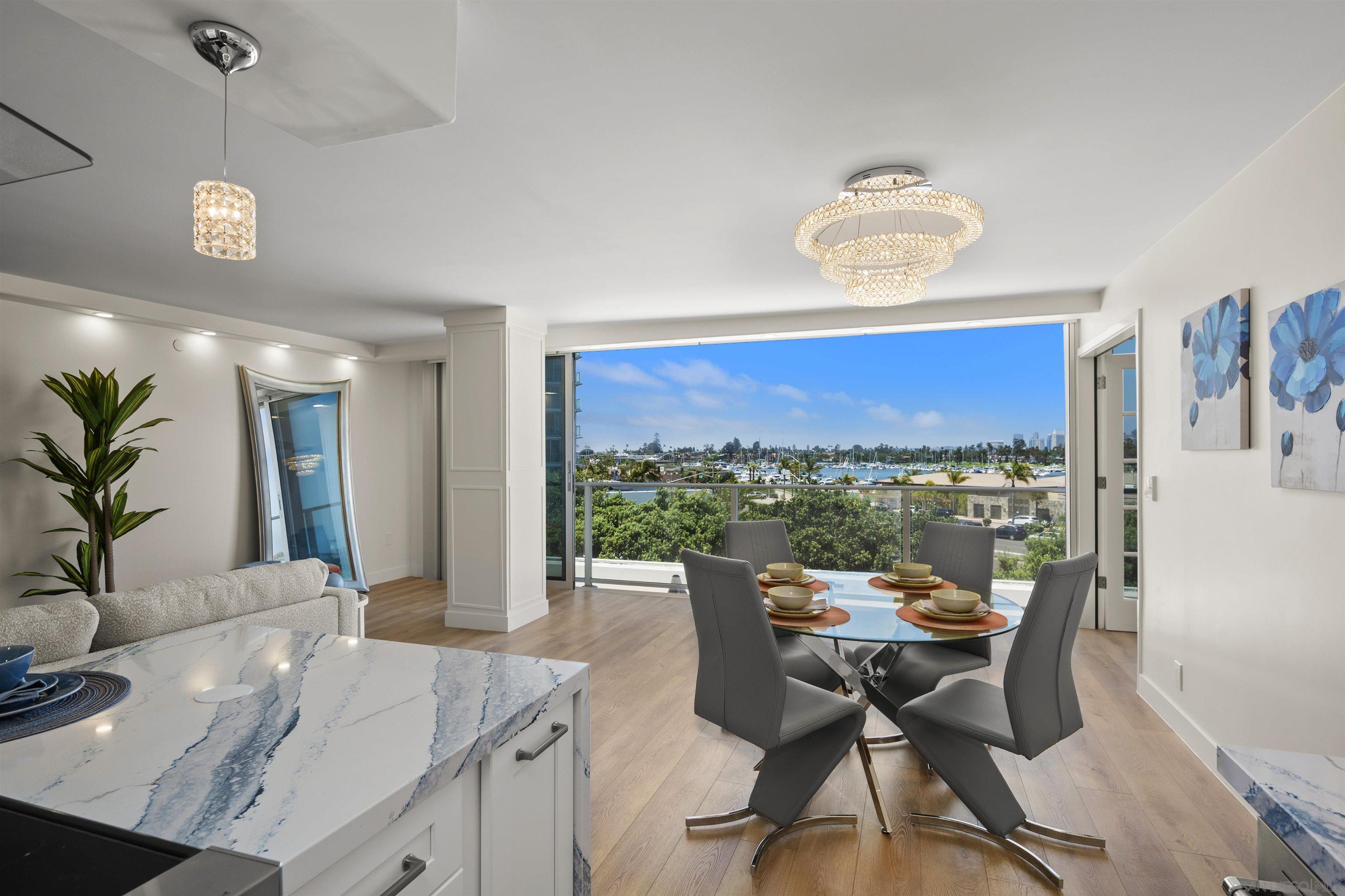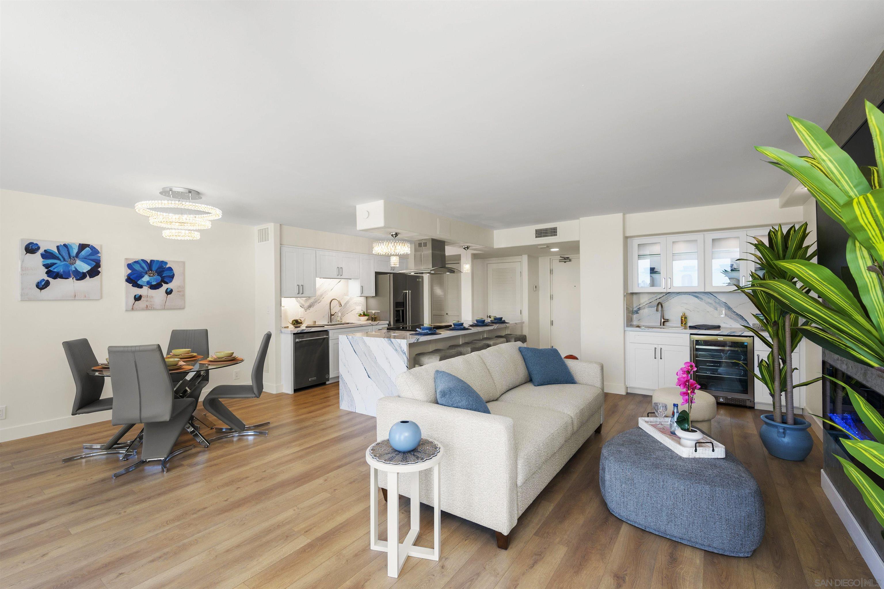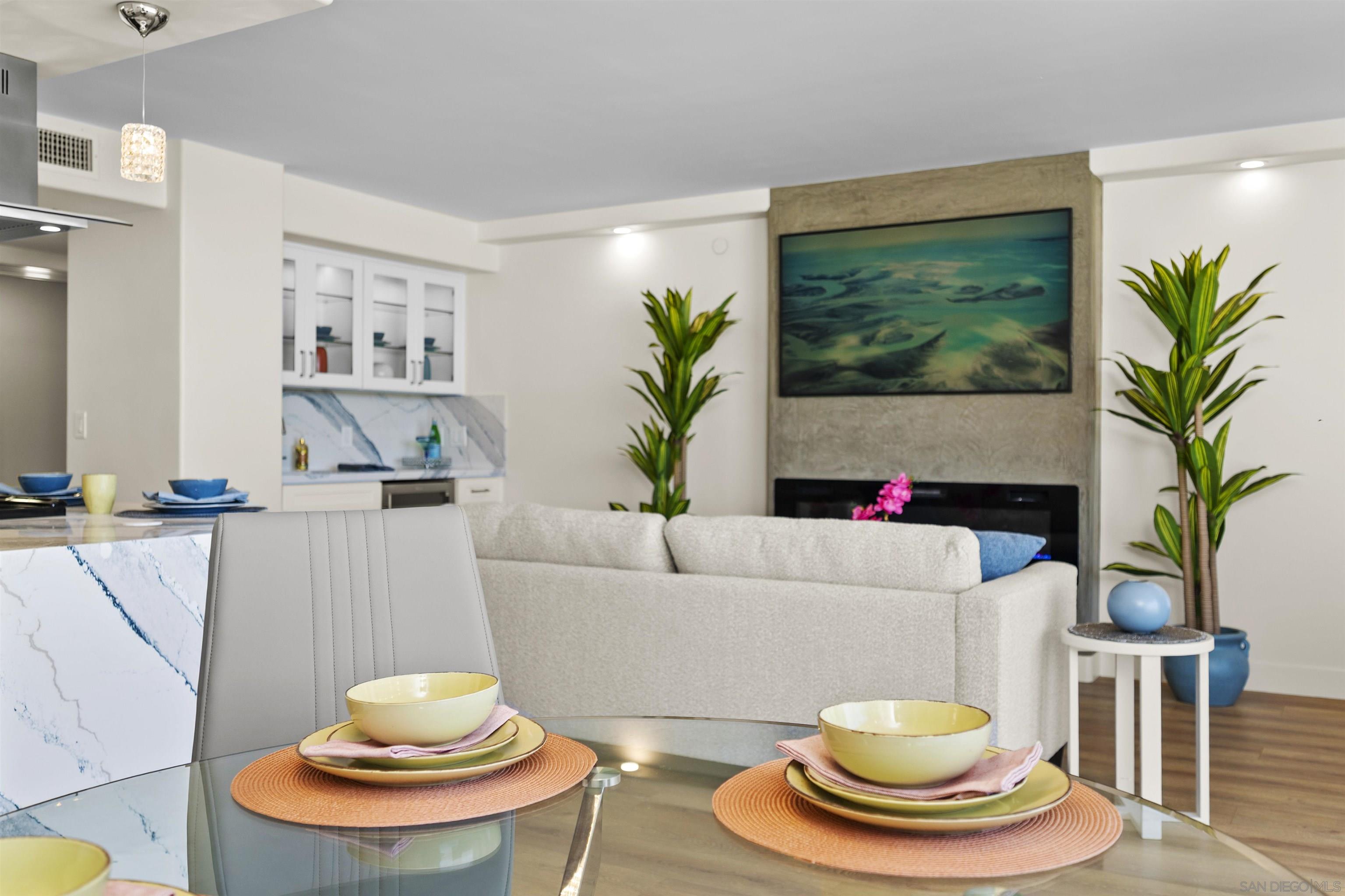 This unit has the best of both worlds! Full bay view and a partial ocean view. Fully remodeled unit from all aspects with higher end finishes. New sliding panoramic glass doors that open to give you the unobstructed bay, Coronado Bridge and the Downtown skyline. Enjoy the 4th of July fireworks from anywhere in the living room or primary bedroom. New HVAC system, wall finishes, plaster finished fireplace with operable electric wall mounted units. Custom bar with it's own wine cooler and sink. LVP flooring throughout with custom tile finishes in the bathrooms. The panoramic windows also have automatic shades. The kitchen boasts a custom island with new appliances and high quartz with a waterfall finish on both ends. Enjoy the luxury of having 4 large swimming pools, 8 tennis courts, 2 clubhouses, a sauna and a gym all included in the association. This unit is 100% move-in ready.Interested in this Listing?