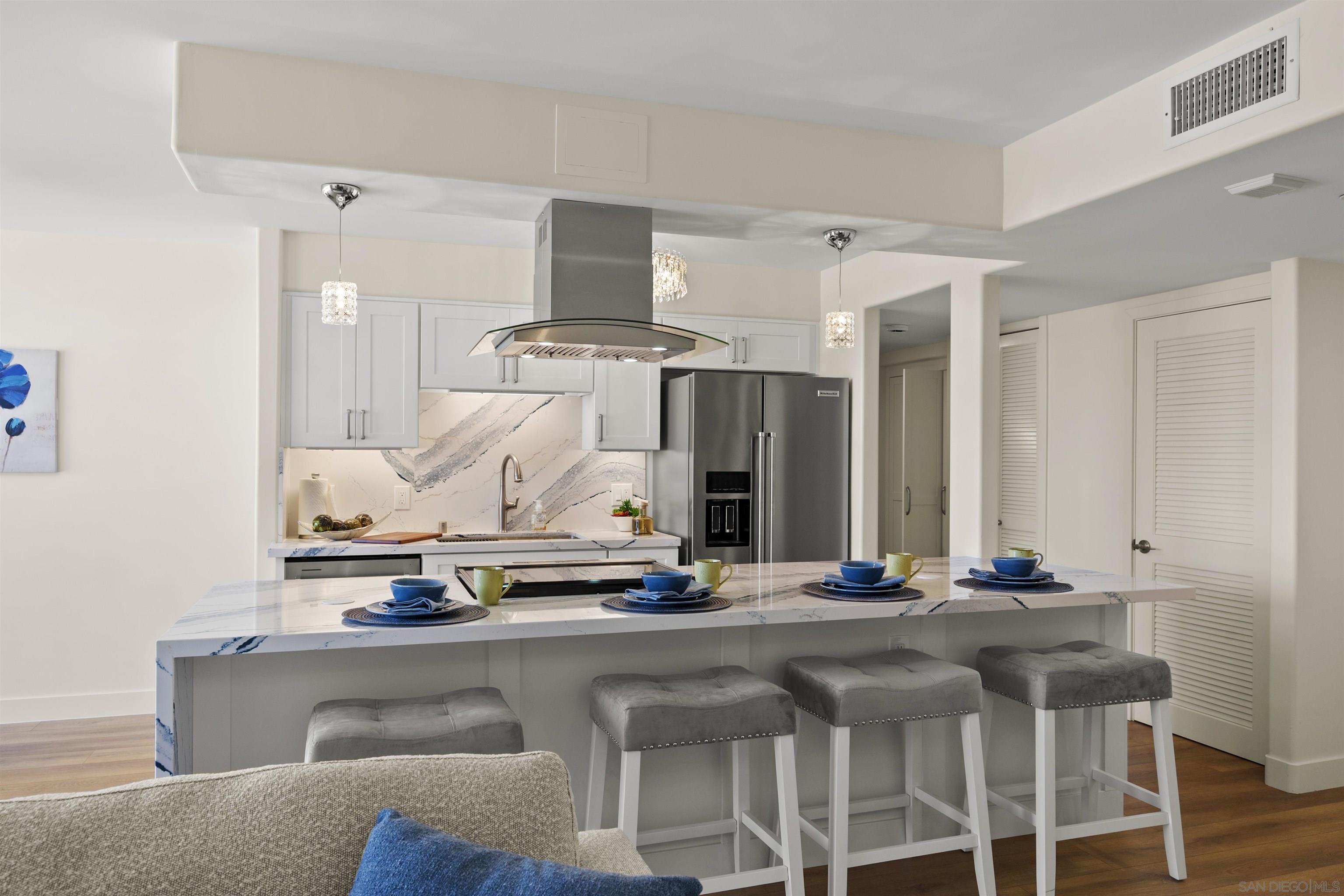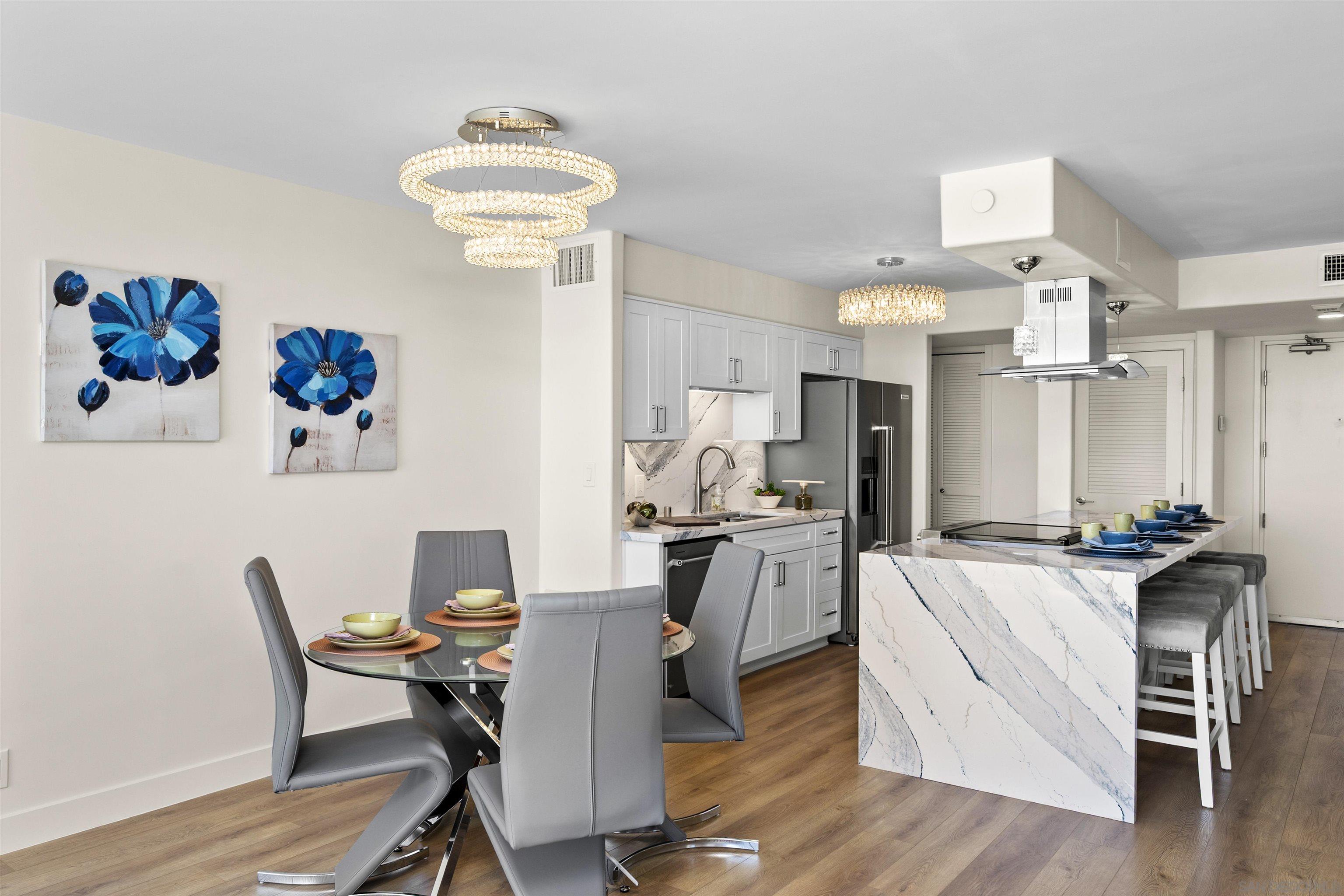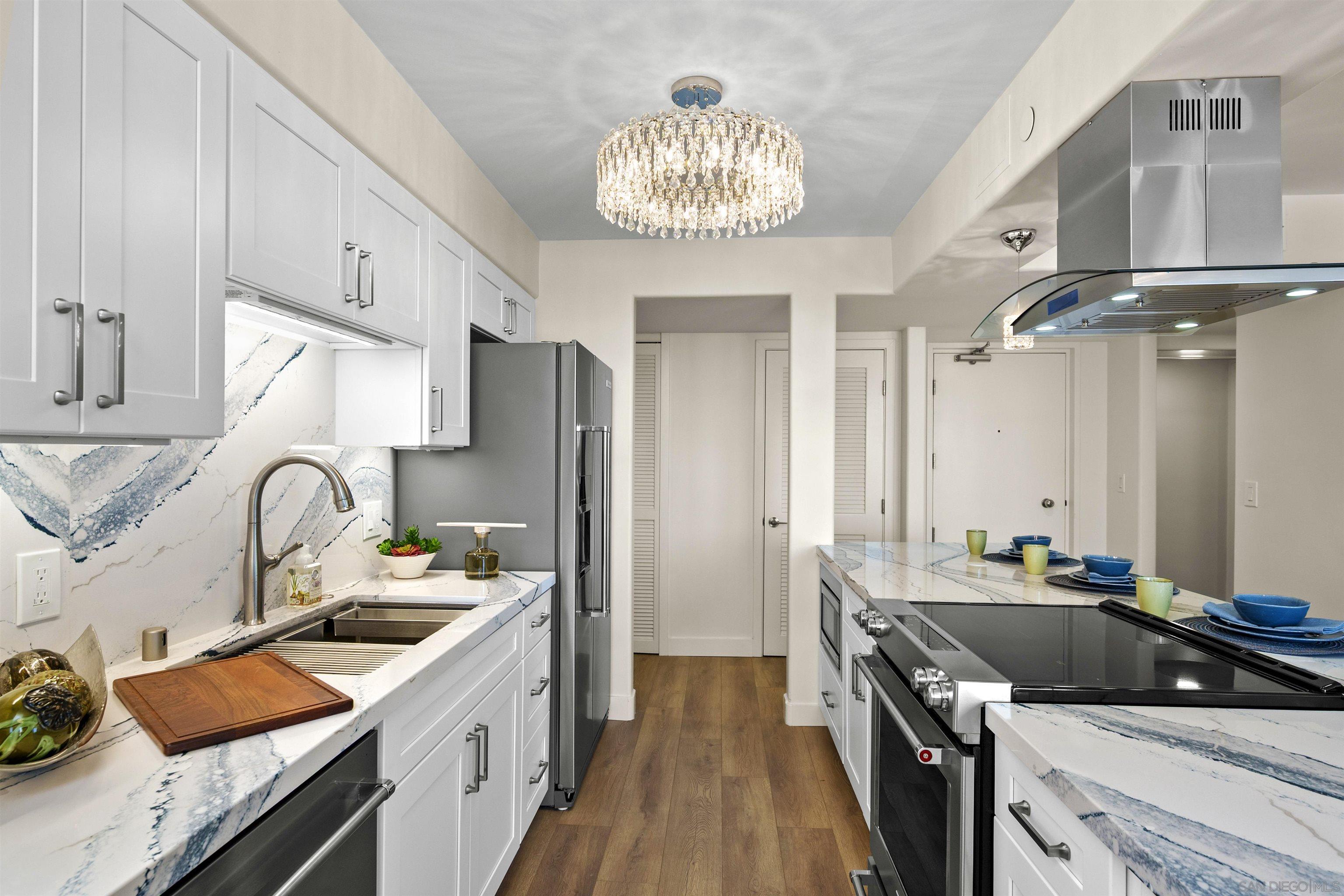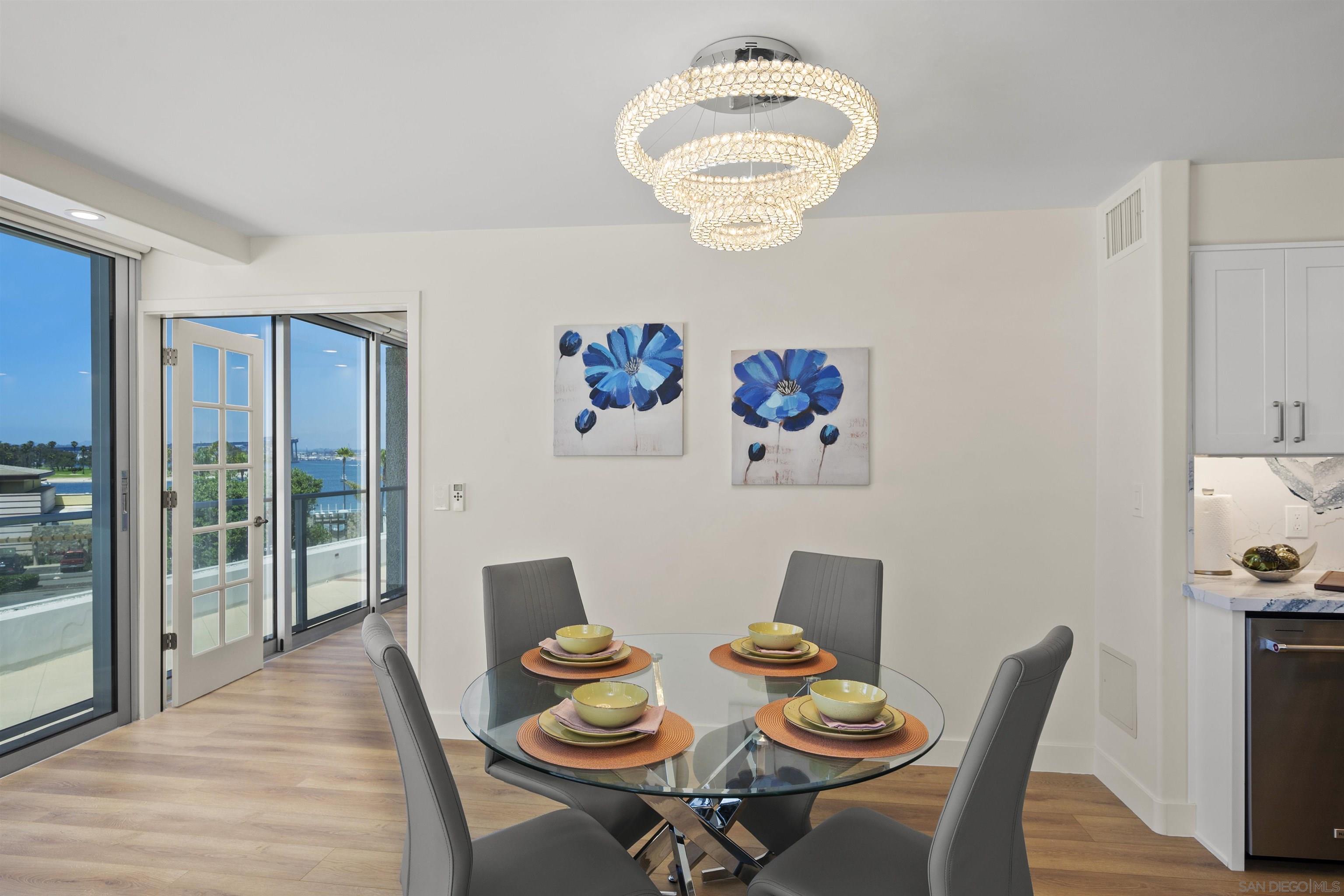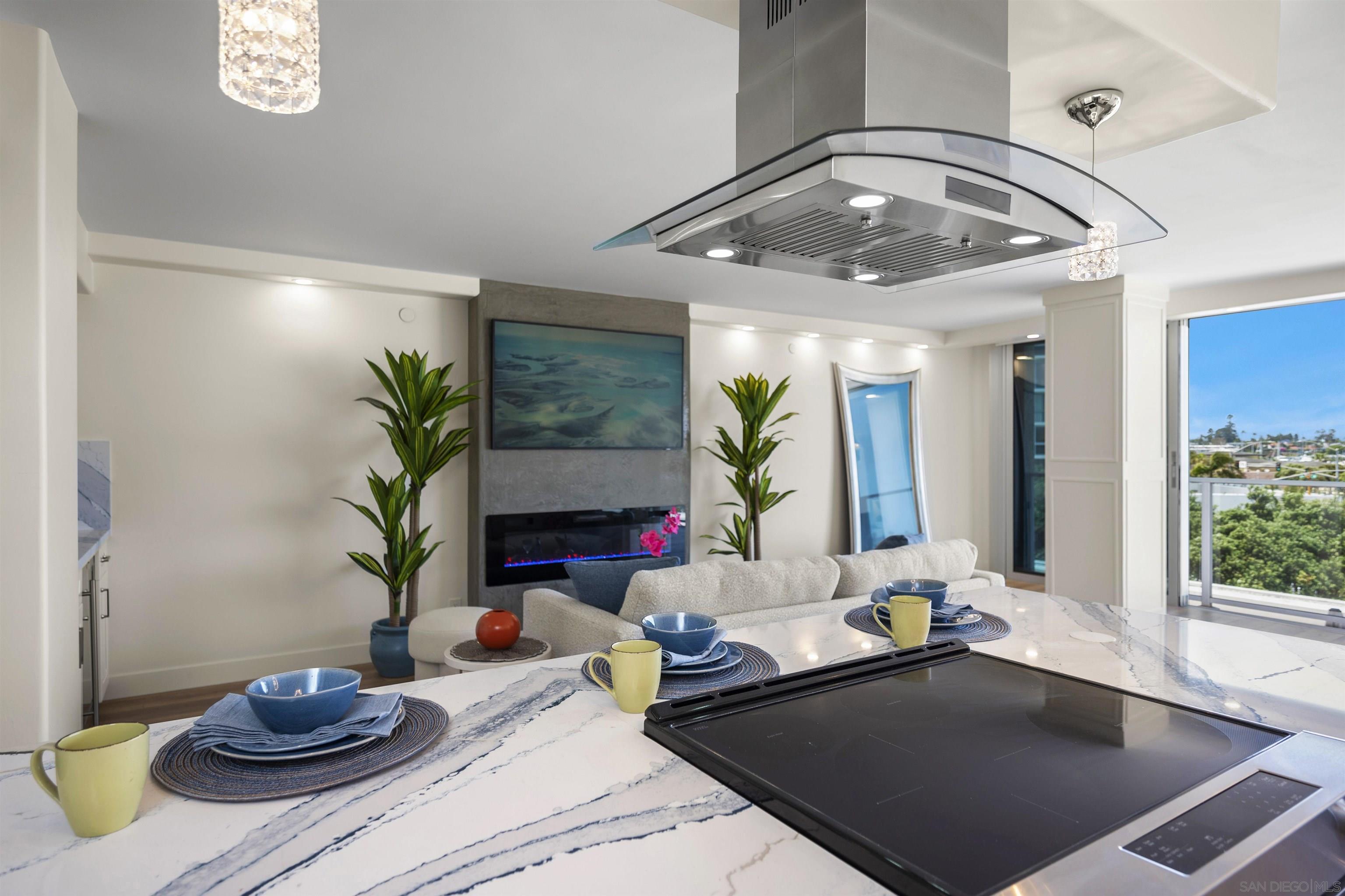 This unit has the best of both worlds! Full bay view and a partial ocean view. Fully remodeled unit from all aspects with higher end finishes. New sliding panoramic glass doors that open to give you the unobstructed bay, Coronado Bridge and the Downtown skyline. Enjoy the 4th of July fireworks from anywhere in the living room or primary bedroom. New HVAC system, wall finishes, plaster finished fireplace with operable electric wall mounted units. Custom bar with it's own wine cooler and sink. LVP flooring throughout with custom tile finishes in the bathrooms. The panoramic windows also have automatic shades. The kitchen boasts a custom island with new appliances and high quartz with a waterfall finish on both ends. Enjoy the luxury of having 4 large swimming pools, 8 tennis courts, 2 clubhouses, a sauna and a gym all included in the association. This unit is 100% move-in ready.Interested in this Listing?