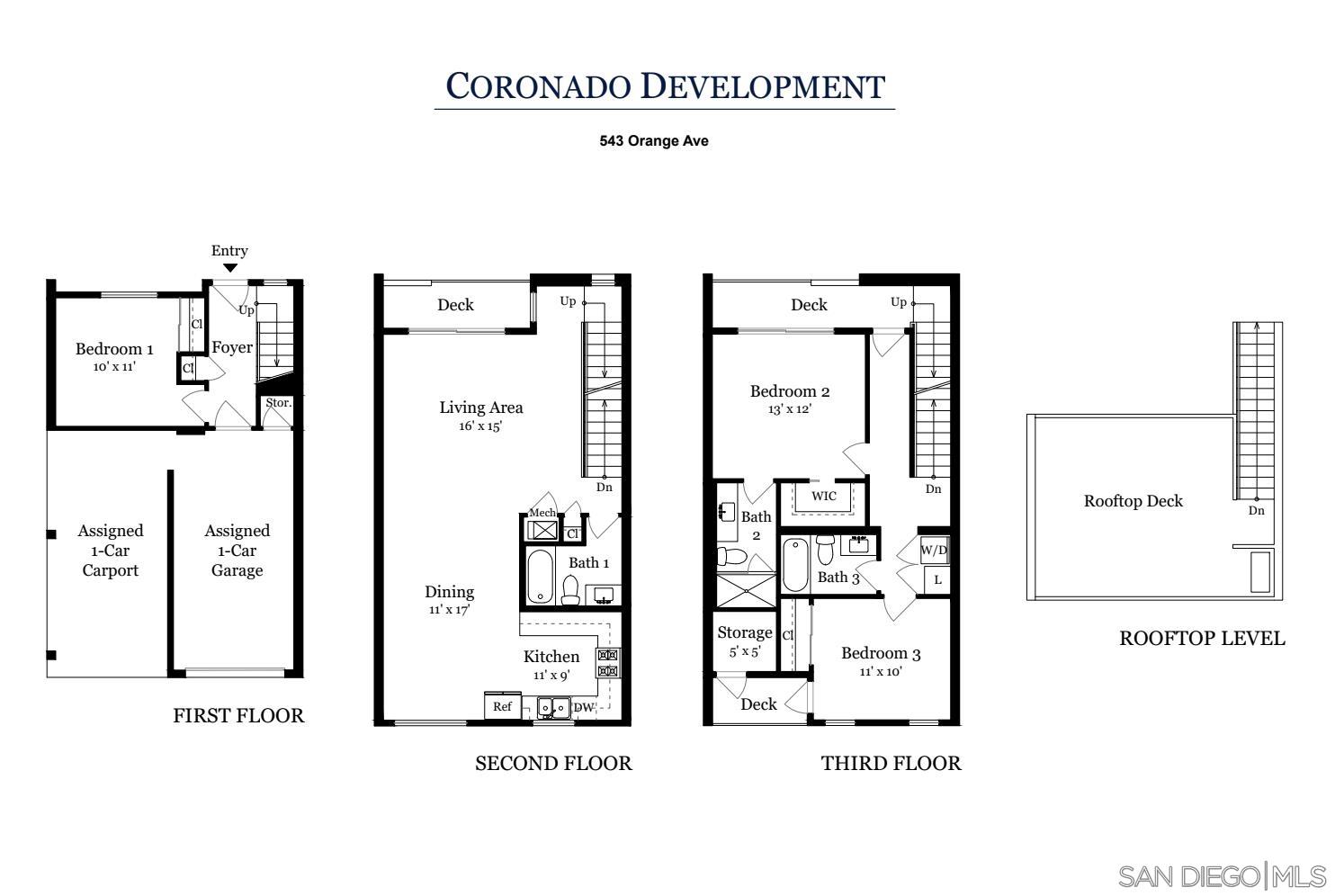 The Orange Avenue Residences are ten brand new townhome-style condos in the walkable Village of Coronado Island! This three-story 3-bedroom, 3-bath home features 1,554 square feet of interior living space, 3 exclusive-use outdoor spaces including an expansive roof deck with views of the Downtown SD Skyline and the Coronado Bridge, a 1-car garage, and a 1-car carport with 220v EV charging. Elegant finishes include wide plank wood floors throughout, Calacatta-style quartz countertops, shaker cabinetry, designer tile, wainscoting wall details, custom trim work, copper gutters, and more. Beautiful kitchen with stainless steel appliances. Additional features include AC, in-unit laundry, individually owned 6-panel solar, 220v EV charging, and beautiful common area in the front courtyard with two gas fire pits and water feature. A prime location with a host of amenities within reach including Hotel Del Coronado, Spreckels Park, golf course, world class beaches, and an array of shops and restaurants that dot Orange Avenue! This location ensures a vibrant and fulfilling lifestyle for residents and visitors alike.Interested in this Listing?