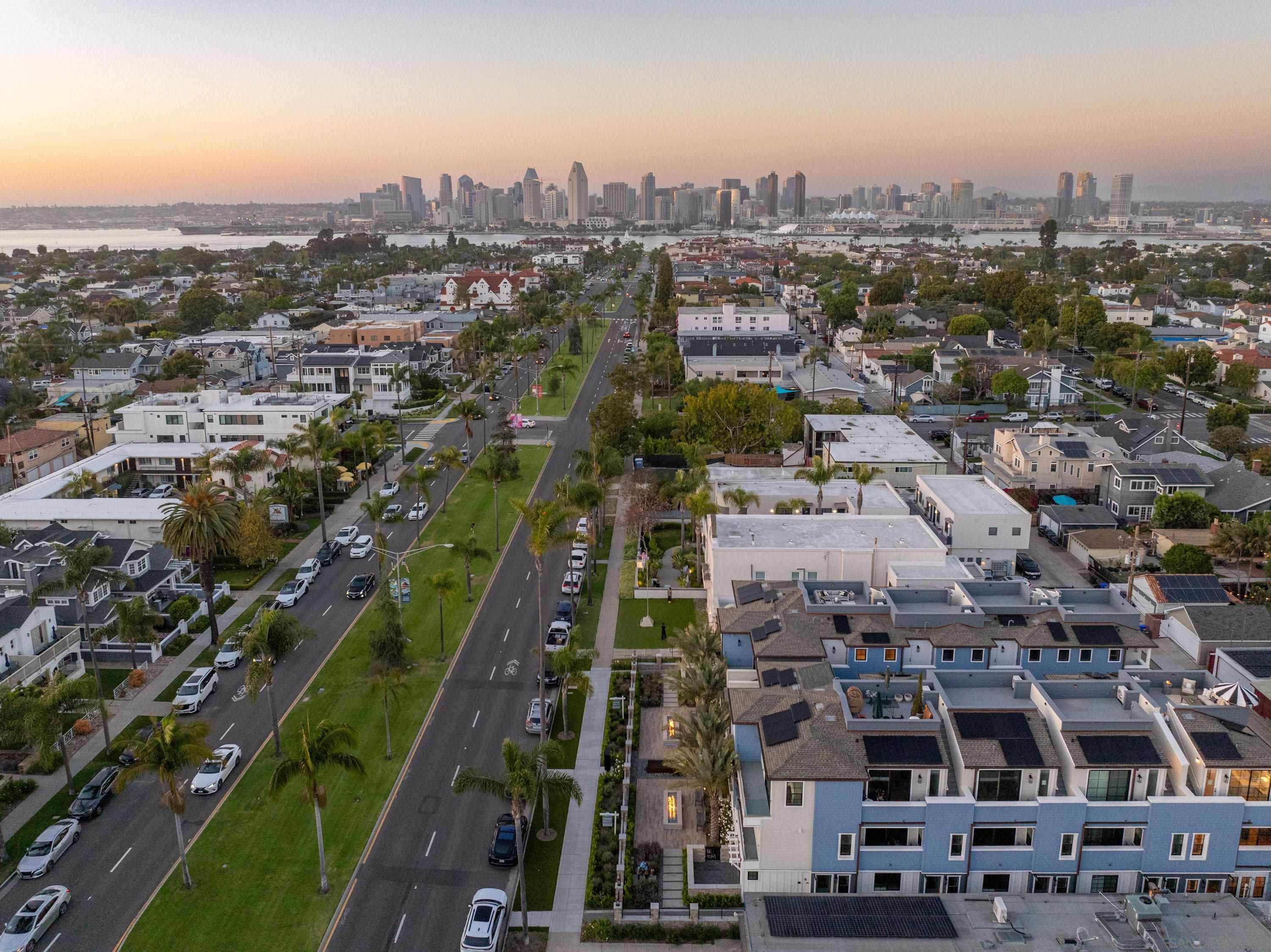 The Orange Avenue Residences are ten brand new townhome-style condos in the walkable Village of Coronado Island! This three-story 3-bedroom, 3.5-bath home is an end unit featuring 1,680 square feet of interior living space, 5 exclusive-use outdoor spaces including it's own expansive roof deck with views of the Downtown SD skyline and Coronado Bridge, and a side-by-side 2-car carport with 220v EV charging. Unique to this unit is a full ensuite bathroom for the ground floor bedroom. Elegant finishes include wood plank floors throughout, Calacatta-style quartz countertops, shaker cabinetry, designer tile, wainscoting wall details, custom trim work, copper gutters, and more. Beautiful kitchen with GE Cafe white appliances and gold finishes. Additional features include AC, in-unit laundry, individually owned 6-panel solar, and beautiful common area in the front courtyard with two gas fire pits and water feature. A prime location with a host of amenities within reach including Hotel Del Coronado, Spreckels Park, golf course, world class beaches, and an array of shops and restaurants that dot Orange Avenue! This location ensures a vibrant and fulfilling lifestyle for residents and visitors alike.Interested in this Listing?