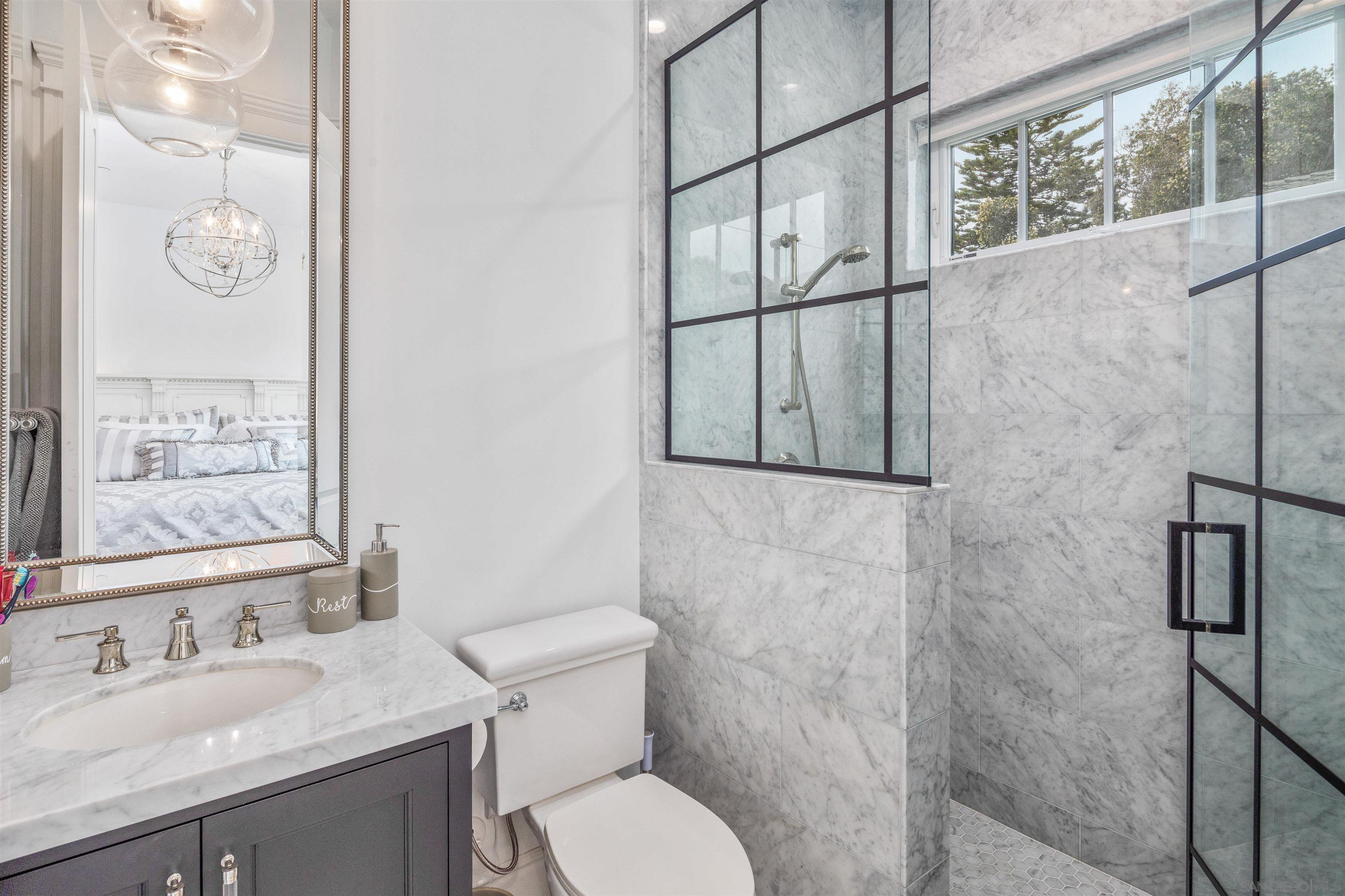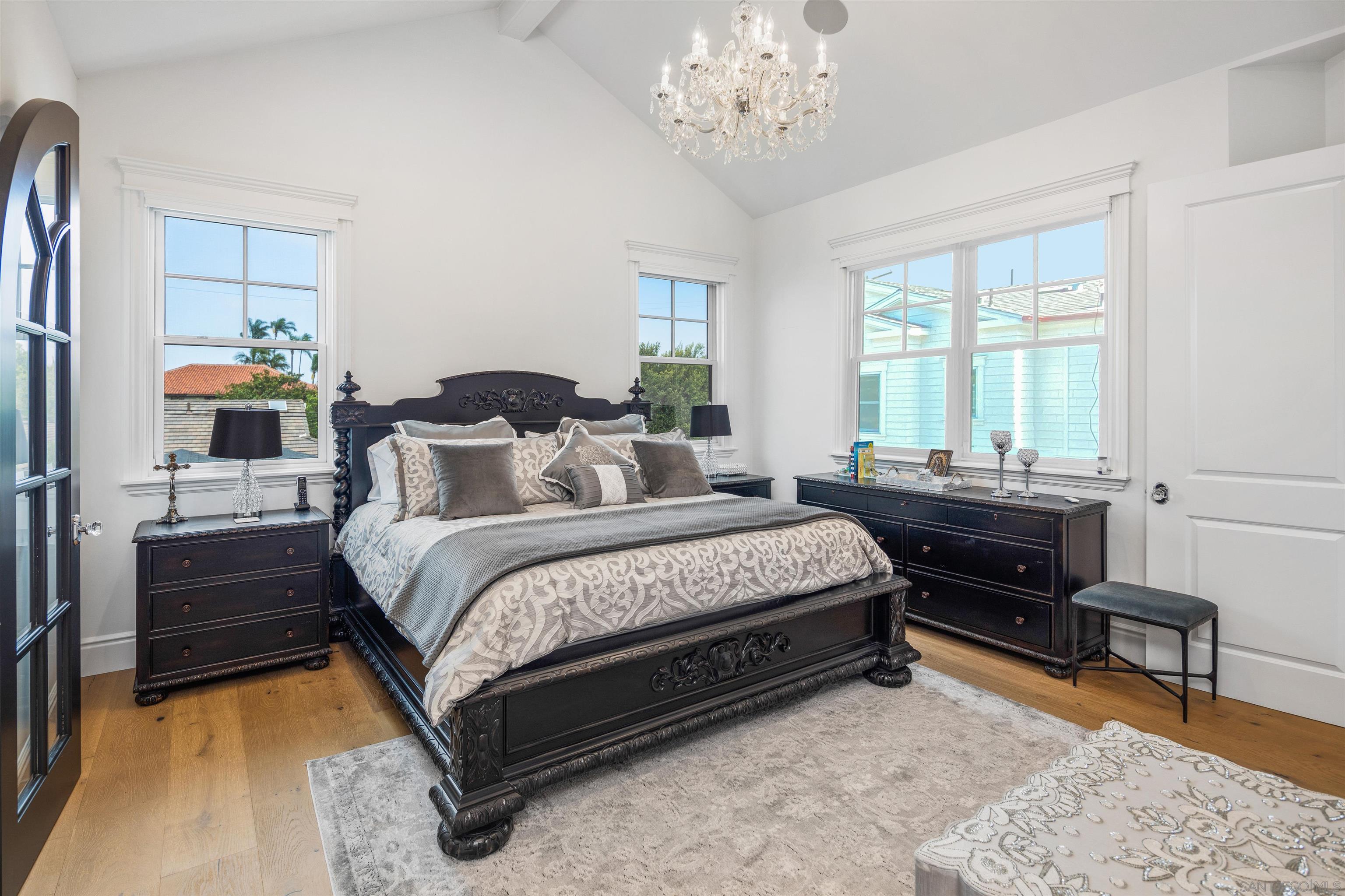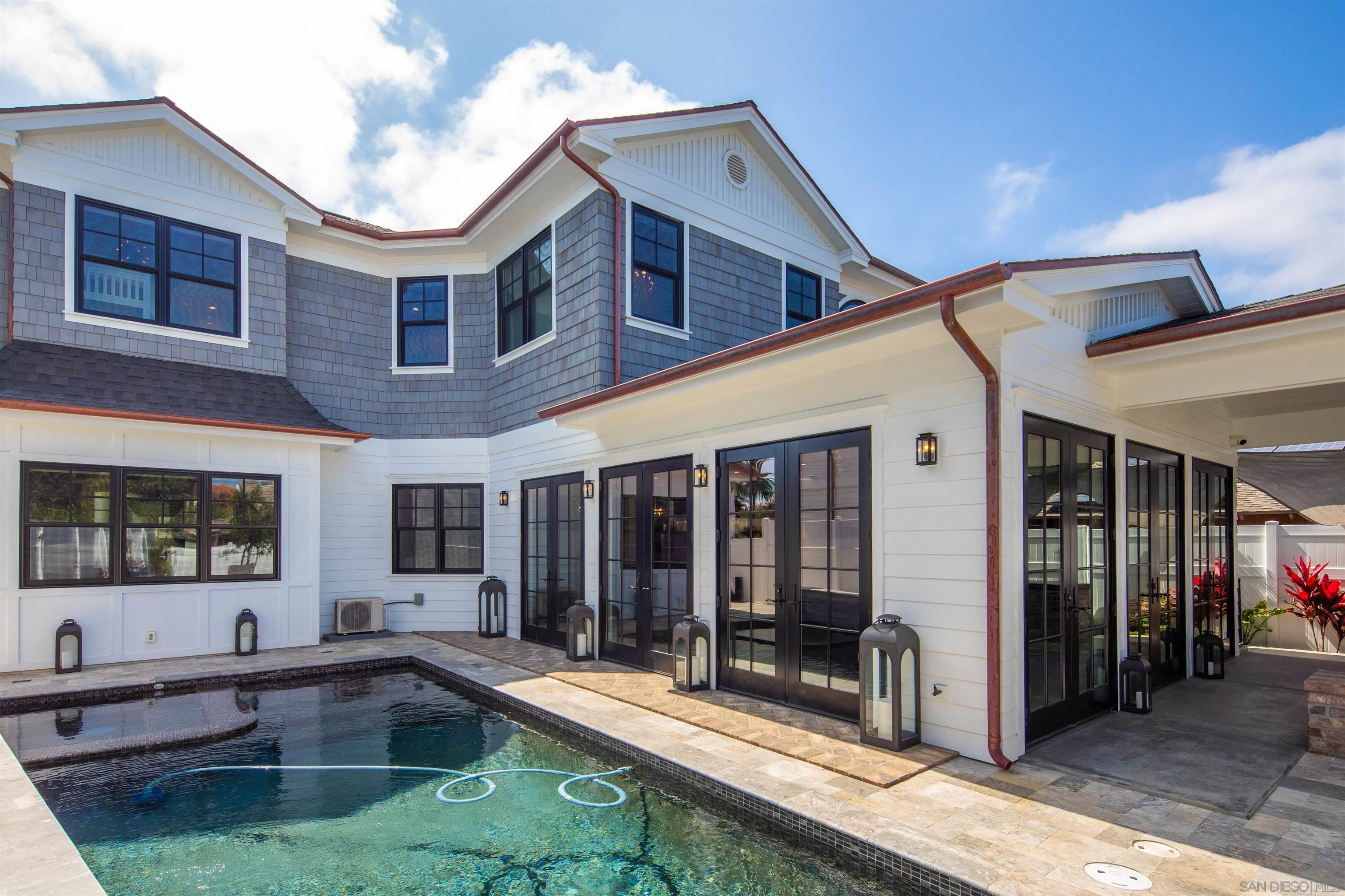 This incredible property is located just one block to Coronado Beach! Built in 2019, this stunning 3,800 sq. ft. home offers it all and will leave you breathless! Amazing attention to detail, high-end appliances and finishes with a desirable indoor/outdoor feel via the classic French doors that open entirely out to the pool and impeccably landscaped yard. The home offers 5 bedrooms, all en suite, including one on the first level with a king bed. Guests will love the gourmet kitchen which overlooks both the dining and great room making it the perfect area to host family and friends. Enjoy relaxing on the front porch swing and accompanying seating area with fireplace or find your way to the backyard which is an entertainer's paradise with a large, covered patio, fire pit, pool and jacuzzi. The upper level features 4 bedrooms, a media room, and laundry room. Two bedrooms offer queen beds, one bedroom has queen bunk beds. Finally, the master bedroom suite with king bed comes complete with fireplace, luxurious marble bathroom and large walk-in closet. The home offers AC, water softening and RO systems and state-of-the-art AV/TV/Alarm. There are bikes for use and all the beach amenities will need to enjoy the full Coronado experience.
