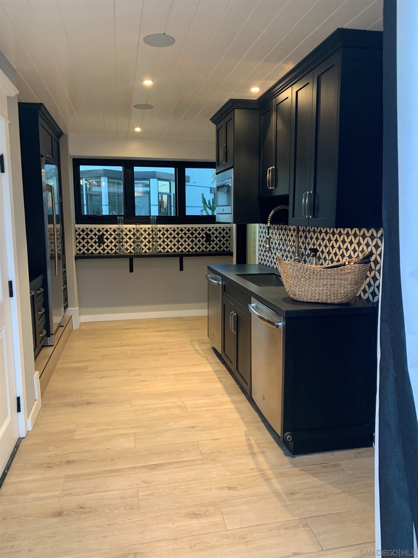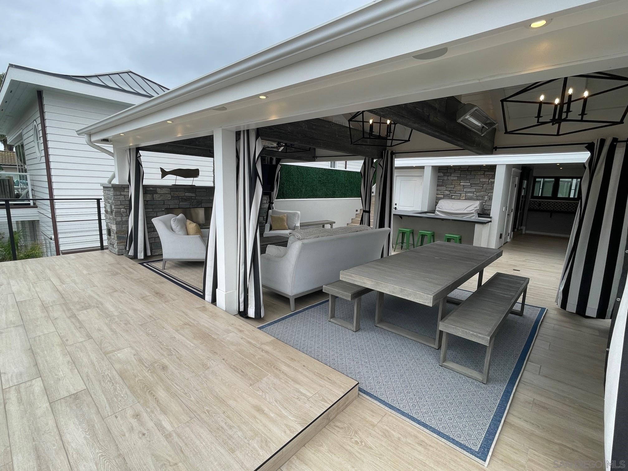 Experience coastal living at its finest in this stunning beachside retreat with breathtaking ocean views. This spacious and stylishly remodeled home offers the perfect blend of elegance and laid-back beach vibes, located on Coronados most coveted street, just steps from the shoreline. Boasting five expansive ensuite bedrooms, this 2020-renovated gem features high-end finishes throughout. The bright, modern kitchen is flooded with morning light, complemented by a butlers pantry and coffee station for your convenience. Four oversized La Cantina doors seamlessly connect indoor and outdoor living, creating an airy, open atmosphere. The outdoor spaces are truly spectaculara sprawling ocean-facing, covered entertainment area complete with a full outdoor kitchen, built-in BBQ, fireplace, and television. For panoramic views, head up to the large private rooftop deck, perfect for sunsets or stargazing. With two entry-level bedrooms, an elevator to the second floor, oak and tile flooring, and a low-maintenance gated yard, this home is designed for ease, comfort, and sophistication. Outfitted with a state-of-the-art Crestron AV system and professionally furnished, its move-in ready for long-term or seasonal living (rates vary). Don't just live by the oceanlive in the lifestyle you've always dreamed of!