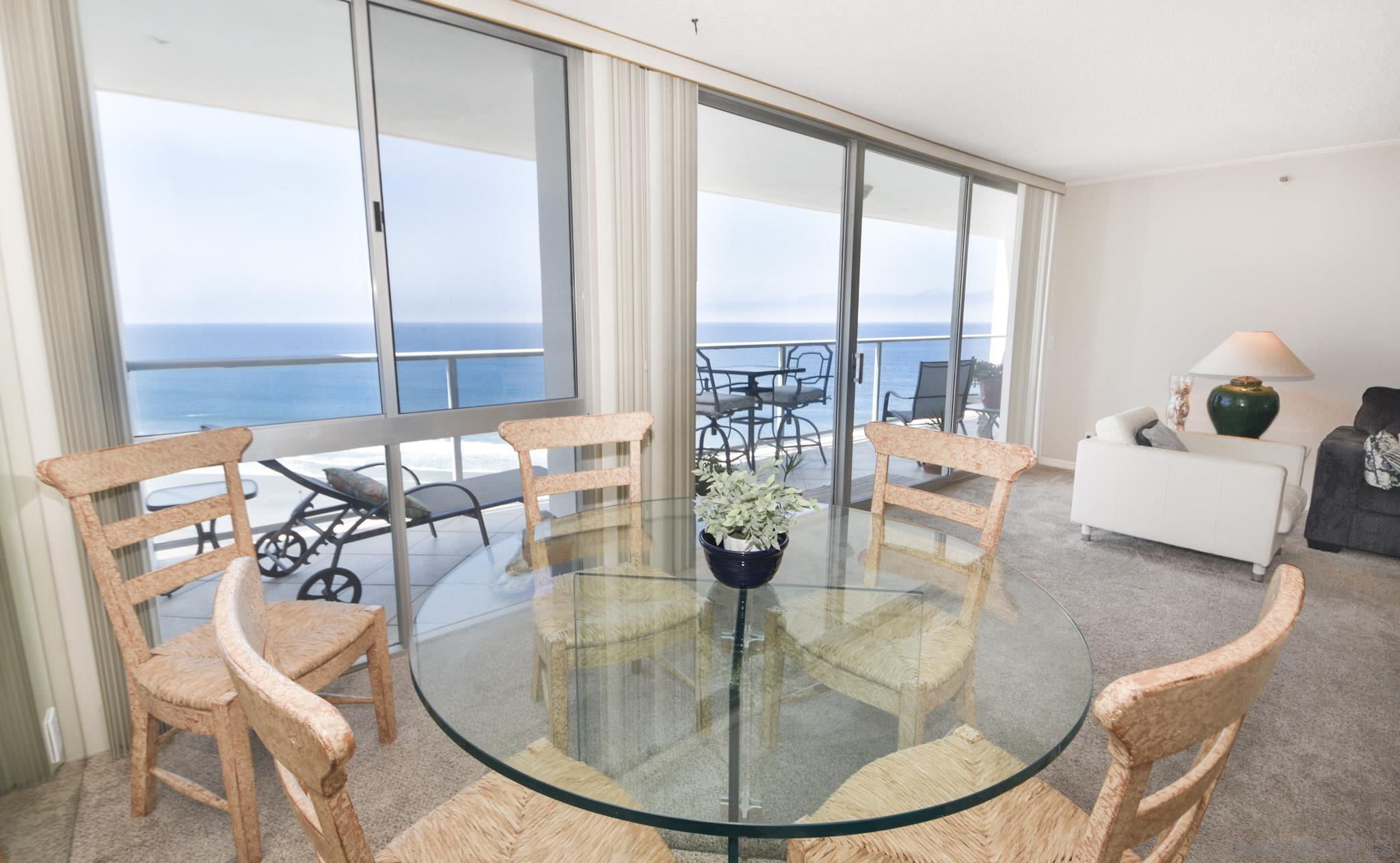 Vacation rental at Coronado Shores! Furnished 2 bedroom 2 bath Condo offers stunning views of the ocean and is just steps away from the beach. Imagine waking up every morning to the sound of the waves and the smell of the ocean breeze. In addition to the prime location, our unit is within walking distance to restaurants and shops, making it the perfect spot for a vacation. You will also have access to 8 tennis courts and 4 pool/spa areas, as well as the Beach Club.