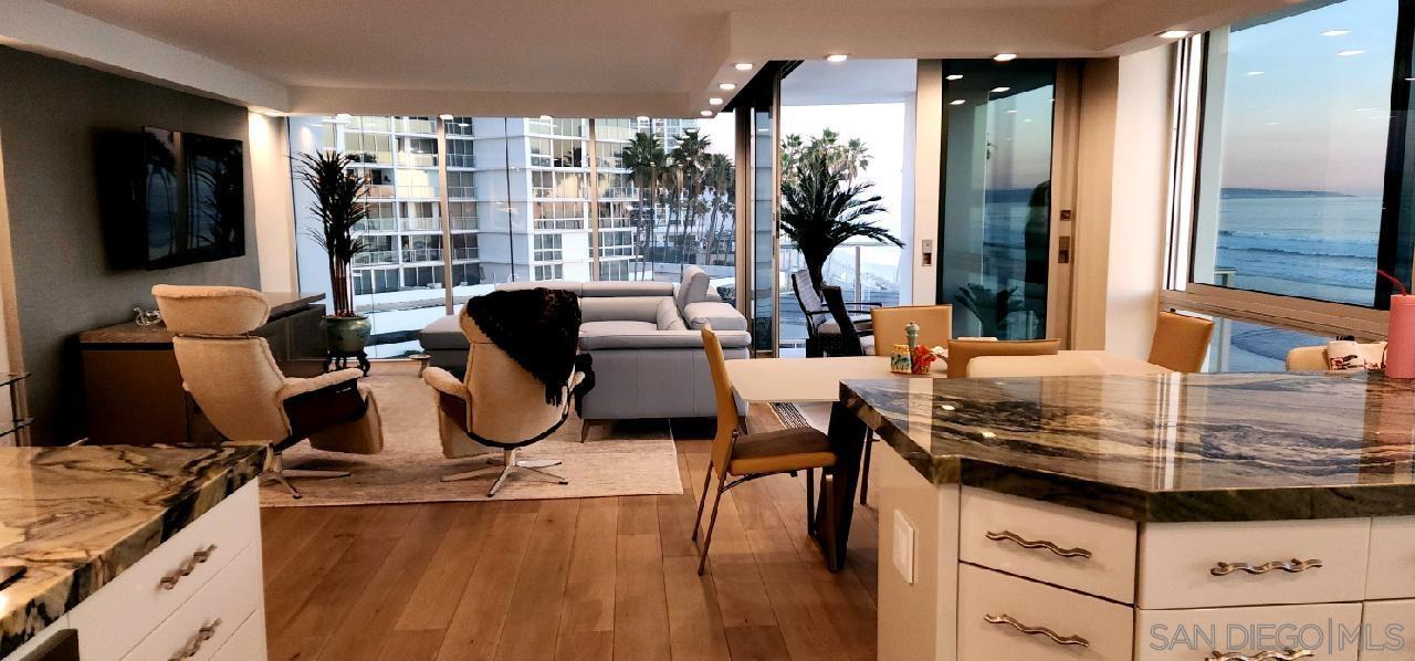 Incredible unobstructed oceanfront corner location was completely remodeled in 2024. This location and floor height feels like you're sitting on the beach! Watch the waves roll in and the surfers and dolphins frolic from the comfort of your living room, balcony and bedrooms- all rooms are unobstructed oceanfront with no street separating you from the sand and the sea. Beautifully remodeled throughout with a luxurious modern feel. Electric furling window treatments, flat screens in every room & many other upgrades- GREAT vacation spot!