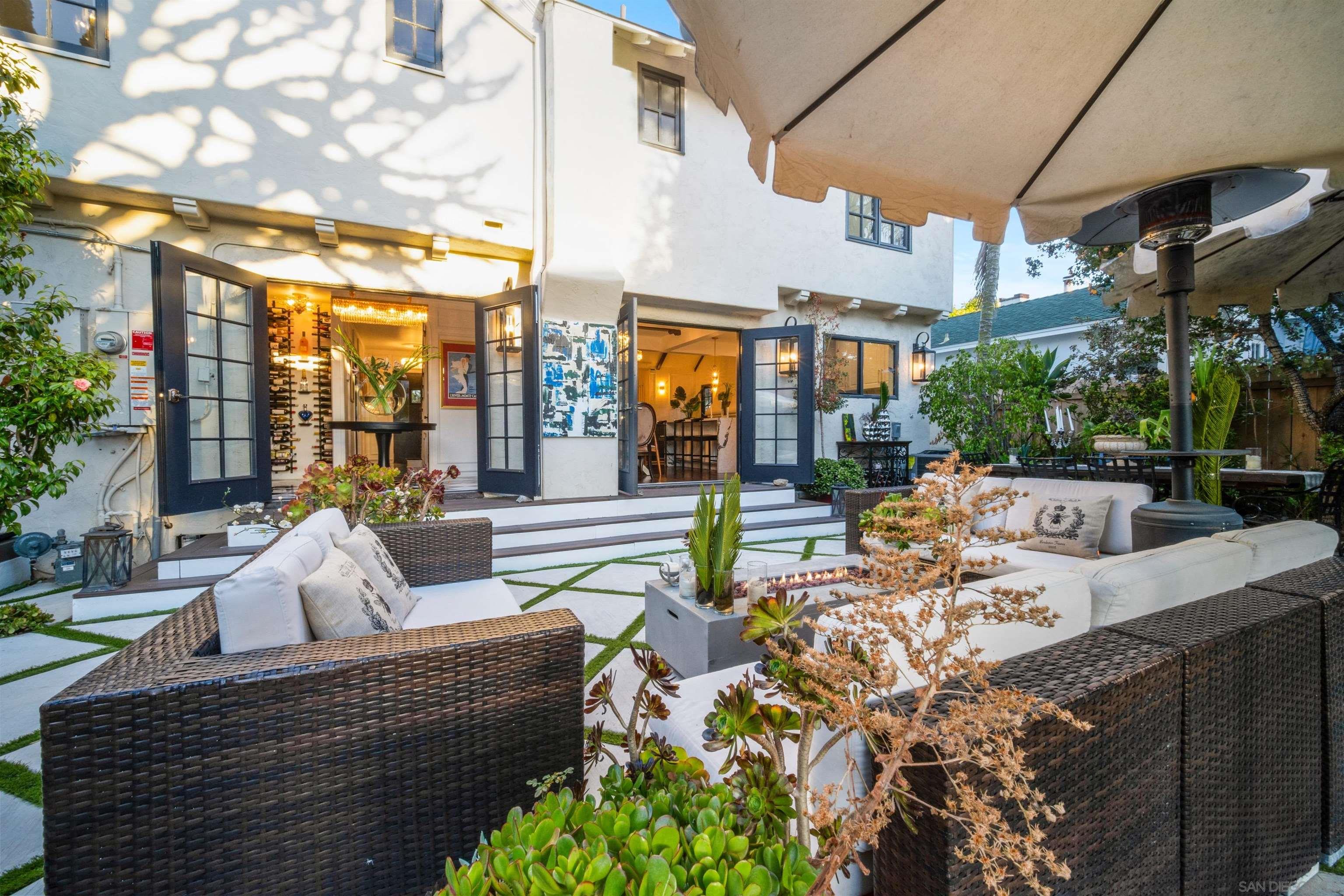 Step into timeless elegance in this historic Tudor-style beach home nestled in Coronado Island just 2 blocks from the beach and the San Diego Bay. Boasting a stately presence and refined architectural details, this residence is the perfect vacation home. Upon entering, be greeted by the formal entry showcasing Italian marble flooring, professionally designed interior, high-end fixtures and custom finishes throughout.This fully furnished beach home features an open-concept layout adorned with exquisite furnishings, tasteful decor, and a cozy fireplace. French doors seamlessly connect indoor and outdoor living spaces perfect for summer entertaining. Step outside to discover a sprawling backyard oasis, where lush greenery and tranquil ambiance create an inviting retreat. Whether lounging under the shade of mature trees or gathering around the fire pit under the starlit sky, this outdoor sanctuary is an idyllic escape. Conveniently located just blocks away from the iconic Hotel del Coronado, indulge in world-class dining, shopping, and entertainment options. Embrace the quintessential beach lifestyle with leisurely strolls along the shoreline or embark on adventures on the azure waters. Experience the epitome of luxury living in this beach home, where every moment is infused with elegance and charm. Welcome to your sanctuary by the sea!