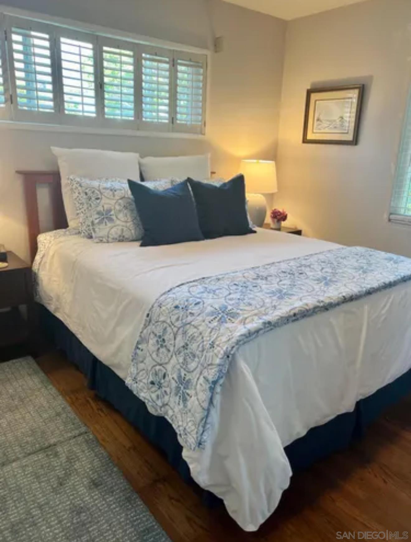 This beautifully appointed home in the Country Club area of Coronado is available for rent starting November 1, 2025 and offers both long-term and short-term options, furnished or unfurnished. Situated on a large lot, it features ample parking, a spacious, park-like yard, and is just a short bike ride to the beach or town. Inside, you'll enjoy an open, airy atmosphere with refinished hardwood floors throughout, new carpeting in the primary bedroom and AC! The fully stocked kitchen opens to a cozy family room with a large flat-screen TV. The large primary bedroom has a king-size bed, a walk-in closet, a sitting area, French doors that open to the beautifully landscaped backyard, and an en suite bathroom with a large shower and custom cabinetry. The second bedroom has a queen-size bed and en suite bathroom with a tub and shower, while the third bedroom includes a full-size bed. There's also a dedicated office space and a laundry closet with a full-size washer and dryer. This charming home is perfect for those looking to relax and enjoy the best of Coronado living. Rates vary depending upon the length of stay. The home sleeps 6 people comfortably. Garage accommodates 1 car or small SUV