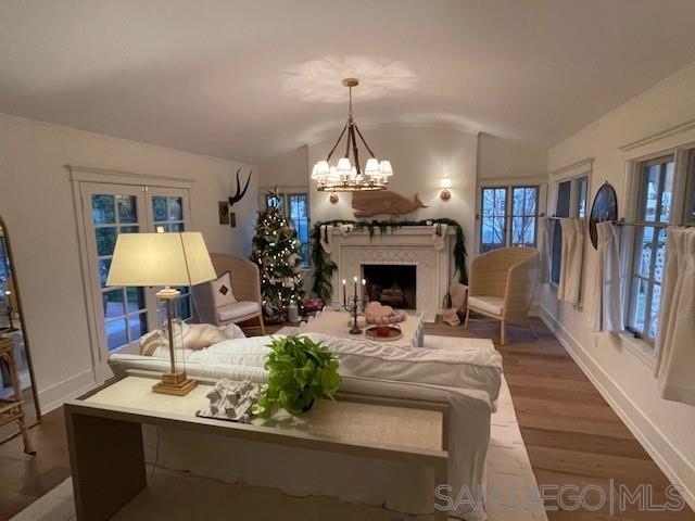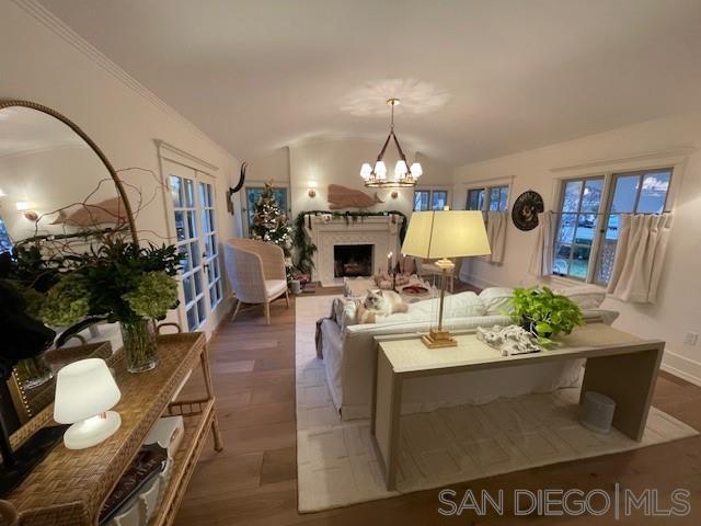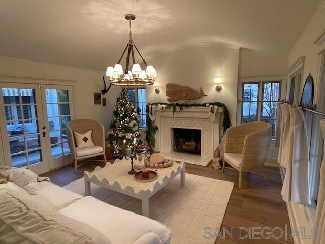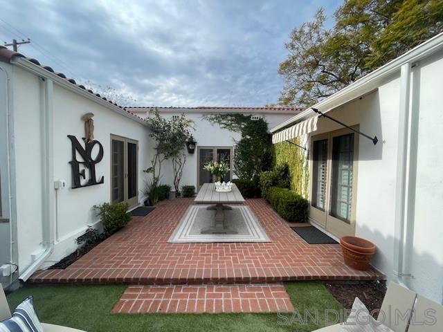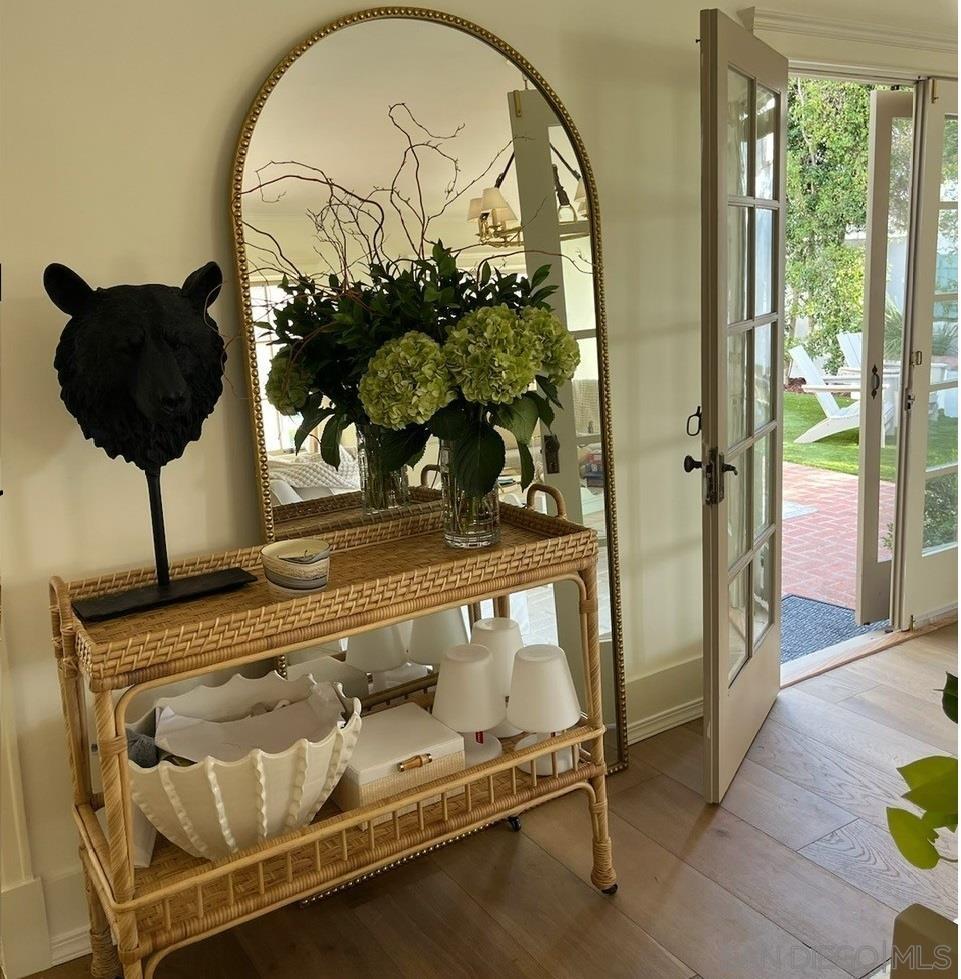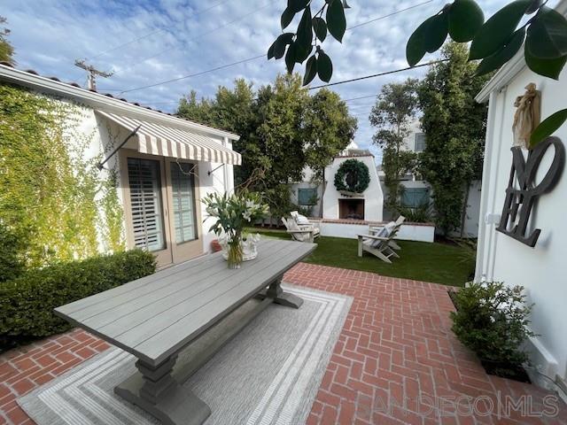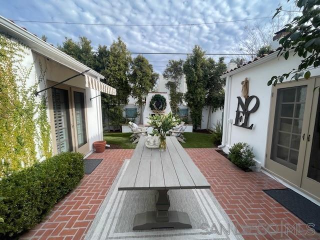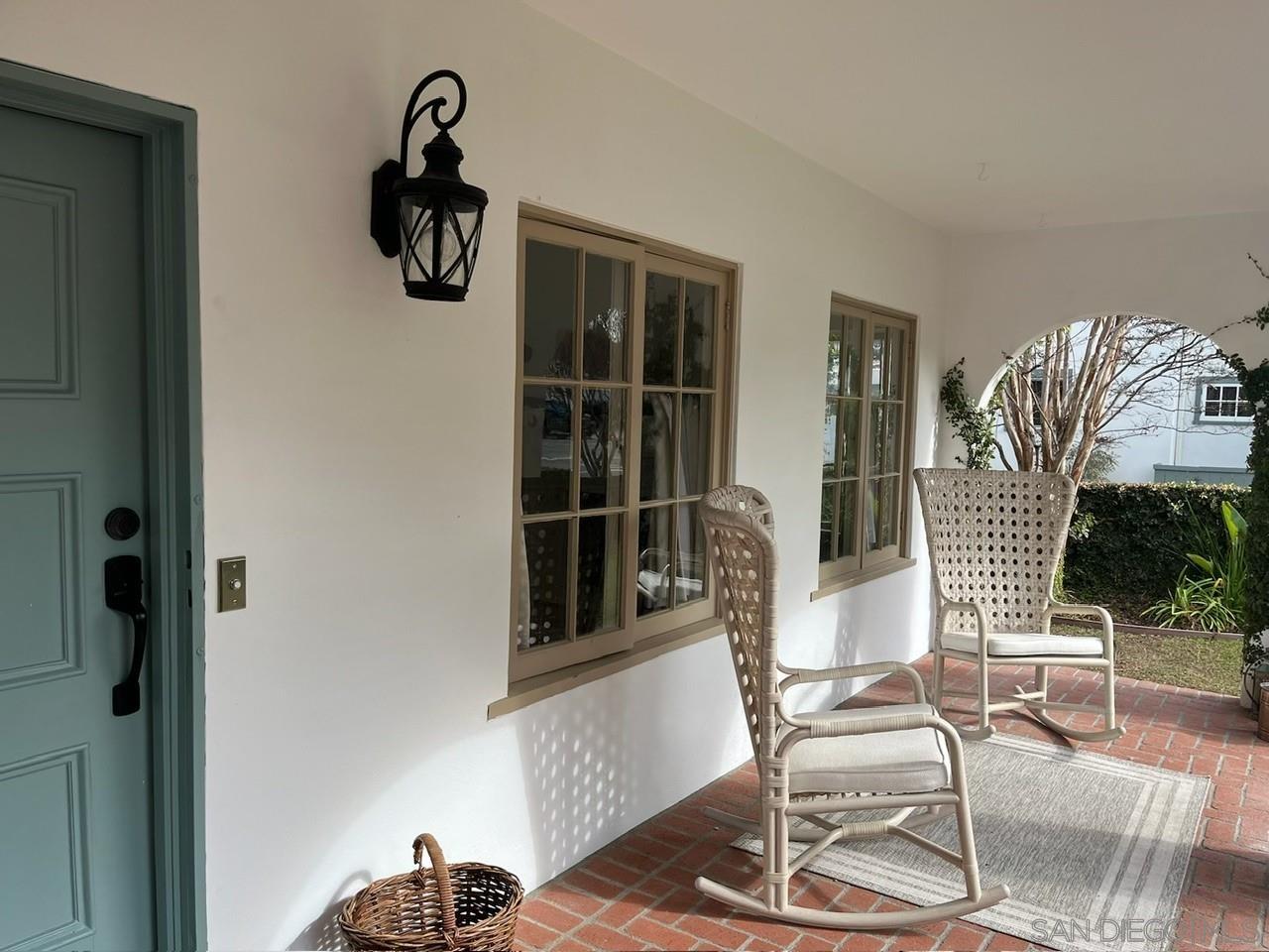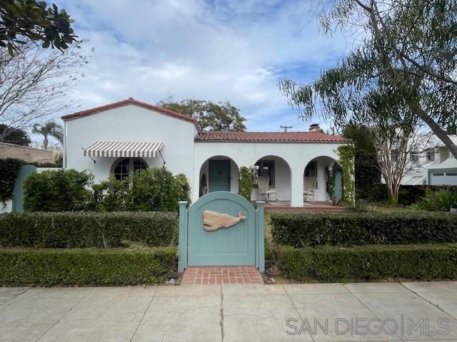 A charming, newly remodeled, fully furnished Coronado home with rooms surrounding an inner brick courtyard facing a wood-burning fireplace. The home features a welcoming, elevated front porch, a quaint family room with a barreled ceiling, and a second wood-burning fireplace. The entire home features newly installed Du Chateau wide-plank oak flooring. The oversized kitchen includes a Sub-Zero refrigerator, a Viking professional range, and an abundance of cabinets. The adjacent dining area is surrounded by charming arched French doors and enhanced with high-end Ralph Lauren lighting and custom chairs and bench seating. There are three bedrooms, two with new mattresses and custom beds. The Primary bathroom features a large shower, while the bathroom serving the back two bedrooms features a full-sized bathtub and walk-in shower. The mini-split system heat and A/C system is less than 6 months old. The new gas BBQ is ideal for outdoor cooking and entertaining. The home features 62' of frontage with large side yards for privacy and space, mature landscaping, and has been professionally decorated with designer (Visual Comfort & Ralph Lauren) lighting and furnishings.