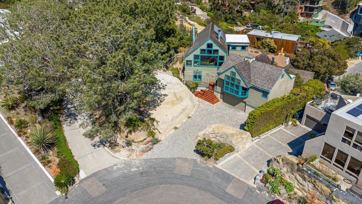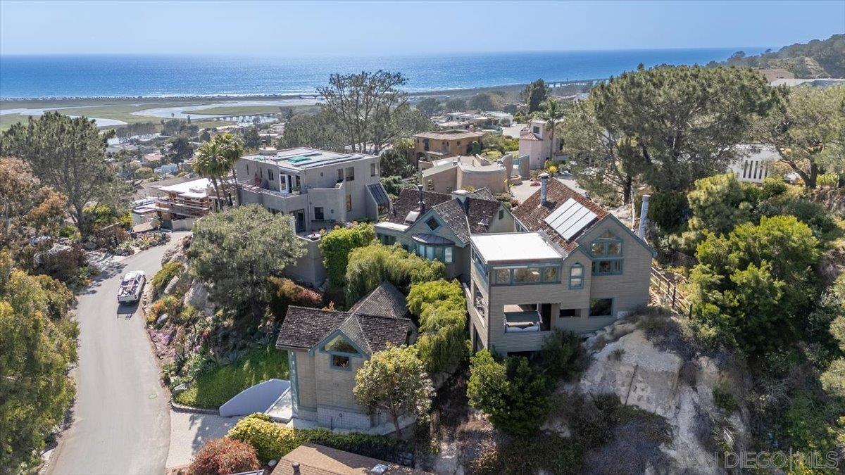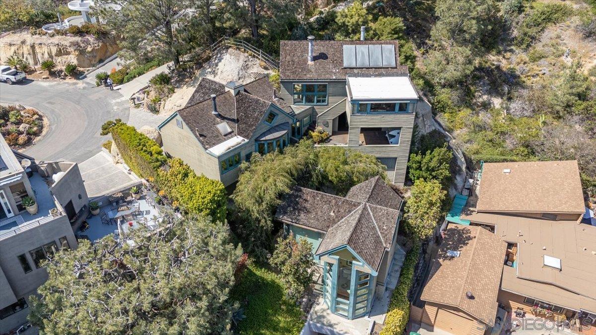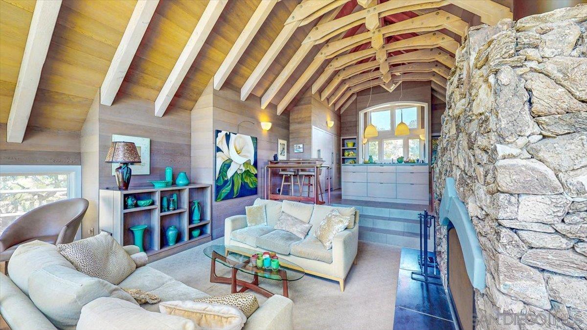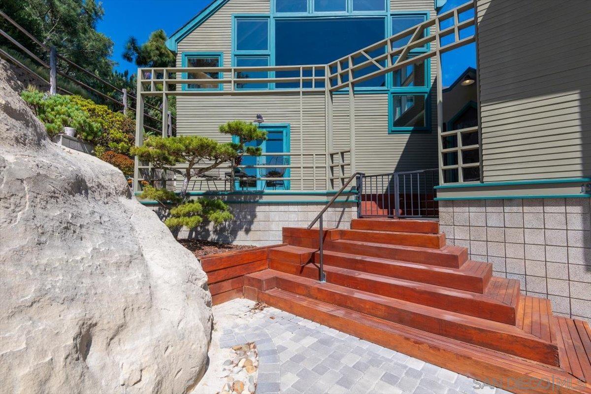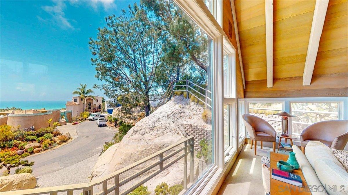 Welcome to a John Nalevanko design coastal sanctuary in Del Mar. This extraordinary 3283 sqft main home along with a detached 900 sqft guest house for a total living space of 4183 sqft. Designed by the world-renowned architect Wallace Cunninghamis and is a testament to inspired design and luxurious living. Nestled among natural sandstone boulders, this residence offers a harmonious blend of space, light, indoor/outdoor design, style, and functionality. The crown jewel of this home is undoubtedly the breathtaking primary home featuring an impressive master bedroom thats more than just a sleeping space it's a private retreat. Handcrafted center grain redwood ceiling create an airy, loft-like atmosphere, while large windows flood the room with natural light and offer ocean views. The adjoining spa-like bathroom, complete with a freestanding tub, elevates your daily routine to a luxurious experience. The living areas are designed for both relaxation and entertaining. A grand stone fireplace serves as a stunning focal point in the main living room, creating a cozy ambiance for those chilly Del Mar evenings. Soaring exposed beam vaulted ceilings with alluring panoramic ocean views. This beautiful home is located just moments from Torrey Pines State Natural Reserve and the world renowned Torrey Pines Golf Course, pristine beaches, and upscale shopping and the neighborhood benefits from its proximity to La Jolla and easy freeway access, providing a seamless connection to greater San Diego. Del Mar Terrace also offers easy access to Scripps Green Hospital, Scripps Memorial.Interested in this Listing?