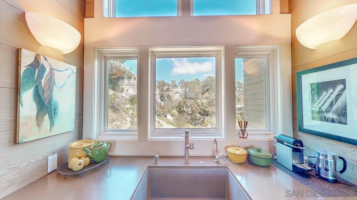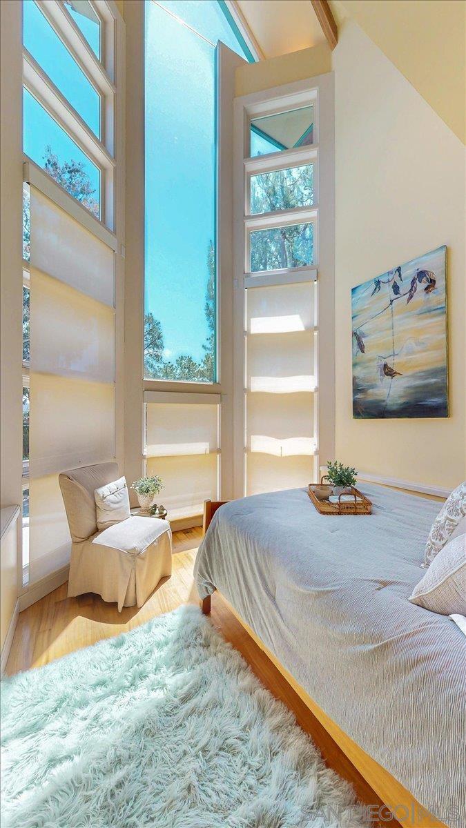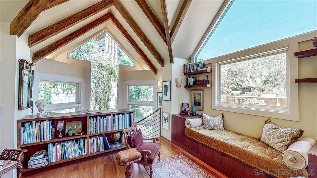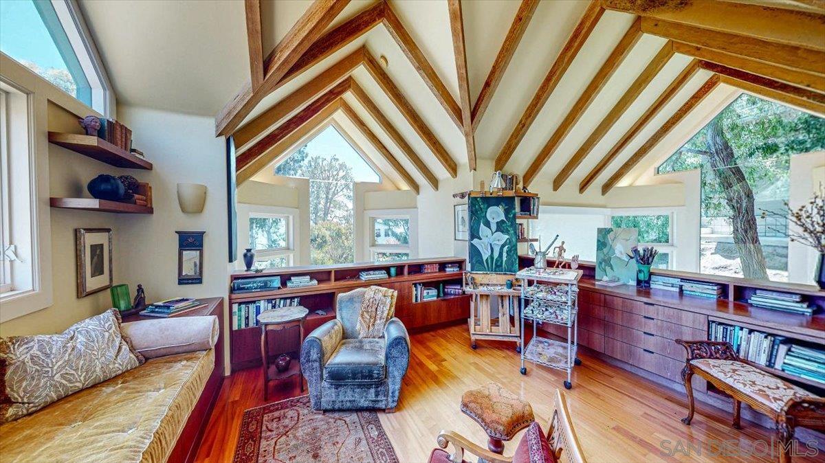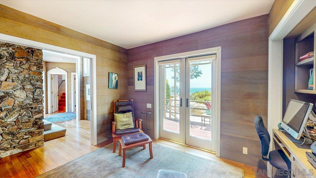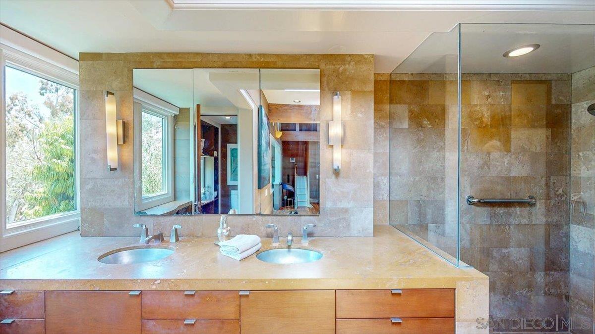 Welcome to a John Nalevanko design coastal sanctuary in Del Mar. This extraordinary 3283 sqft main home along with a detached 900 sqft guest house for a total living space of 4183 sqft. Designed by the world-renowned architect Wallace Cunninghamis and is a testament to inspired design and luxurious living. Nestled among natural sandstone boulders, this residence offers a harmonious blend of space, light, indoor/outdoor design, style, and functionality. The crown jewel of this home is undoubtedly the breathtaking primary home featuring an impressive master bedroom thats more than just a sleeping space it's a private retreat. Handcrafted center grain redwood ceiling create an airy, loft-like atmosphere, while large windows flood the room with natural light and offer ocean views. The adjoining spa-like bathroom, complete with a freestanding tub, elevates your daily routine to a luxurious experience. The living areas are designed for both relaxation and entertaining. A grand stone fireplace serves as a stunning focal point in the main living room, creating a cozy ambiance for those chilly Del Mar evenings. Soaring exposed beam vaulted ceilings with alluring panoramic ocean views. This beautiful home is located just moments from Torrey Pines State Natural Reserve and the world renowned Torrey Pines Golf Course, pristine beaches, and upscale shopping and the neighborhood benefits from its proximity to La Jolla and easy freeway access, providing a seamless connection to greater San Diego. Del Mar Terrace also offers easy access to Scripps Green Hospital, Scripps Memorial.Interested in this Listing?
