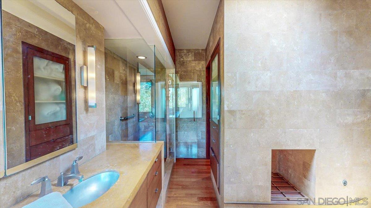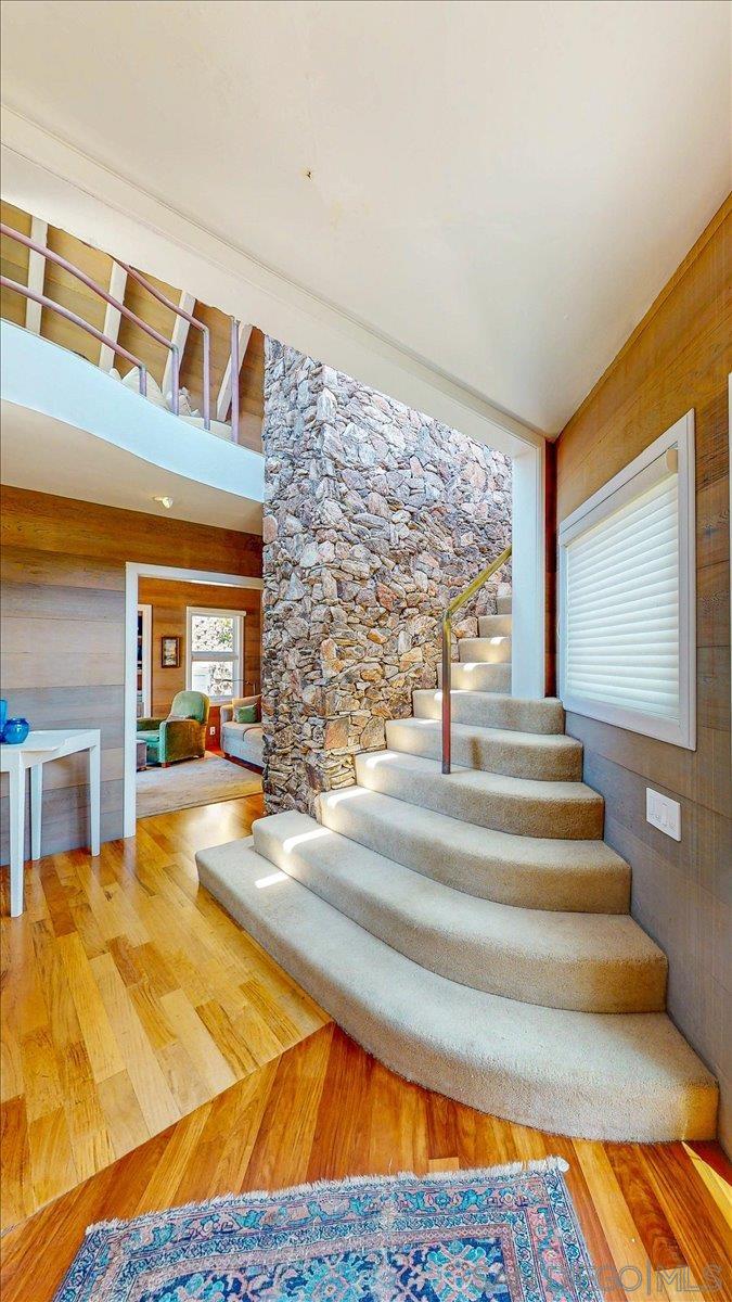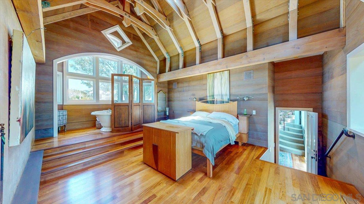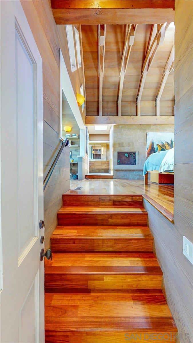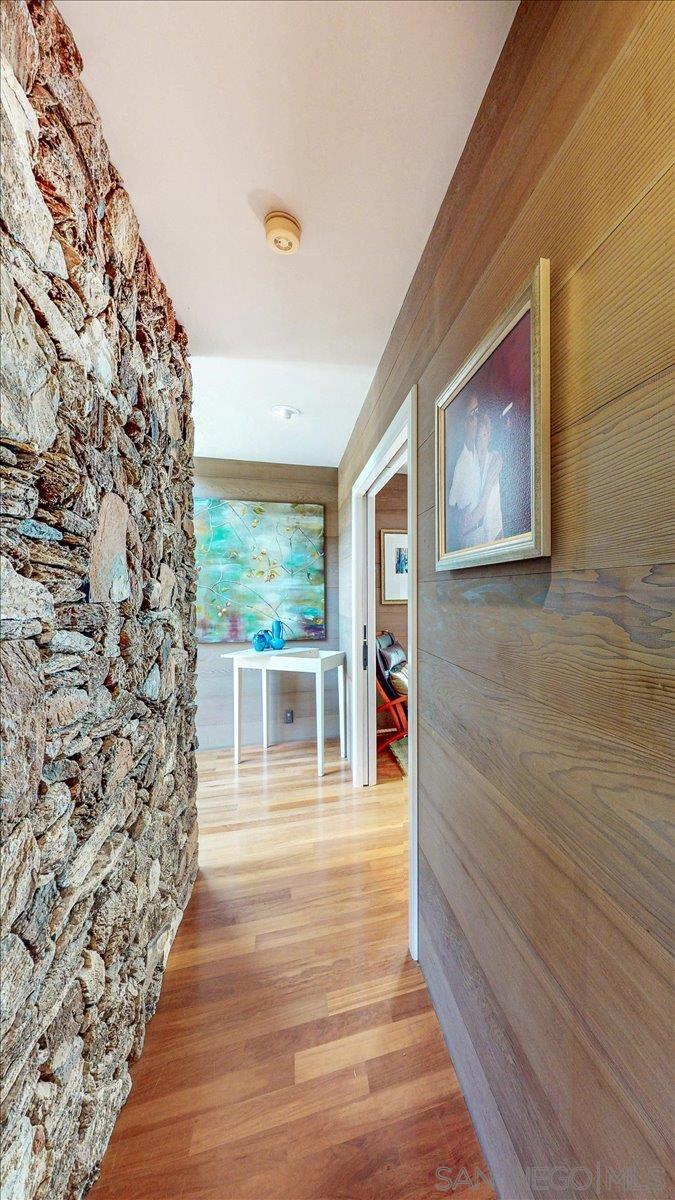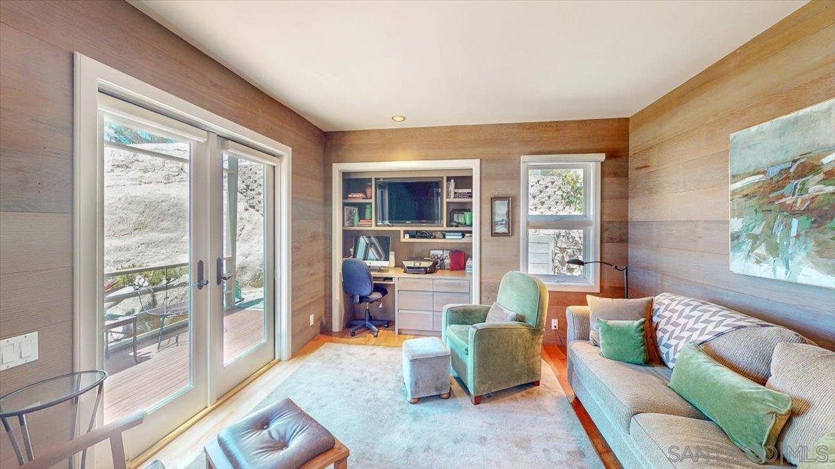 Welcome to a John Nalevanko design coastal sanctuary in Del Mar. This extraordinary 3283 sqft main home along with a detached 900 sqft guest house for a total living space of 4183 sqft. Designed by the world-renowned architect Wallace Cunninghamis and is a testament to inspired design and luxurious living. Nestled among natural sandstone boulders, this residence offers a harmonious blend of space, light, indoor/outdoor design, style, and functionality. The crown jewel of this home is undoubtedly the breathtaking primary home featuring an impressive master bedroom thats more than just a sleeping space it's a private retreat. Handcrafted center grain redwood ceiling create an airy, loft-like atmosphere, while large windows flood the room with natural light and offer ocean views. The adjoining spa-like bathroom, complete with a freestanding tub, elevates your daily routine to a luxurious experience. The living areas are designed for both relaxation and entertaining. A grand stone fireplace serves as a stunning focal point in the main living room, creating a cozy ambiance for those chilly Del Mar evenings. Soaring exposed beam vaulted ceilings with alluring panoramic ocean views. This beautiful home is located just moments from Torrey Pines State Natural Reserve and the world renowned Torrey Pines Golf Course, pristine beaches, and upscale shopping and the neighborhood benefits from its proximity to La Jolla and easy freeway access, providing a seamless connection to greater San Diego. Del Mar Terrace also offers easy access to Scripps Green Hospital, Scripps Memorial.Interested in this Listing?