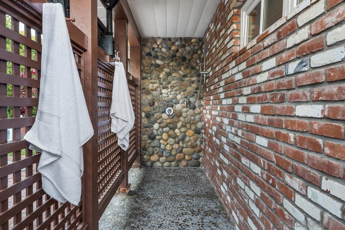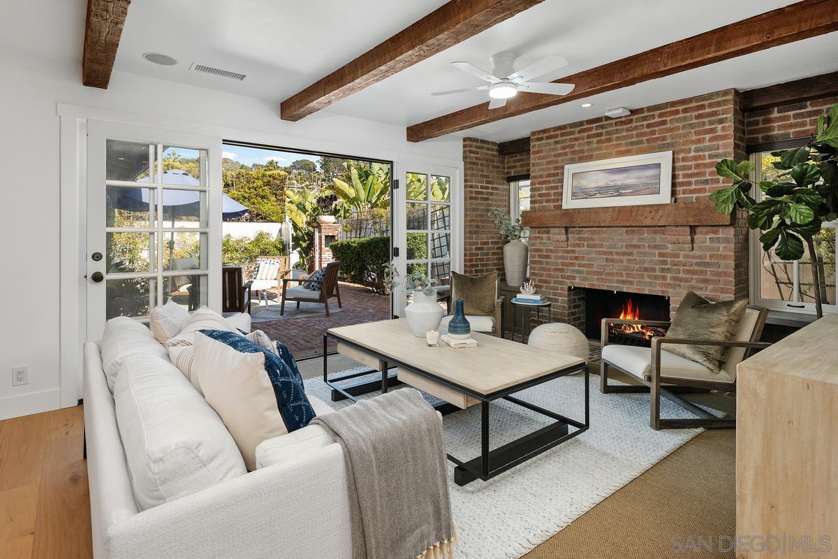 FRESH Grand Hampton's Style Living within 50 steps of the DEL MAR SAND! 1820 Coast Blvd, Del Mar. A generous courtyard entry and a charming Dutch-door front entrance door invite you into this timeless abode. This property features Owned SOLAR panels and seamless indoor/outdoor living spaces complete with outdoor fireplace, TV and outdoor shower with private gate to Ocean Front street. The home boasts high-end finishes including French Oak wood floors, built-in wet bar area and lounge, dual brick fireplaces and leave the doors open and let the sunshine in carefree beach living. The chef's kitchen is equipped with Viking appliances, custom cabinetry, and a walk-in pantry. The upstairs loft, with built-in beds and storage, provides peek ocean views and additional living space. The primary suite features a large walk-in closet and a luxurious marble bath with a tub and separate Steam Mist shower. Outdoors, enjoy a beautifully landscaped backyard with an outdoor fireplace and shower, plus gate access to the beach. Quick access to the beach, along with a short walk to Del Mar Village, offers top dining, shopping, and entertainment options including Powerhouse Park, minutes from the Del Mar Racetrack and Torrey Pines Golf Course.Interested in this Listing?
