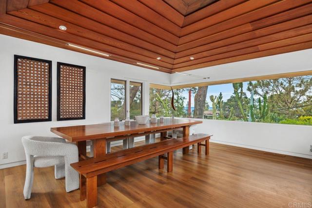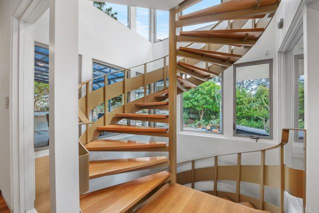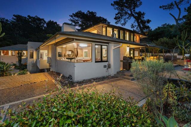 Panoramic ocean view with a Guest House!! An architectural masterpiece designed by the renowned Mid-Century Modern visionary John Lloyd Wright, this extraordinary estate epitomizes coastal elegance and sophisticated living. Nestled atop one of the most expansive and prestigious parcels in Olde Del Mar, this remarkable residence offers breathtaking panoramic ocean vistas stretching from the pristine shores of Del Mar Beaches to the iconic cliffs of La Jolla. Spanning 4,243 square feet, the main house is a testament to Wright s genius, boasting his signature ceiling designs, an awe-inspiring spiral staircase that flows effortlessly through the home, and an original stained-glass entrance feature that sets the tone for refined luxury. The expansive basement adds to the grandeur, complementing the four-bedroom, four-bathroom layout. The primary suite, located on the main level, exudes tranquility, while an additional family room on the upper floor provides an ideal retreat. Thoughtfully designed with accessibility in mind, a wheelchair-friendly pathway leads seamlessly from the driveway to the second-floor bedroom. Enhancing the estate s allure is a detached guest house, a private sanctuary estimated at 850 square feet, featuring its own gas and electric meters for independent utility management. With a master suite, full kitchen, and a family room centered around an elegant fireplace, this guest home offers absolute comfort. A secluded meditation garden completes this serene haven, inviting moments of reflection amid lush surroundings. This architectural jewel has been celebrated in multiple publications as a true masterpiece of John Lloyd Wright s design legacy. Enveloped by meticulously manicured landscaping, vibrant fruit trees, and the soothing melodies of coastal wildlife, this home offers an unparalleled lifestyle in one of California s most coveted neighborhoods. With owned and fully paid-off solar panels, award-winning schools, and an ambiance of exclusivity, this estate presents a rare opportunity to own a piece of historical luxury a retreat where the symphony of the ocean waves becomes the soundtrack to everyday life.Interested in this Listing?