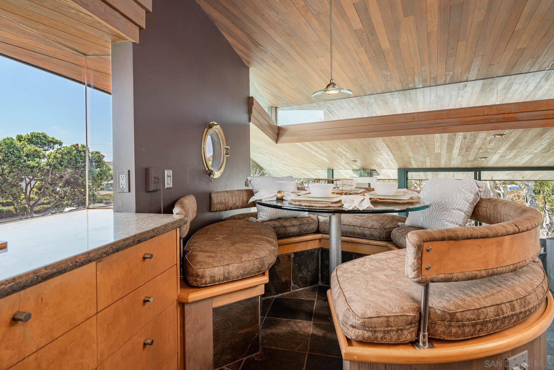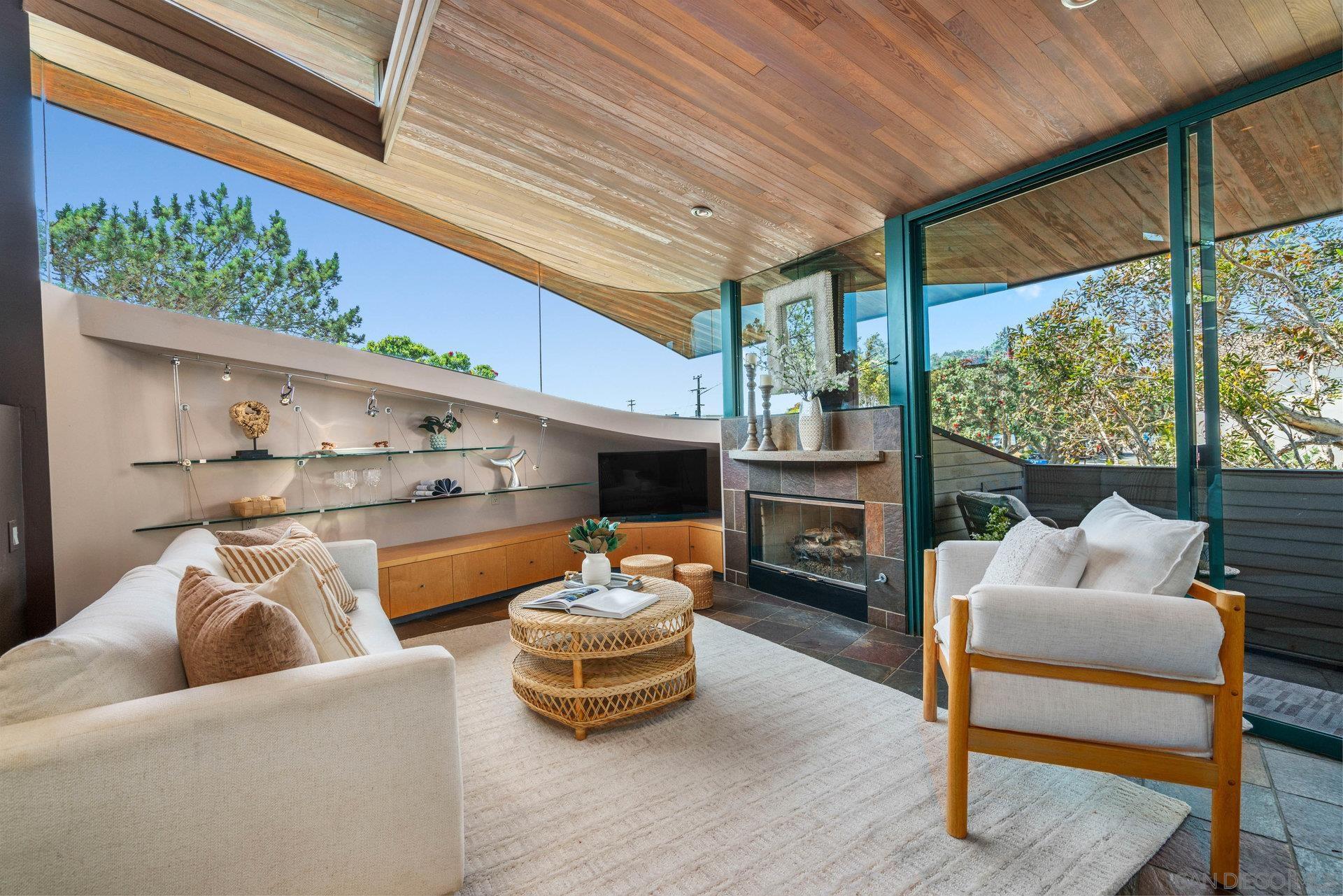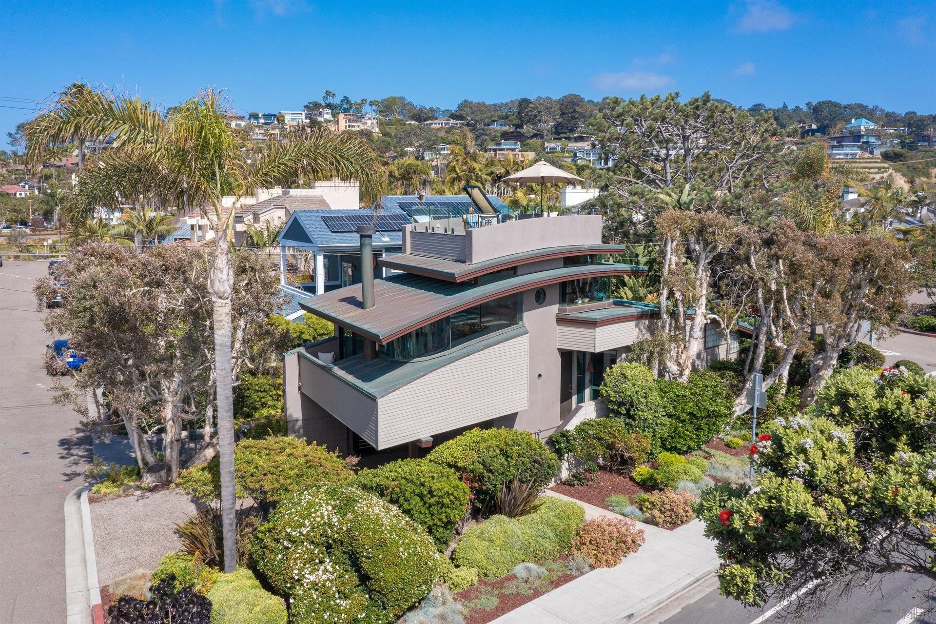 First time ever on the market! Presenting the Iconic Del Mar "Boat House", experience seaside living just steps away! Coastal living in this architectural gem, nestled in Del Mar's coveted Beach Colony. Designed by renowned architect Lew Dominy, this contemporary 1BR/2BA home maximizes its 1,200 sq ft triangular lot and 806 sq ft interior, inspired by cruise ship efficiency. The upper-level kitchen offers unobstructed white-water ocean views, while wraparound windows flood the living area with natural light. Features include built-in bed and cabinetry, slate flooring, and a sunken slate tub. Porthole windows enhance the nautical theme. Elevated 4 above street level for added privacy, the exterior boasts a durable copper roof, fir eaves, and redwood siding. The rooftop deck provides panoramic views from the Del Mar Fairgrounds up the valley to the mountains and the Pacific Ocean. A rare opportunity to own a piece of Del Mar's architectural history! Invite your family and friends to relax and take in the refreshing ocean breezes and breathtaking ocean views!!!Interested in this Listing?