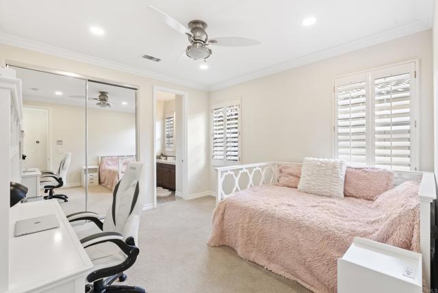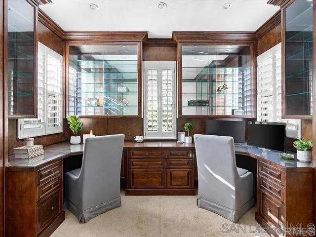 Tucked inside one of Del Mar s few gated communities, this stunning 6-bedroom, 4.5-bath home offers over 4,500 square feet of beautifully curated living space in Santa Fe Downs. From the moment you walk in, you re greeted by soaring ceilings and an open floor plan that flows effortlessly from the living and dining areas to the heart of the home a chef s kitchen with top-of-the-line appliances, custom cabinetry, and a massive island made for gathering. The primary suite feels like a private retreat, complete with its own office, dual walk-in closets, spa-like bath, and a peaceful deck perfect for morning coffee or winding down at the end of the day. Downstairs, a guest suite offers ideal flexibility for multigenerational living or visiting friends and family. Additional highlights include a dedicated office with custom built-ins, a detached gym, an upstairs loft with a tucked-away work nook, and second-floor laundry for everyday ease. Owned solar and a Tesla universal charger for all EVs mean impressively low electricity bills and future-proof convenience. Out back, the oversized patio, turf lawn, lush landscaping, and oversized jacuzzi make this yard an entertainer s dream. All just minutes from the beach, Del Mar Racetrack, polo fields, top schools, shopping, and dining. Luxury, privacy, and the ultimate coastal lifestyle all wrapped into one incredible home.Interested in this Listing?