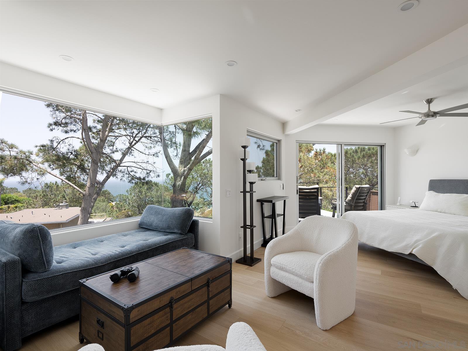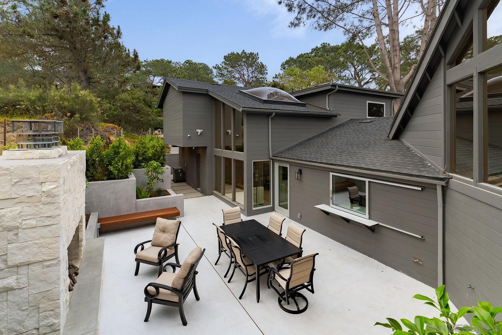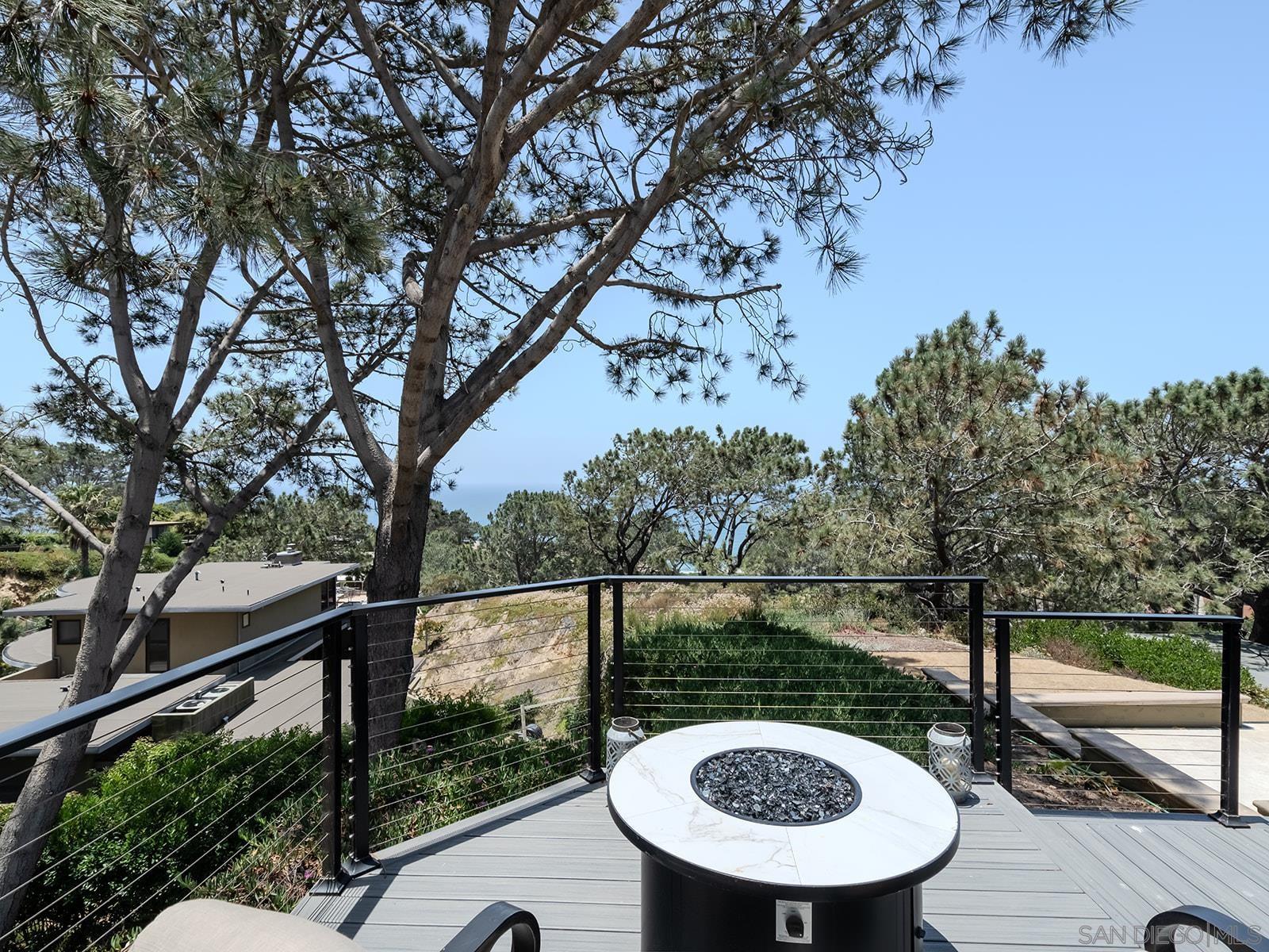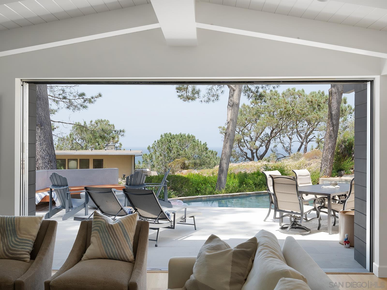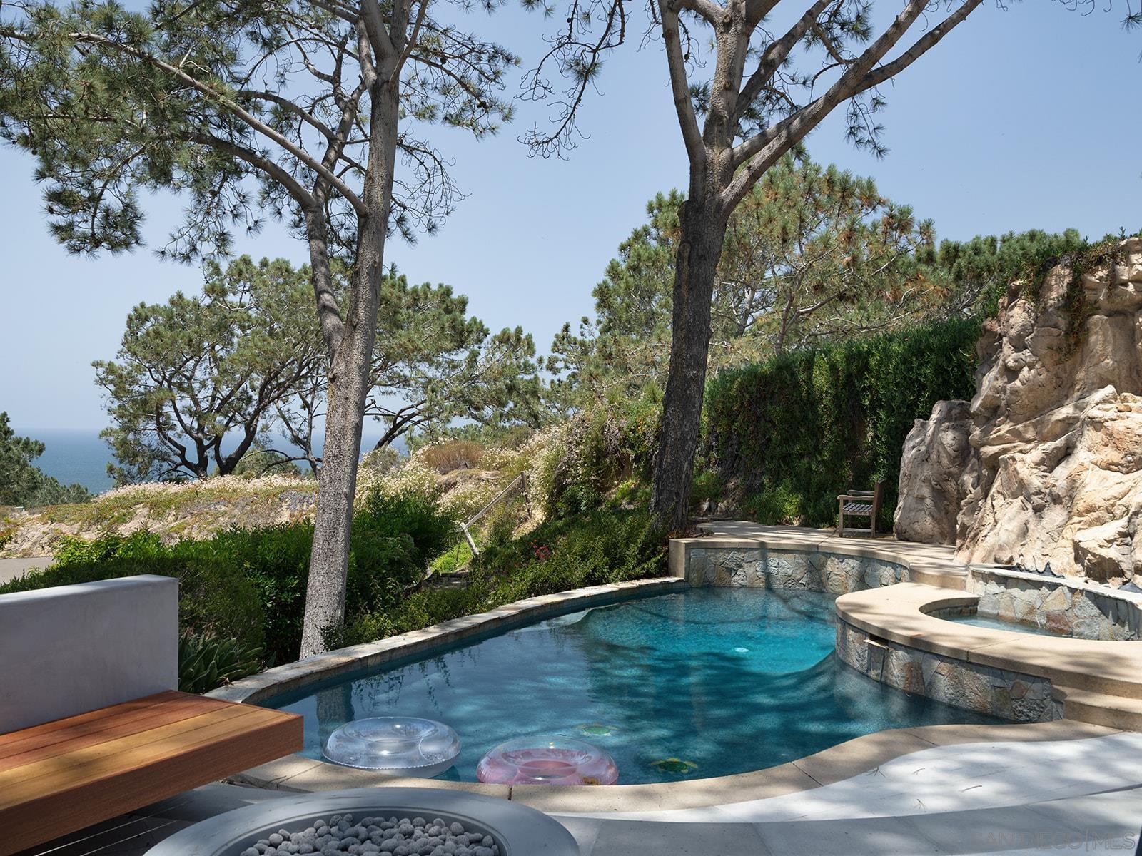 Enjoy the one-of-a-kind ocean and sunset views from this coastal retreat set among the bluffs and trees of Del Mar. This unparalleled 14,400 sf property will have you and your guests awe-inspired by the natural beauty of this location. Lodged into the sandstone bluffs and nestled below the towering Torrey Pines, this home has been completely reimagined to embrace the sweeping ocean views from every room in the house. Designed with modern sensibilities and indoor-outdoor living in mind, the home features an open floor plan with large skylights, flooding the interior living space with natural light. The multi-slide pocket door disappears to seamlessly open the interior to the west facing deck and salt water pool. Spend time with your family and friends sitting by the new fire pit or soaking in the spa while the rock waterfall runs down and the sun sets in the distance. Finish the evening in the courtyard tucked into the bluff and enjoy the warmth of the gas fireplace. Wake up every morning to the sound of crashing waves and white water views from the privacy of the primary suite perched atop the bluff. Take your own private elevator to the primary suite and relax in the spa-like bathroom with a soaking tub and large shower. Down the hall is a large walk-in closet with a coffee bar. Sip an early morning espresso from the primary suite deck with its own gas fire pit. This peaceful, private retreat is truly special.Interested in this Listing?