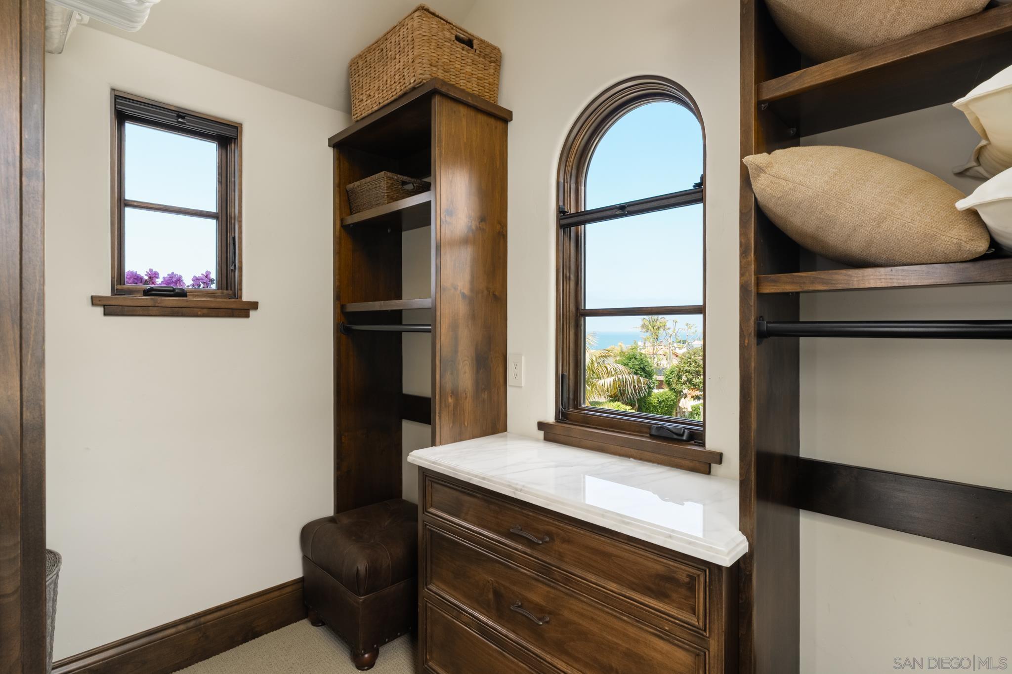 With sweeping ocean views that stretch beyond La Jolla, this elegant tri-level villa offers 3 bedrooms, 3.5 bathrooms, and a converted one-car garage transformed into a cozy, heated flex space ideal for a home office or guest room, complete with a fold-out Murphy bed. Step through ultra-private, gated stone and stucco entrances into a warm Tuscan-inspired retreat. The interior is rich with character, featuring handcrafted tile, distressed Hickory wood floors, and exposed wood ceiling beams. The main level is an entertainer s dream, with a spacious great room that seamlessly connects the gourmet kitchen, living, family, and dining areas. Framed by custom windows and French doors, the space is constantly filled with ocean breezes, the soft sound of waves, and abundant natural light. The kitchen blends beauty with function, offering large island counters with prep sinks, bar seating, and stylish cabinetry with ample storage. Elegant touches like recessed and chandelier lighting, a custom fireplace, and a luxurious powder room complete this floor. Upstairs, the primary suite is a private sanctuary with a massive sun deck boasting panoramic views, an outdoor fireplace, and generous lounging space. The spa-like en-suite bath features a double vanity, walk-in glass shower with mosaic marble tile, a juliet balcony, and custom windows framing Pacific Ocean views. A spacious walk-in closet with built-ins and natural light completes the space. The lower level despite being partially below grade feels bright and welcoming. It includes two bedrooms, two bathrooms, a large media roomInterested in this Listing?
