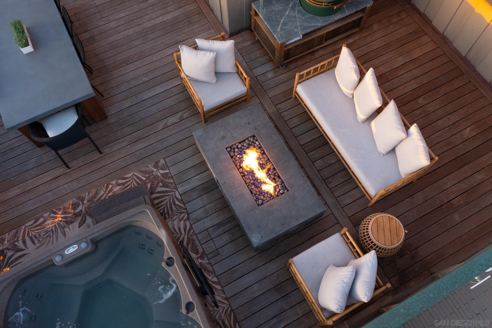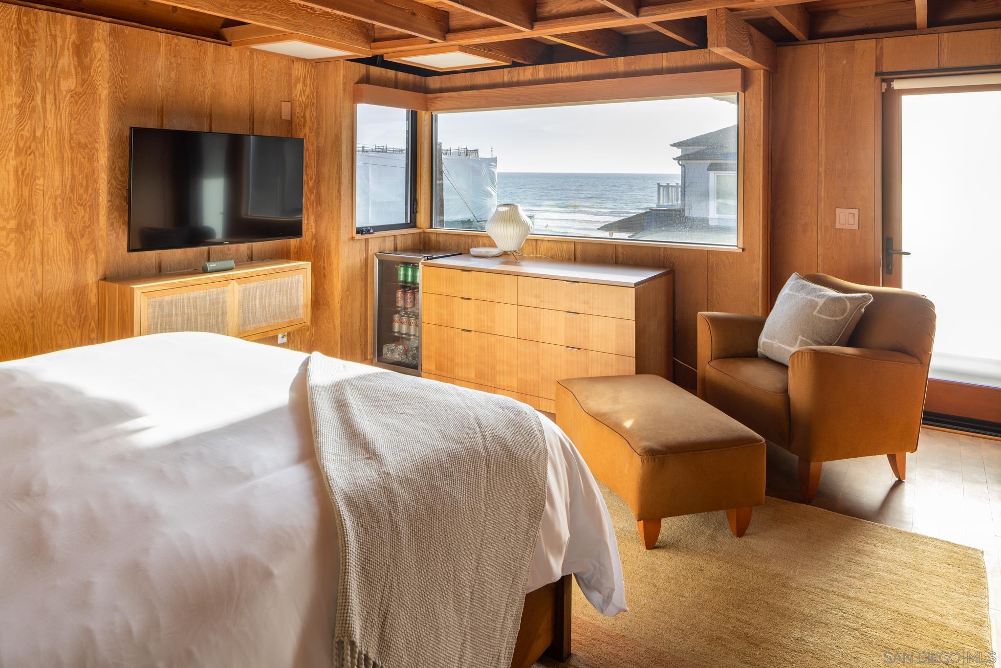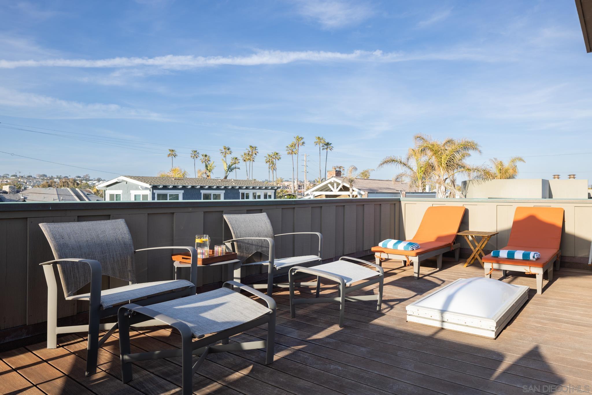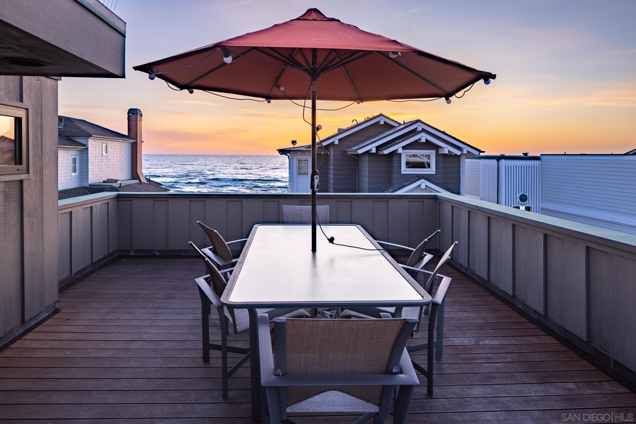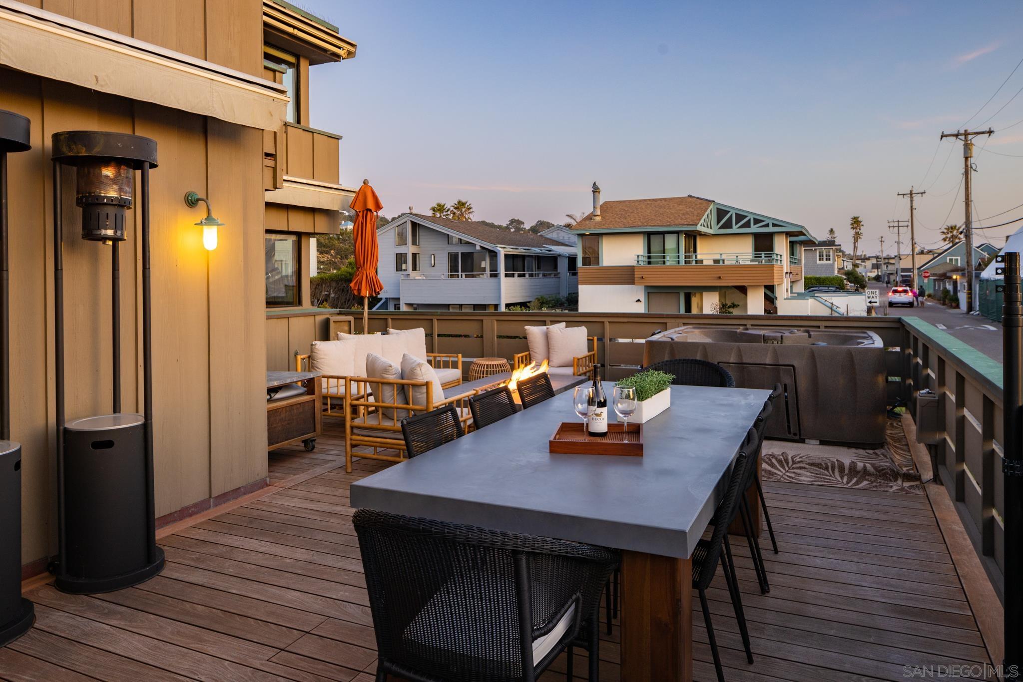 Vacation at the beach in Del Mar where the surf meets the turf. This home has 4 bedrooms plus a 5th optional bedroom. Private master retreat with white water views and an expansive roof deck. Situated on a corner lot, there are fabulous sand and white water views from most rooms. Wake up to the sound of the ocean waves in this open flowing floor plan with so many amenities, including a private rooftop deck for lounging and watching sunsets, fully stocked kitchen with high end appliances for any chef. The second level deck has incredible views and allows an indoor /outdoor flow with dining table, fire place BBQ and hot tub. There are 8 parking spots all behind electric gates, an outdoor shower after a day at the beach, a large laundry room with two full sized washers and dryers and the garage is full of bikes and surfboards. Don't wait to book and start making memories at the beach.