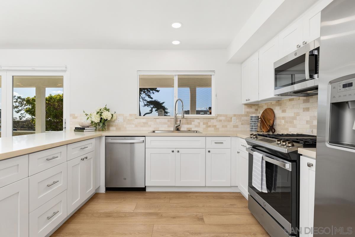 Rare, Luxury Ocean View 2-Bedroom Unit in Old Del Mar. Stunning white-water ocean views, newly renovated, and prime Old Del Mar location define these this exceptional 2-bed, 2-bath unit. Recent renovations include new stainless steel appliances, premium hard flooring, in-unit laundry, and air conditioning. This lower units, with ocean views, feature spacious front and back patios. Unit includes designated parking. Let Ocean Ave. lead you to Del Mar Village, a unique, vibrant, coastal town with casual sophistication, attracting visitors from around the world seeking pristine beaches, boutique hotels, L'Auberge, unique shops, The Plaza, and the Del Mar Farmers Market. Discover nearby Seagrove and Powerhouse Parks, just a block away, with an intimate ambiance, offering panoramic ocean views and a picturesque setting for events. Nearby dining includes restaurants, varied cuisine, such as Poseidon, Jake's Del Mar, and Adelaide Del Mar. This highly sought-after location is also home to the Del Mar Racetrack and San Diego County Fair. Make this quaint seaside village your new home.