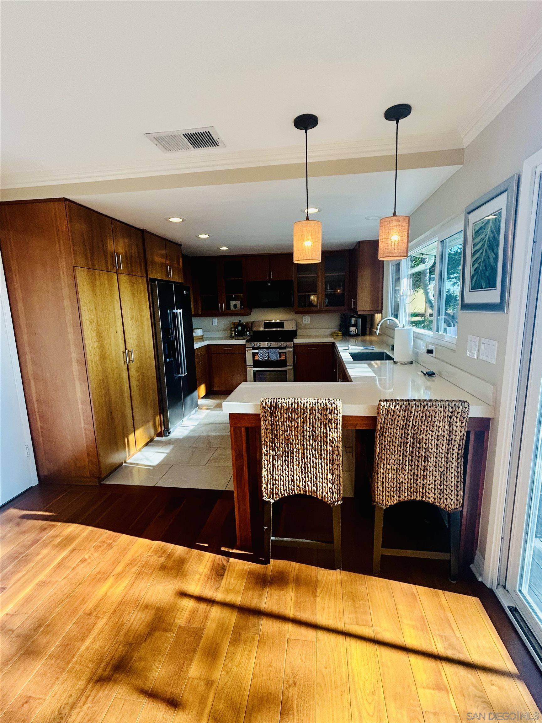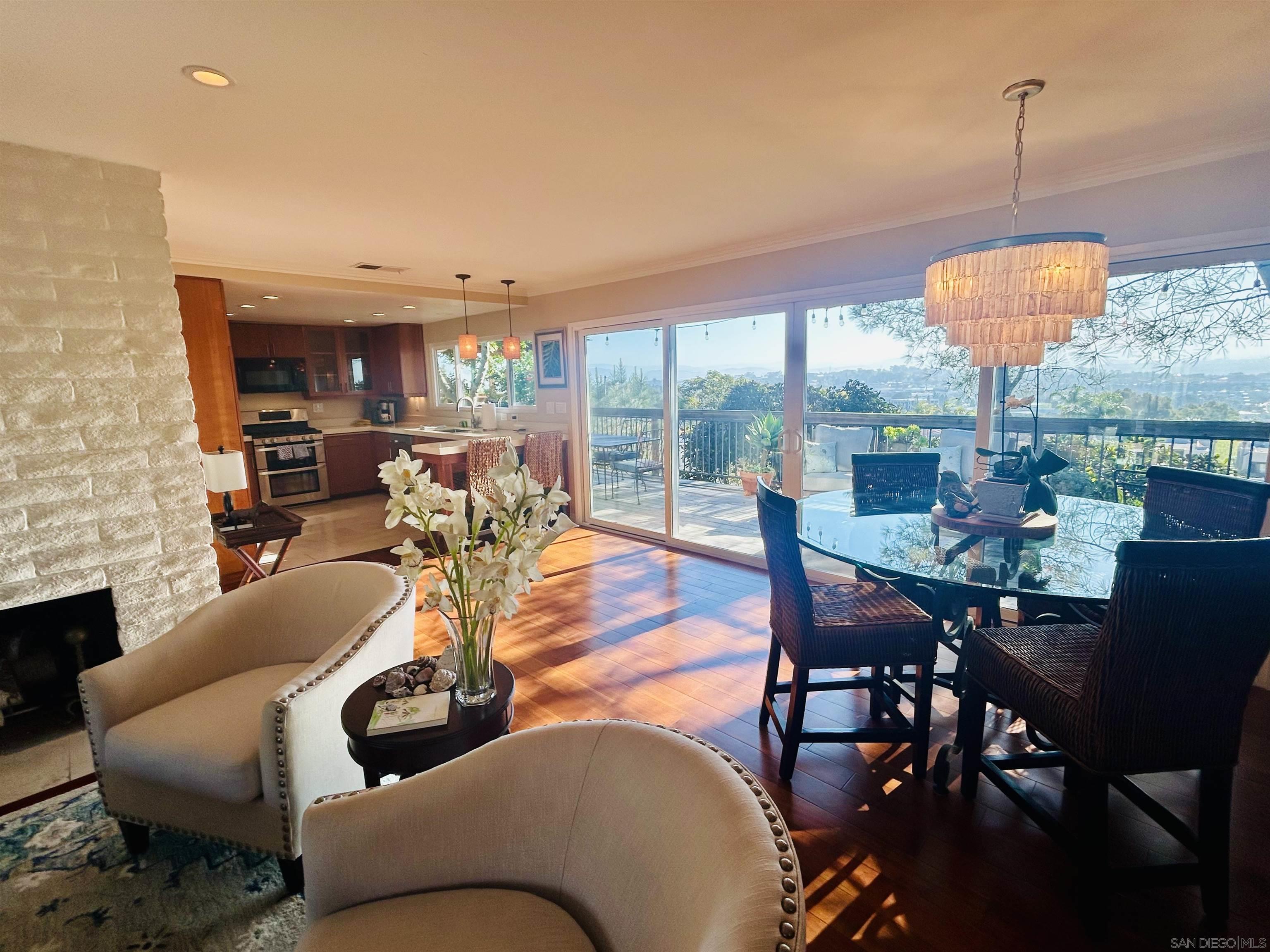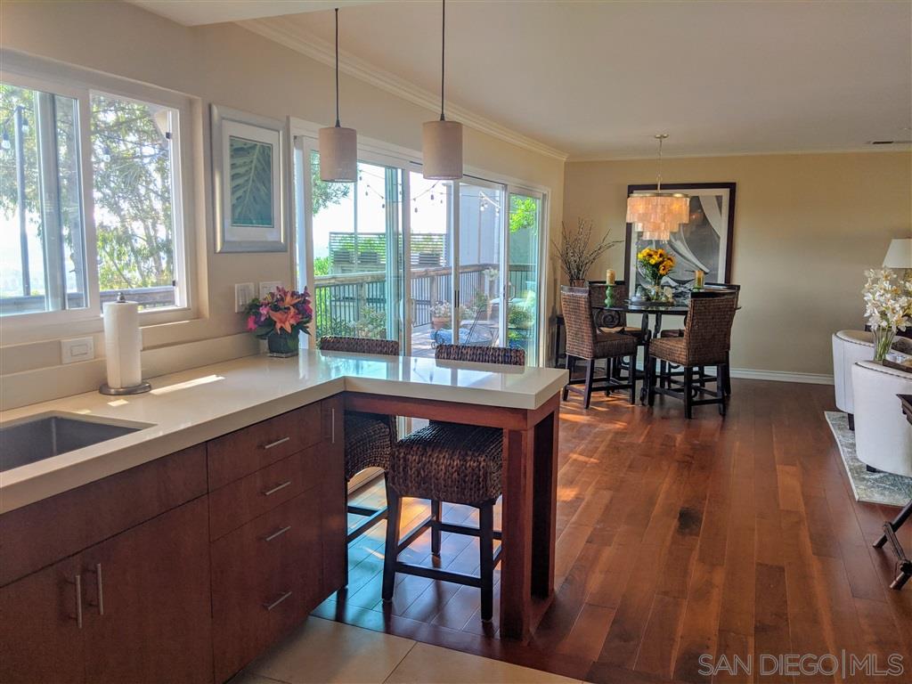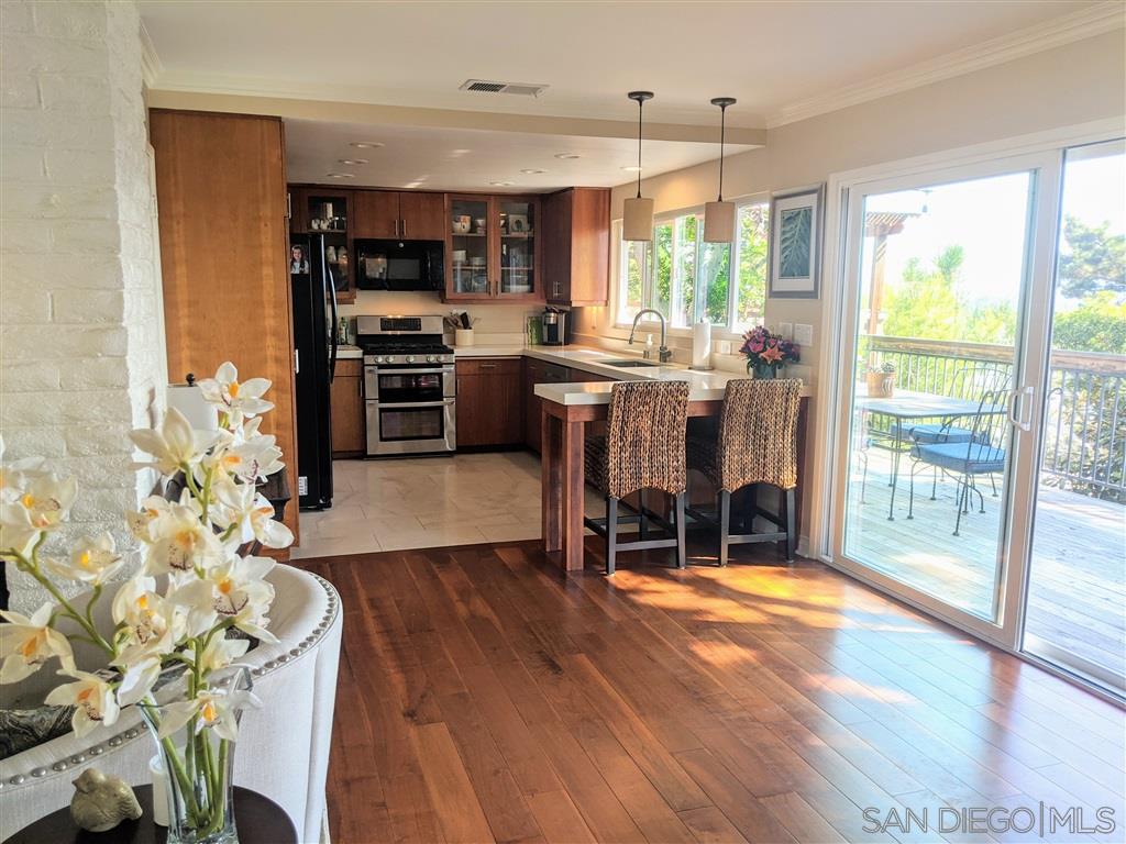 Unique Del Mar Heights cottage has never ending east views. Watch the sunrise over Black Mountain. Single level charmer with deck that spans the entire back of home. Open floor plan living/dining/kitchen all access the deck. Remodeled kitchen with cherry cabinets & quartz counters. Master opens to deck. Large bathroom has huge closet & spacious walk in shower. Guest room has a wall of closets. Laundry room has storage & counter space in over sized 1 car garage.