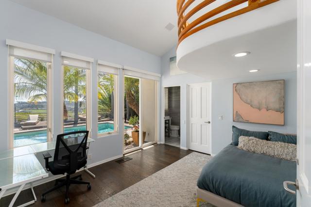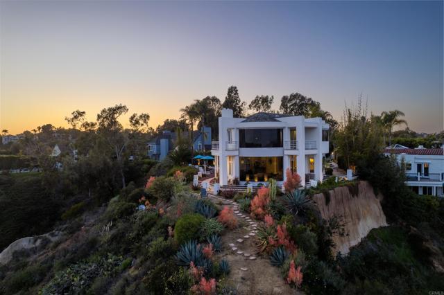 Nestled in the serene enclave of Rancho Del Mar, this iconic hilltop home is a testament to visionary architecture. Perched above expansive green fields and offering unobstructed Del Mar Horse Park views, the residence seamlessly integrates with its natural surroundings. It provides a tranquil retreat with breathtaking vistas from the living area, primary bedroom, and outdoor lounging areas. The home features four bedrooms, two of which are located on the main living floor. The open-concept living space flows effortlessly into the outdoor entertaining areas, where a pool plus hot tub and a fully equipped BBQ station await, perfect for hosting gatherings or enjoying quiet evenings under the stars. Ensuring privacy and convenience, the property is secured by its own private gate and offers ample driveway parking along with two dedicated garage spaces. The residence comes fully furnished and thoughtfully curated to complement its unique architectural style, allowing for an immediate and seamless move-in experience. Beyond its architectural allure, the home boasts a prime location with proximity to several local attractions. Only a short walk from the "Market Restaurant," one of North County's most popular dining spots! The Flower Hill Promenade is just minutes away, a vibrant shopping and dining destination featuring a mix of local boutiques, global brands, and eateries like Flower Child. The charming Rancho Santa Fe Village offers a quaint setting with shops, restaurants, and the historic Inn at Rancho Santa Fe. The Del Mar Village and its picturesque beaches are nearby, providing opportunities for seaside dining, boutique shopping, and coastal relaxation.Interested in this Listing?