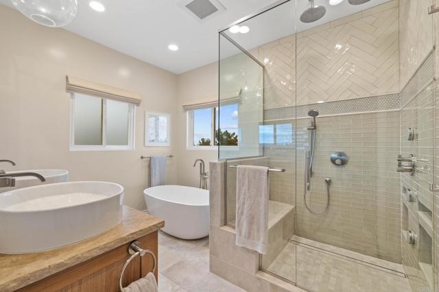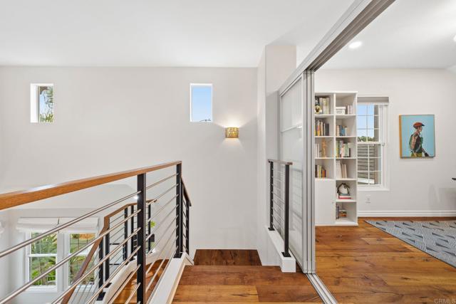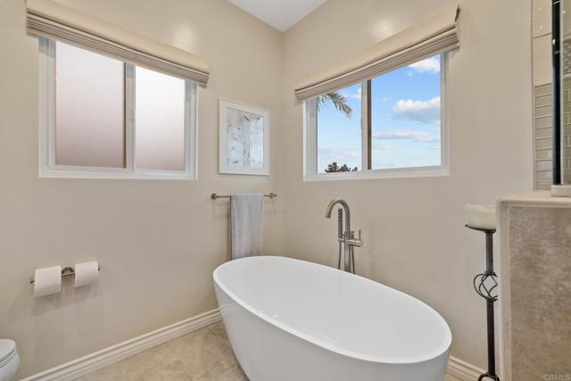 Beautifully upgraded 3-bedroom, 2.5-bath home located in the desirable Cambria Community of Encinitas. Situated on one of the largest lots in the neighborhood this home is nestled in a cul-de-sac and adjacent to the Cantebria-Gardena Trail that provides access to Encinitas Ranch and the Botanic Gardens.The interior has been extensively renovated with high-end finishes, including engineered hardwood flooring, modern custom stair rails, remodeled bathrooms and bedrooms, and vinyl double-pane windows. The kitchen and living areas flow seamlessly into a spacious backyard featuring a heated pool, jacuzzi, built-in BBQ, beverage fridge, filtered water dispenser, kegerator, and a custom gas fire dining table. Additional upgrades include: Pool equipment replaced, new garage doors and openers, Tesla EV charger, new side fence, closet organizers and ceiling fans in all bedrooms, owned PV solar, oversized driveway with space for up to 6 vehicles. Conveniently located near popular shopping, and dining: 0.8 miles to The Forum Carlsbad 1 mile to Town Center Place (grocery, retail, restaurants) 1.2 miles to major home improvement store 1.6 miles to Encinitas Ranch Golf Course 2.1 miles to San Diego Botanic GardenInterested in this Listing?