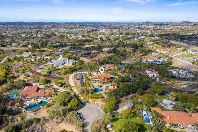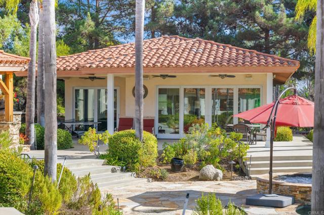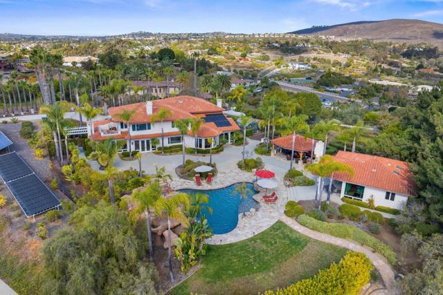 Welcome to your dream home in the prestigious gated community of Copper Creek Estates. This stunning Olivenhain estate spans over 2 private acres, offering breathtaking panoramic views and unparalleled serenity. The meticulously designed main residence features up to 6 bedrooms, 4.5 baths encompassing 5,356 sq. ft. of luxurious living space. Along with a separate 750 sq. ft. 1-bedroom, 1-bath casita with a full kitchen completes the estate, bringing the total to an impressive 6,106 sq. ft. of refined elegance. Step into the ultimate entertainer s paradise, boasting a magnificent backyard with a custom pool featuring a cave and cascading waterfalls. Relax under the covered outdoor pavilion equipped with a built-in BBQ, TV, and fireplace, perfect for gatherings year-round. Stroll through your private gardens, tend to plants in your greenhouse and vegetable grow boxes, and enjoy the convenience of a 4-car garage with a Tesla battery wall and charger, plus ample RV/boat parking. With owned solar, this home is as efficient as it is spectacular. This is more than a home it s a sanctuary, where luxury, beauty, and functionality converge. Come and experience the lifestyle you ve always dreamed of.Interested in this Listing?