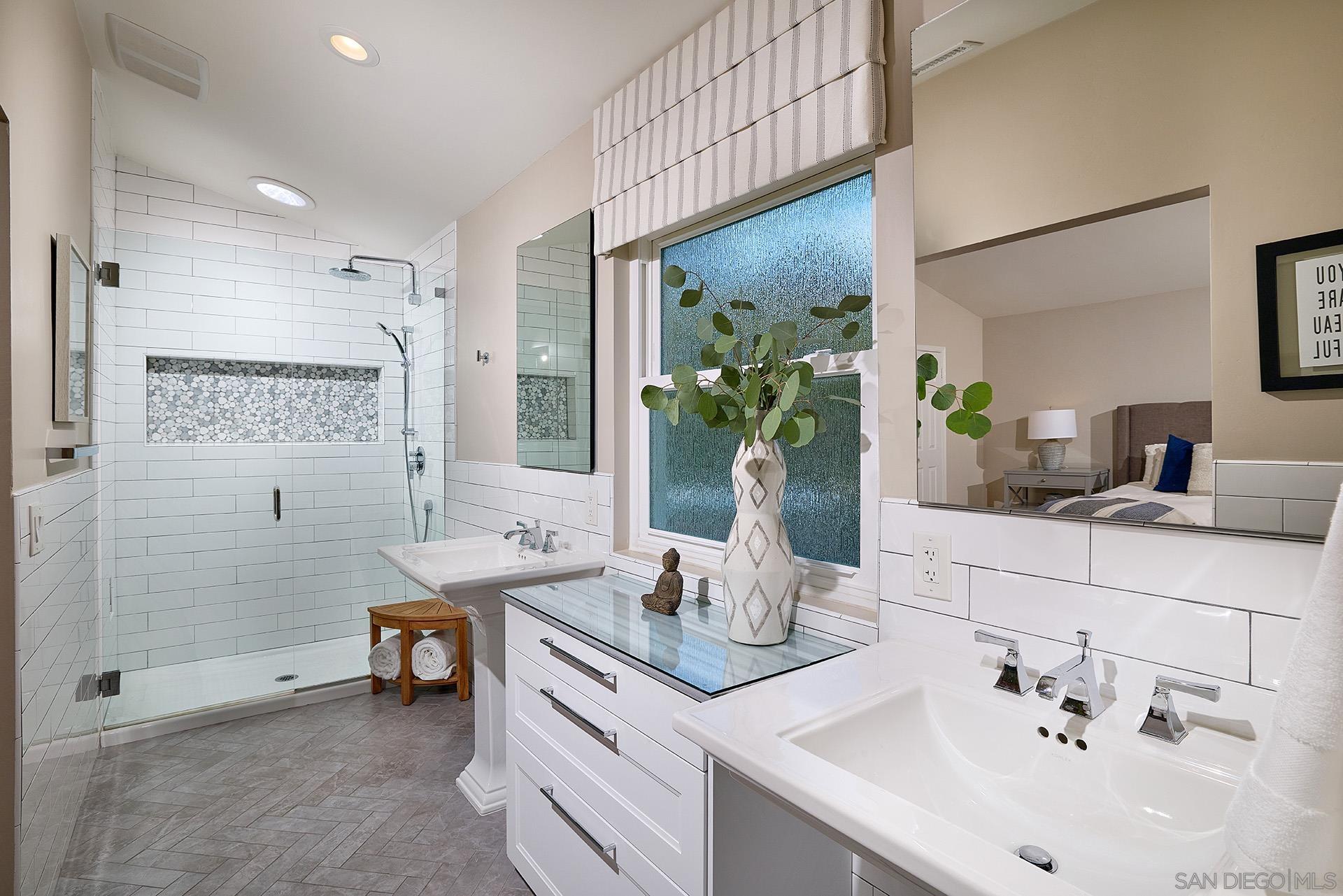 The vibe: Secret Garden. Uncover a parklike backyard on over a third of an acre at this peaceful 3BR, 3BA retreat w/ fresh, modern ambiance. Neatly tucked onto a cul-de-sac, the house is updated w/European white oak floors & Quartzite countertops. The serene landscape punctuates interiors w/greenery & light while the floor plan opens onto a patio & fireplace. Kick back. Entertain. Upstairs, the primary suite has a cedar walk-in closet. Easy access to beaches, Leucadia, Fox Point & hiking trails.Interested in this Listing?