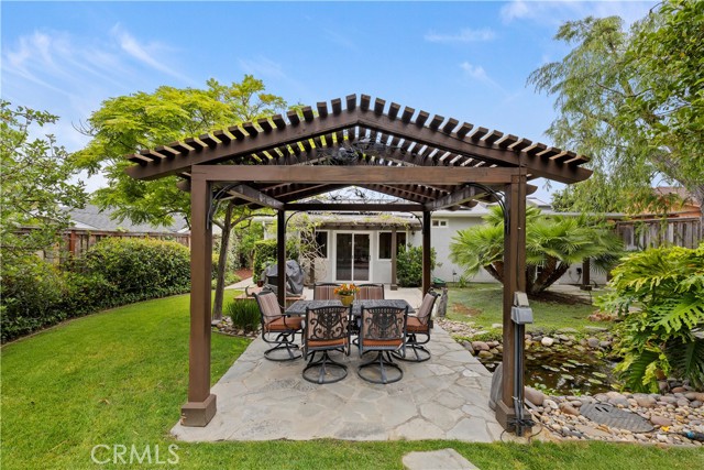 Welcome to this lovely 4 bedroom 2 bath, beautifully updated single-story, With paid solar and dual pane windows. Ideally located just minutes from the beach on an expansive, lushly landscaped lot. This serene property blends refined interior details with a truly spectacular outdoor living experience. Inside, the home features rich hardwood floors and elegant crown molding throughout. The updated kitchen is a standout, offering cherry wood cabinetry, under-cabinet lighting, and custom paint that ties the space together with style and warmth. The spacious family room boasts custom built-ins, perfect for both everyday living and entertaining. The primary suite is a true retreat with a walk-in closet and private slider that opens to the backyard patio. Step outside to a tranquil paradise, complete with mature landscaping, fruit trees, and a peaceful koi pond with a waterfall and stream. A charming pergola-covered patio offers the perfect space for al fresco dining or relaxing in the shade, while enjoying the sounds of nature. Whether you re hosting guests or savoring quiet mornings, this backyard oasis is your private sanctuary. With its single-story layout, timeless upgrades, and unbeatable location near the coast, this home offers the perfect blend of luxury and laid-back California living.Interested in this Listing?