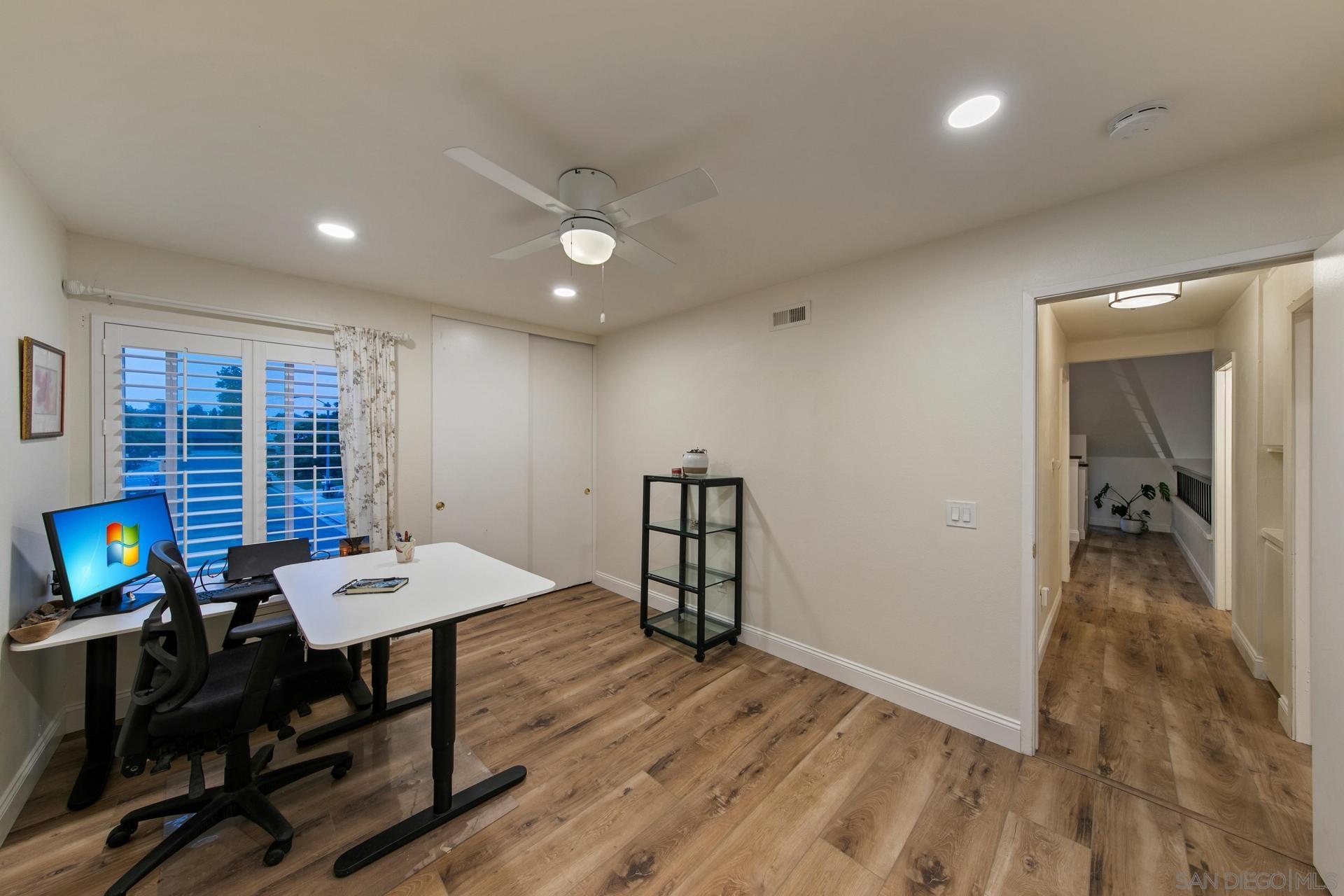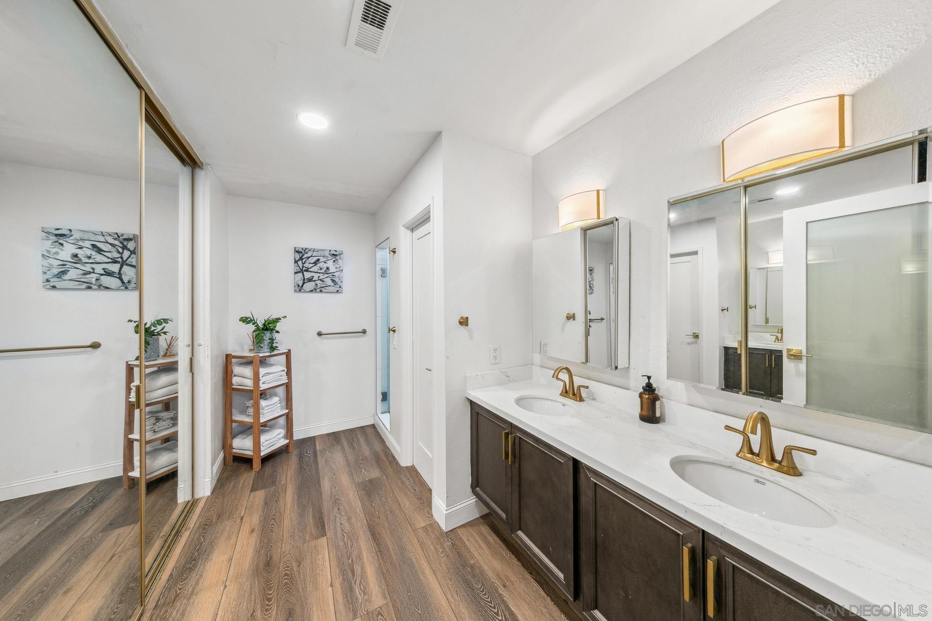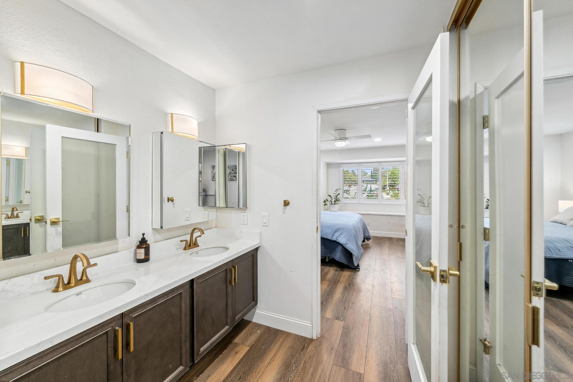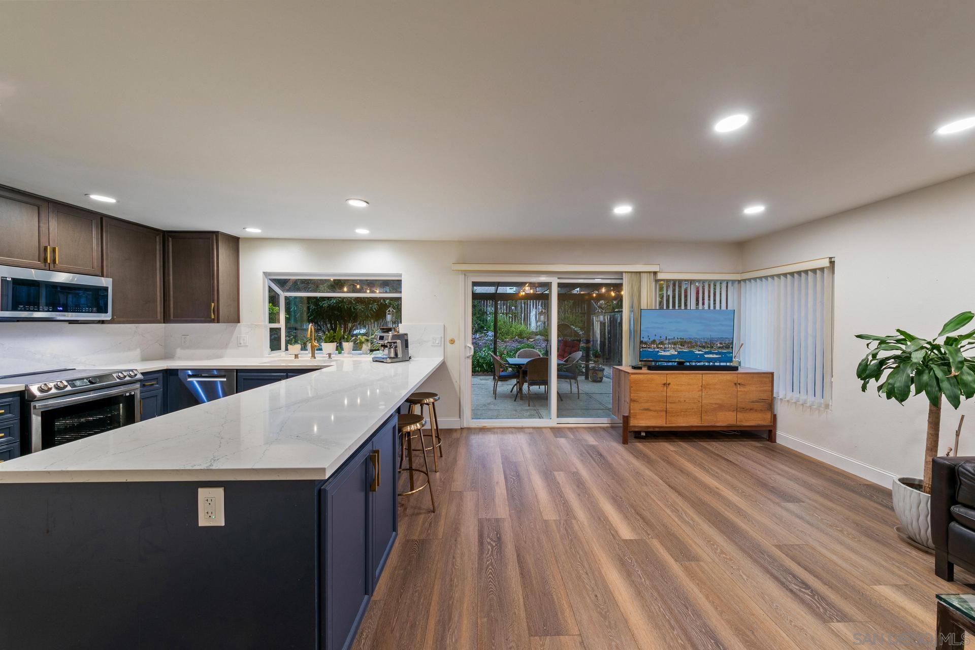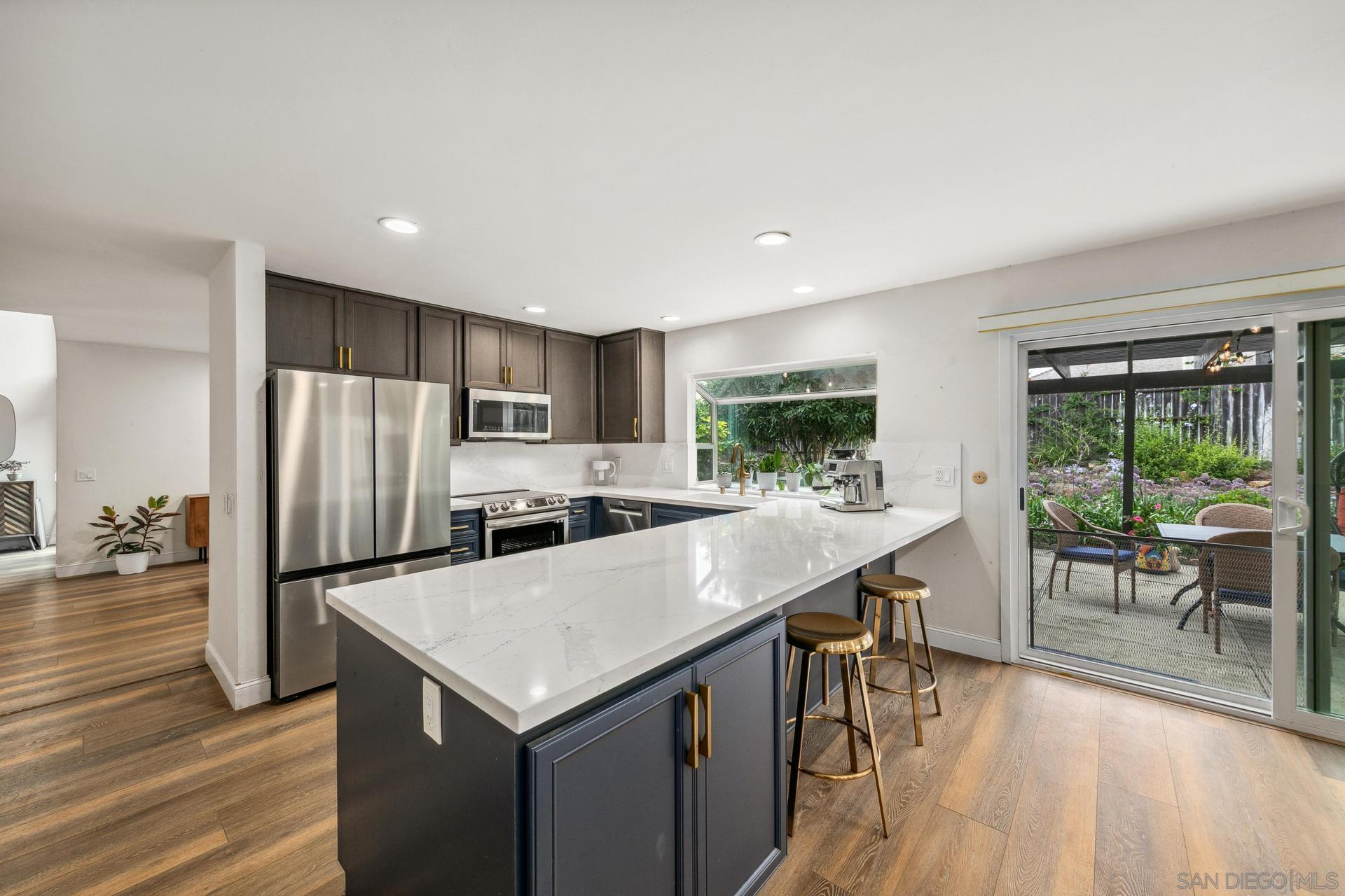 Ideally positioned in the heart of Encinitas, this impeccably updated 4-bedroom, 2.5-bath residence on a 7300 sq. ft. lot offers a harmonious blend of coastal elegance and contemporary comfort. Upon entry, soaring cathedral ceilings and expansive dual-pane windows bathe the interior in natural light, creating a warm and airy ambiance. The grand living room, centered around a gas fireplace, flows gracefully into an inviting formal dining area perfect for both intimate dinners and festive gatherings. The reimagined chef s kitchen showcases quartz countertops, custom cabinetry, refined fixtures, a breakfast bar, and recessed lighting, all seamlessly connected to a spacious family room and inviting outdoor living spaces. The first-floor primary suite is a serene sanctuary featuring vaulted ceilings and a spa-caliber ensuite with dual vanities and a custom-tiled walk-in shower. The tranquil backyard is designed for effortless outdoor living, with drought-tolerant landscaping, elegant hardscaping, and two covered trellis patios ideal for alfresco dining or quiet evening relaxation. Upstairs, three generously sized bedrooms and beautifully appointed bathrooms complement the home s versatile layout. Enhanced with thoughtful upgrades including luxury vinyl plank flooring, New Roof, energy-efficient windows and sliders, plantation shutters and ceiling fans throughout this home exemplifies turnkey refinement.Interested in this Listing?