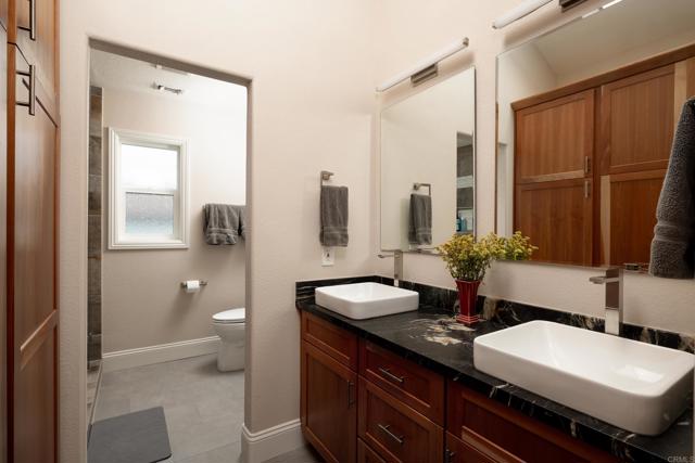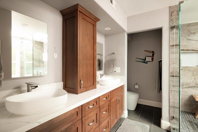 Meticulously designed residence, 1641 Tucker Lane is the culmination of years of craftsmanship. A picturesque gated front garden welcomes you home through a custom front door entry with custom waterfall feature that opens to soaring ceilings and an open- concept floorplan with two ensuite bedrooms and an office downstairs, and two bedrooms and everyday room (living & game room) w/ fireplace upstairs, providing unrivaled utility and flexibility. Bathed in natural light, the redesigned gourmet kitchen features custom shaker wood cabinetry, Patagonia slab stone countertops, premium stainless steel appliances (including a 2022 LG ThinQ refrigerator, Bosch dishwasher and gas range with hood). Expanded kitchen includes prep-sink, additional pantry storage and breakfast dining nook. Contemporary design elements throughout. Downstairs primary suite boasts a luxurious bathroom with a Signature Hardware Sheba air bubble tub, Hollyn vessel sink faucets, Quartz Carrera countertops, and a stunning shower with Bellmeade Greige polished porcelain and Black Hex slate mosaic. Additional bathrooms feature high-end finishes like James Martin and Becker teak vanities, Kohler toilets, and modern fixtures. Enjoy spacious rear yard with carefully manicured garden & koi pond water feature, perfect for outdoor living, plus washer/dryer upstairs & downstairs for convenience. Walkable to Encinitas Village Square shopping, local schools, and parks, this home combines coastal charm with modern elegance a true contemporary masterpieceInterested in this Listing?