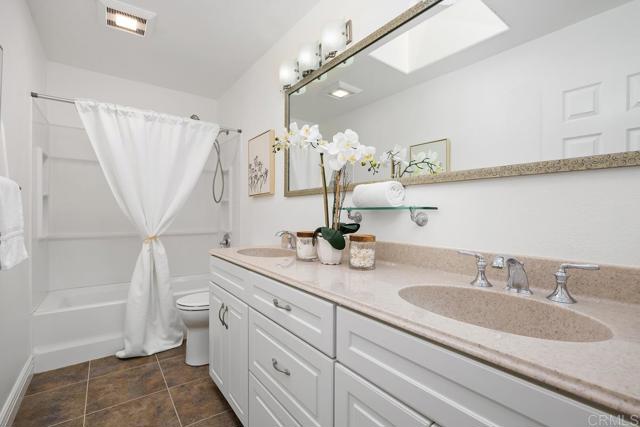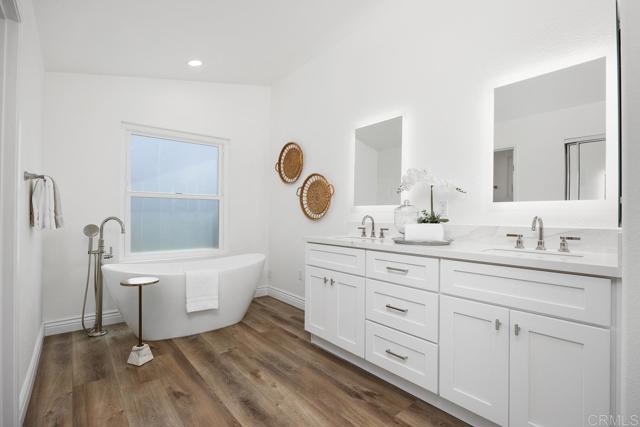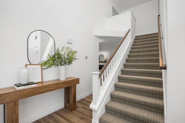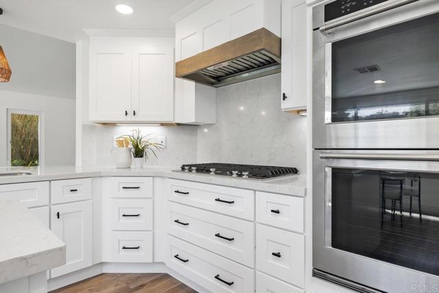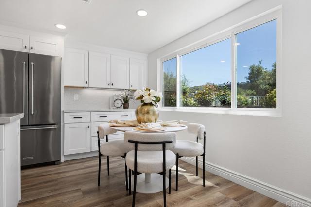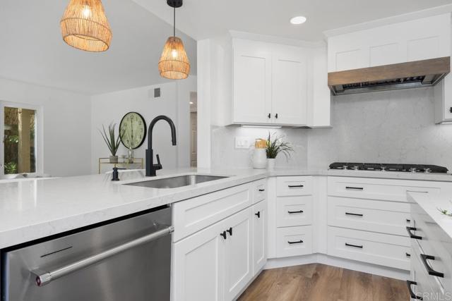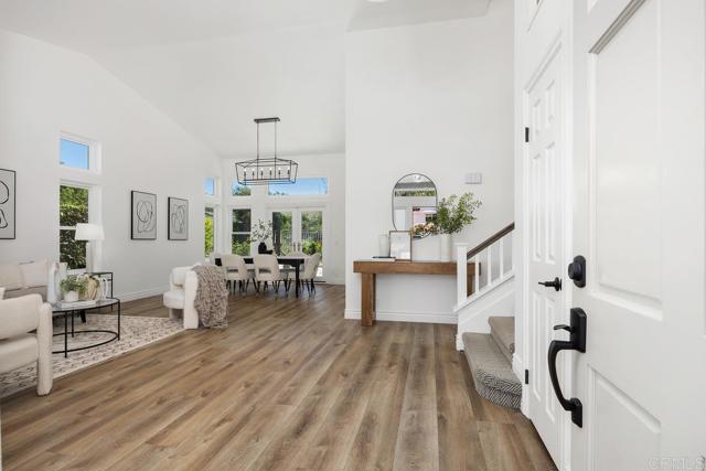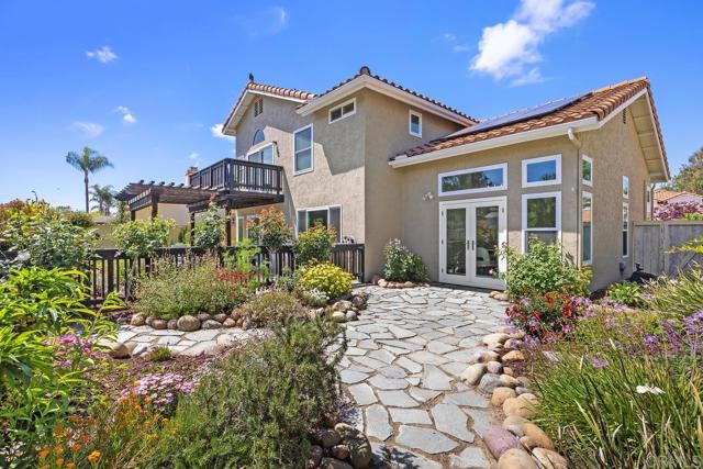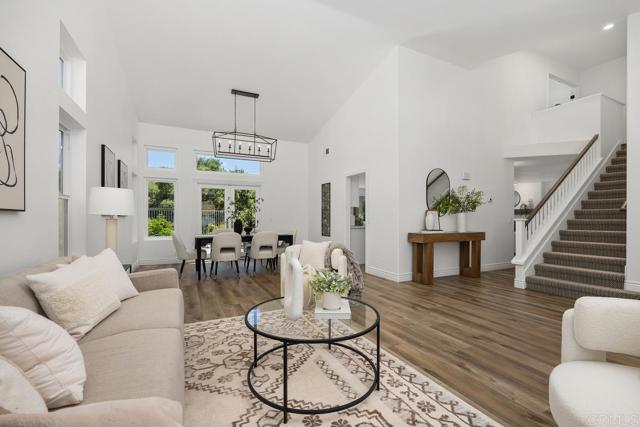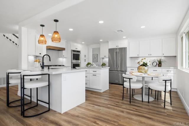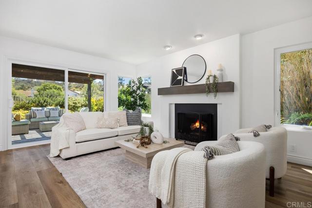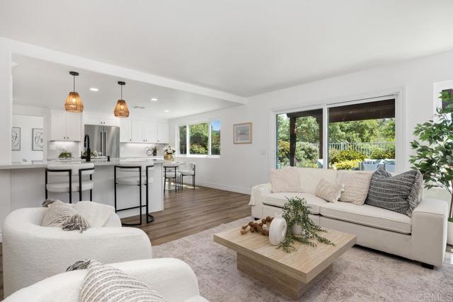 Renovated and redesigned coastal living awaits in this beautifully updated 4-bedroom, 3-bath home featuring high-end finishes throughout, located on a quiet cul-de-sac street in highly sought-after Encinitas. Transformed by a professional interior designer, this light and bright home features vaulted ceilings, Milgard UV-blocking double-pane windows, luxury vinyl plank flooring in the main living areas, bedrooms, and primary bathroom, and designer carpet on the stairs. The remodeled kitchen showcases Silestone countertops, white shaker cabinets with under-cabinet lighting, stainless steel appliances, double convection ovens, a five-burner gas stove, pull-out drawers, a pantry, and a breakfast nook that opens seamlessly to the family room with a stylish gas-log fireplace. From here, sliding doors lead to the covered patio perfect for outdoor living and entertaining. French glass doors off the living room and adjoining dining area open to the peaceful south-facing backyard with lush landscaping, and backs to open space with no neighbors behind for added privacy. The spacious primary suite includes two mirrored closets, a private balcony with sunset views and a spa-like bathroom featuring dual vanities, porcelain countertops, a deep soaking tub, a separate walk-in porcelain shower, and custom finishes throughout. Additional highlights include designer doors and hardware, owned solar, newer AC, furnace, water heater, a Halo water conditioning and filtration system, a three-car garage, and an interior renovation completed throughout most of the home in 2022 2023. Enjoy proximity to award-winning schools, a local neighborhood park, beaches, shopping, and dining just minutes away offering the ideal blend of comfort, quality, and location.Interested in this Listing?