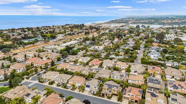 Welcome to 196 Coral Cove Way, a beautiful single-family home nestled in the desirable, relaxing coastal community of Leucadia. This spacious residence offers 2,843 square feet of luxurious living space, thoughtfully designed to provide comfort and style. Three generously sized bedrooms, four bathrooms, and a downstairs den that can be used as an extra bedroom. Perfect for those seeking ample space and modern amenities. This home blends contemporary architecture with functional elegance. The open-concept layout creates a seamless flow between the living, dining, and kitchen area, making it an ideal space for entertaining. LaCantina doors open up, creating a seamless indoor outdoor living experience in a beautiful landscaped private backyard. The kitchen boasts an oversized quartzite island with seating, high-end appliances, pantry, and ample counter space. Spacious dining area that flows into the family living area. Large primary suite and bathroom with dual vanities and spacious walk in closet. Enjoy the comforts of air-condition and heating system, efficient dual pane windows, tankless water heater, whole house water filtration, and upstairs laundry room. Solar subscription may be transferred to Buyer. Walkable to beaches, restaurants, coffee shops, and local shopping on the historic Highway 101 with convenient access to the freeway.Interested in this Listing?