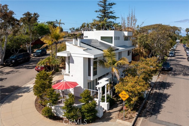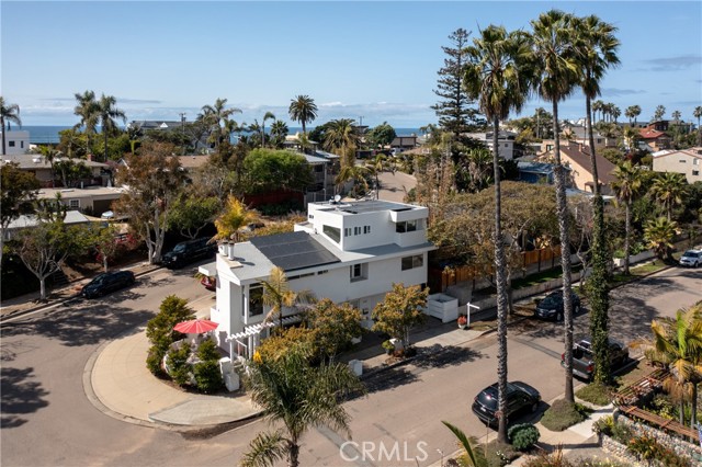Step into a living work of art at this whimsical triangular beach house, where bold architecture meets creative flair. This unique home is a celebration of form and function, featuring dramatic angles, sun-drenched interiors, and vibrant, custom finishes throughout. Eco-friendly touches-like solar panels ensure this artistic masterpiece is as sustainable as it is stylish. The open-concept living space is flooded with natural light from expansive windows and vaulted ceiling, letting in that ocean breeze, blurring the line between indoors and out. The kitchen dazzles with high end appliances and birch burl cabinetry made from a single tree. Upstairs, the airy loft like primary bedroom feels like a private sanctuary, with dual private terraces offering stunning sunrise and sunset views. Two thoughtfully designed bathrooms add comfort and convenience in the main house. The thoughtfully crafted ADU is fully permitted and self-contained, featuring its own private address and entrance, open concept living and sleeping area, a modern kitchen with quartz countertops and full bathroom. Beautiful fireplace and laundry just add to the desirability and options this second living space offers. Outside, multiple terraces make for minimal yard work, allowing you the luxury of basking in the sun, dining al fresco, or simply marveling at the beauty Leucadia has to offer. Every detail of the architectural lines was designed with both functionality and a whimsical spirit in mind. One of a kind, this home is a true conversation piece and an unforgettable beach house. Sellers are offering a carpet credit for the bedrooms so you can put your own personal stamp on this beautiful home.Interested in this Listing?