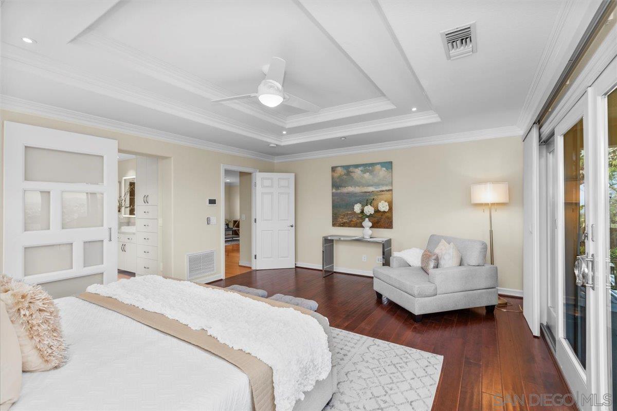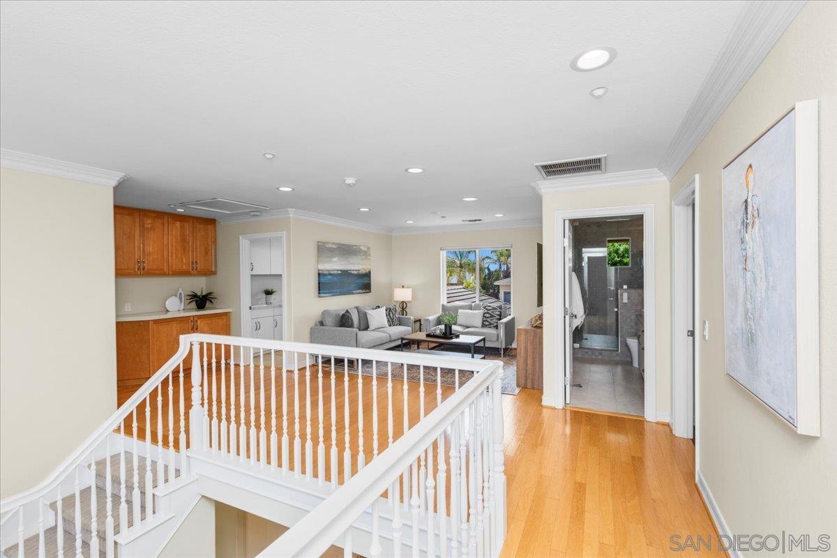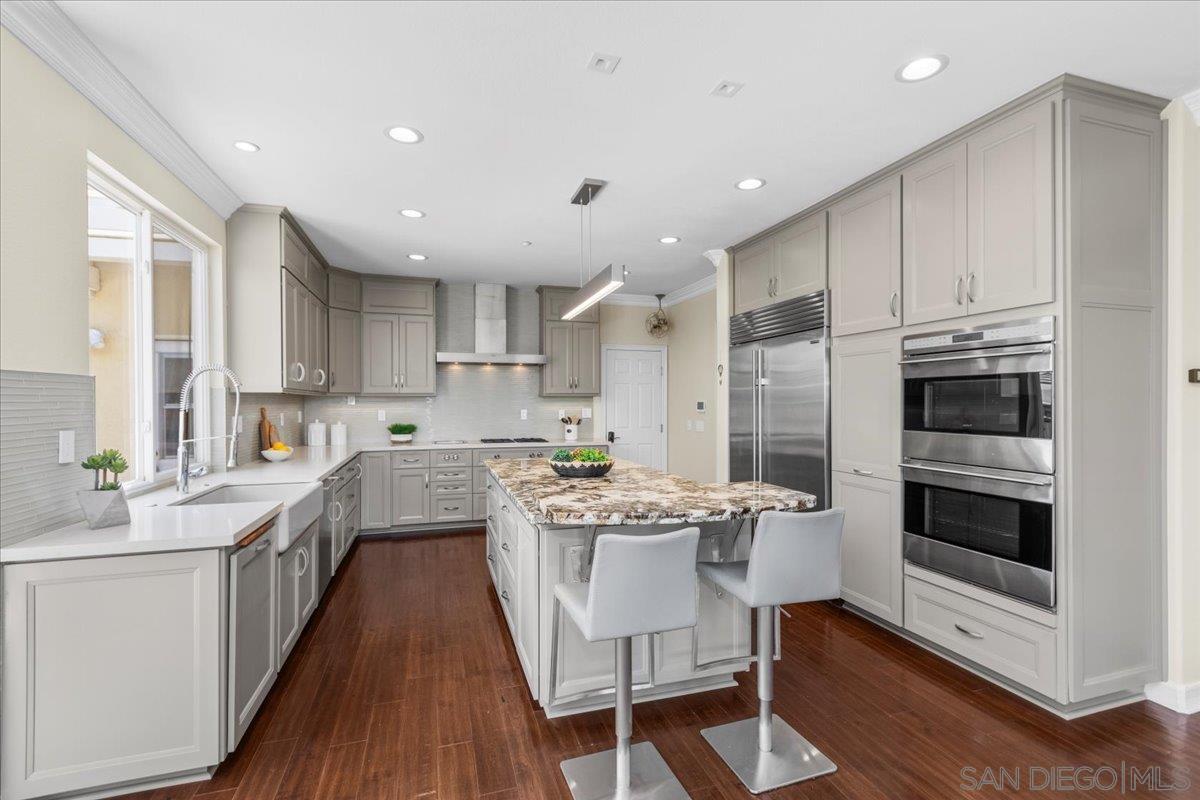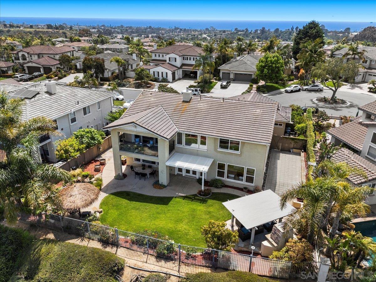 Located in a culdesac in the exculsive gated community of Sandalwood in Encinitas, sits a spacious 5 bedroom home + detached ADU with a full kitchen & bath. The ADU is ideal for multigenerational living, guests, a private office or rental income.The backyard showcases peaceful mountain views and upstairs you ll catch a peek of the ocean. The first floor includes a bedroom with en-suite bathroom, perfect for visitors or extended family. The kitchen has been completely redesigned with high-end appliances, custom cabinetry with pull-outs & unique countertops that make it a true gathering space. It flows into a large family room with a fireplace, creating a natural hub for daily living & entertaining. Upstairs, the primary suite includes a private balcony with views, a beautifully remodeled bathroom with dual sinks, Kohler jetted tub, all-glass shower & custom cabinetry. The walk-in closet is a standout with Italian-built rotating carousels & built-in storage. The 2nd floor also includes a convenient laundry room & bonus room with large picture windows overlooking the mountains. Throughout the home, you'll find upgrades like dual-zone A/C with electrostatic air filtration, remote-controlled window coverings, wood flooring, VOC-free paint & smart home features like Arlo cameras, MyQ garage control, Insteon lighting & more. Outside, the yard is designed for both relaxation & entertaining, with an electric pergola, outdoor fireplace, a variety of fruit trees & raised garden beds & a 3 car garage. Located just 1.7 miles from Moonlight Beach & close to shopping dining & schools.Interested in this Listing?