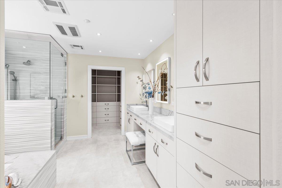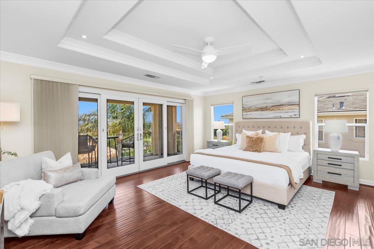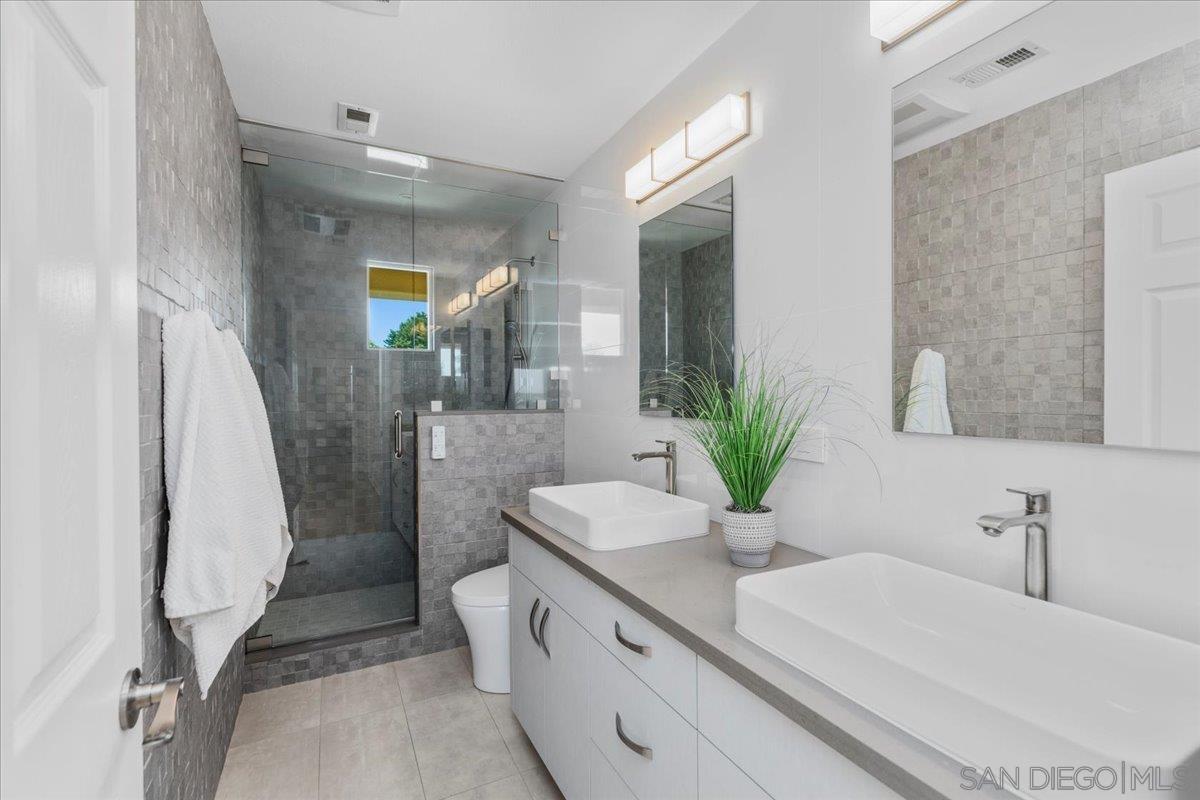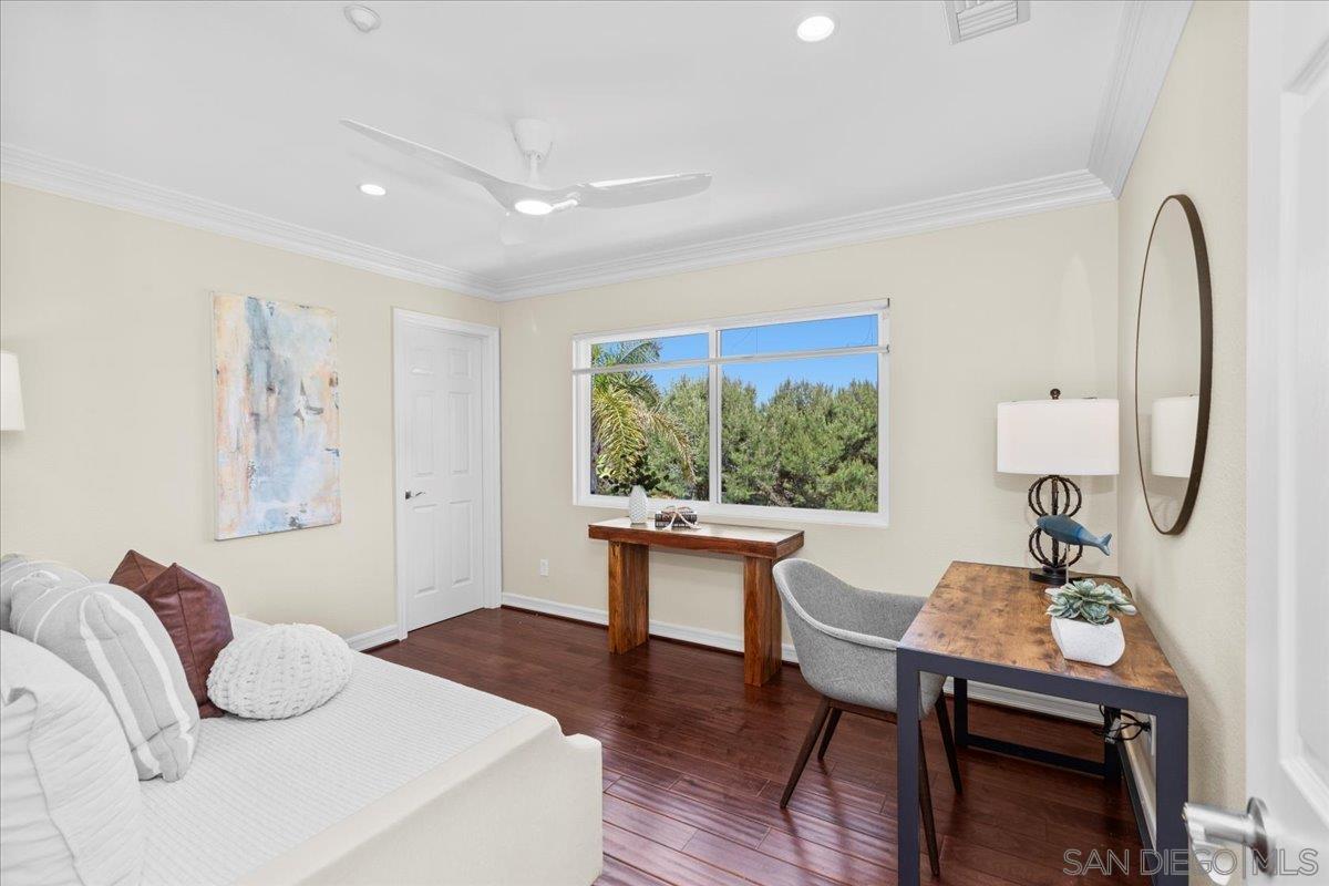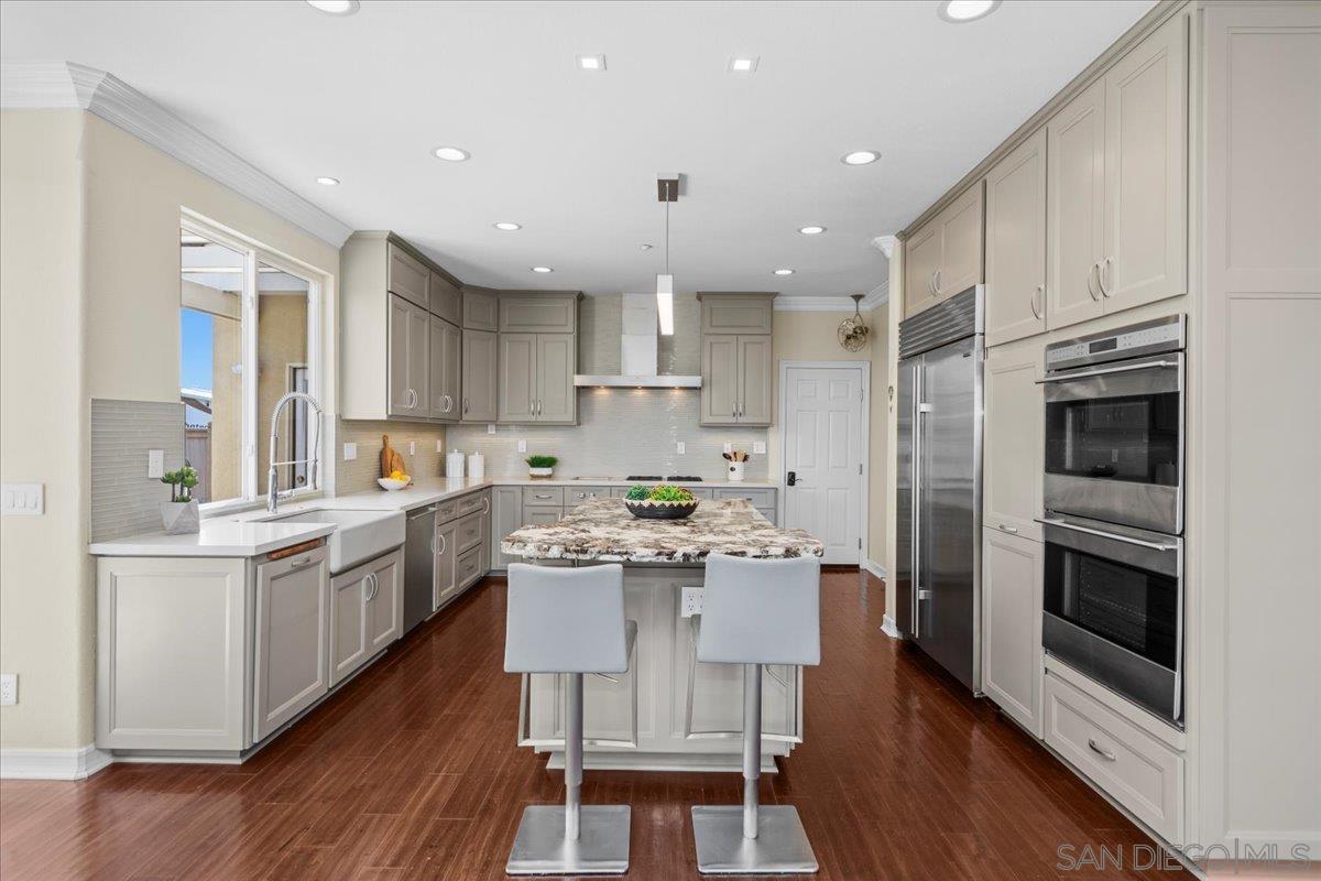 Located in a culdesac in the exculsive gated community of Sandalwood in Encinitas, sits a spacious 5 bedroom home + detached ADU with a full kitchen & bath. The ADU is ideal for multigenerational living, guests, a private office or rental income.The backyard showcases peaceful mountain views and upstairs you ll catch a peek of the ocean. The first floor includes a bedroom with en-suite bathroom, perfect for visitors or extended family. The kitchen has been completely redesigned with high-end appliances, custom cabinetry with pull-outs & unique countertops that make it a true gathering space. It flows into a large family room with a fireplace, creating a natural hub for daily living & entertaining. Upstairs, the primary suite includes a private balcony with views, a beautifully remodeled bathroom with dual sinks, Kohler jetted tub, all-glass shower & custom cabinetry. The walk-in closet is a standout with Italian-built rotating carousels & built-in storage. The 2nd floor also includes a convenient laundry room & bonus room with large picture windows overlooking the mountains. Throughout the home, you'll find upgrades like dual-zone A/C with electrostatic air filtration, remote-controlled window coverings, wood flooring, VOC-free paint & smart home features like Arlo cameras, MyQ garage control, Insteon lighting & more. Outside, the yard is designed for both relaxation & entertaining, with an electric pergola, outdoor fireplace, a variety of fruit trees & raised garden beds & a 3 car garage. Located just 1.7 miles from Moonlight Beach & close to shopping dining & schools.Interested in this Listing?