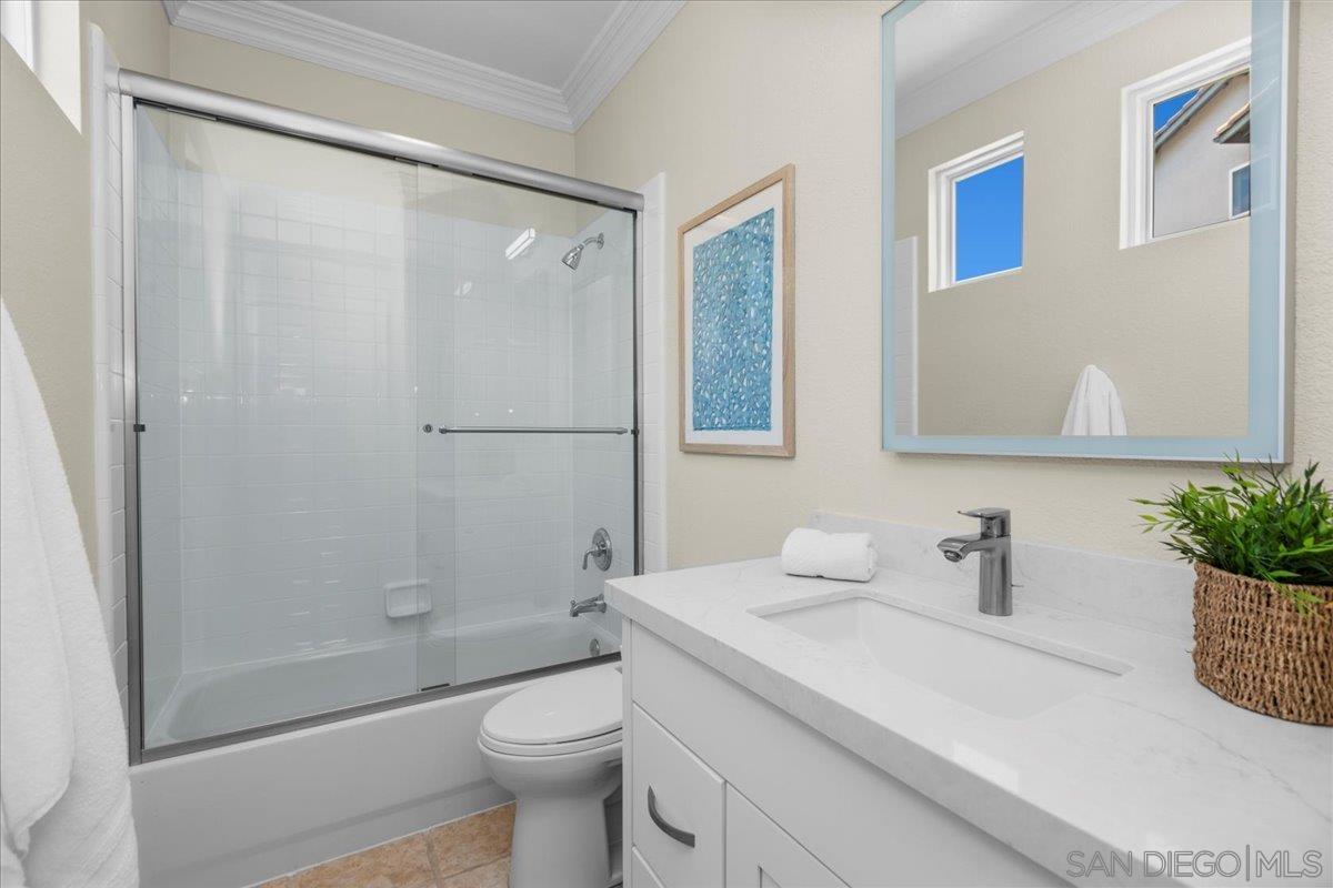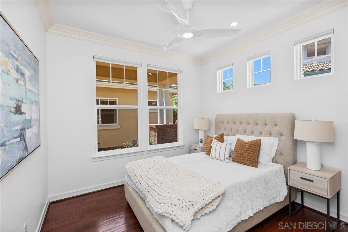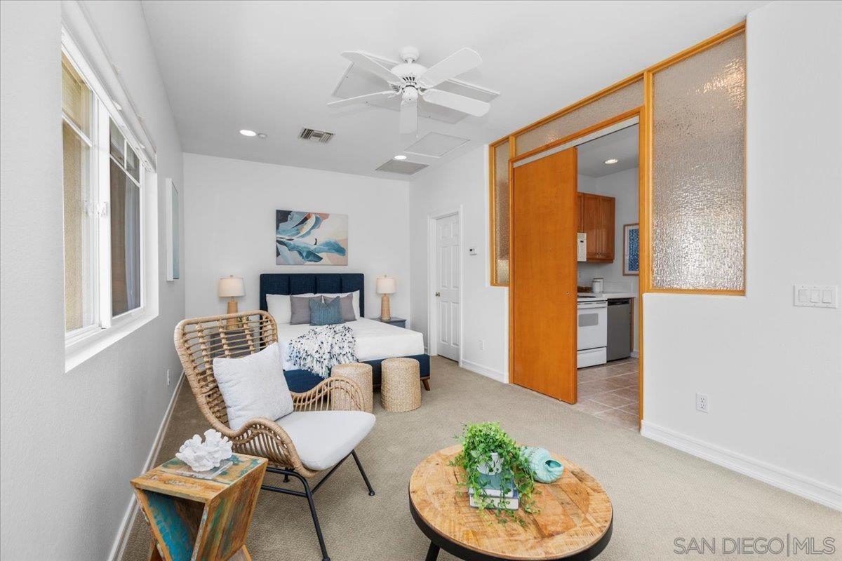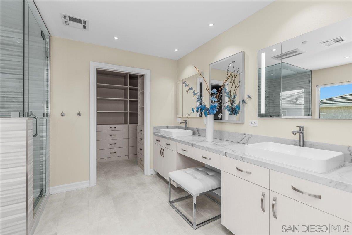 Located in a culdesac in the exculsive gated community of Sandalwood in Encinitas, sits a spacious 5 bedroom home + detached ADU with a full kitchen & bath. The ADU is ideal for multigenerational living, guests, a private office or rental income.The backyard showcases peaceful mountain views and upstairs you ll catch a peek of the ocean. The first floor includes a bedroom with en-suite bathroom, perfect for visitors or extended family. The kitchen has been completely redesigned with high-end appliances, custom cabinetry with pull-outs & unique countertops that make it a true gathering space. It flows into a large family room with a fireplace, creating a natural hub for daily living & entertaining. Upstairs, the primary suite includes a private balcony with views, a beautifully remodeled bathroom with dual sinks, Kohler jetted tub, all-glass shower & custom cabinetry. The walk-in closet is a standout with Italian-built rotating carousels & built-in storage. The 2nd floor also includes a convenient laundry room & bonus room with large picture windows overlooking the mountains. Throughout the home, you'll find upgrades like dual-zone A/C with electrostatic air filtration, remote-controlled window coverings, wood flooring, VOC-free paint & smart home features like Arlo cameras, MyQ garage control, Insteon lighting & more. Outside, the yard is designed for both relaxation & entertaining, with an electric pergola, outdoor fireplace, a variety of fruit trees & raised garden beds & a 3 car garage. Located just 1.7 miles from Moonlight Beach & close to shopping dining & schools.Interested in this Listing?