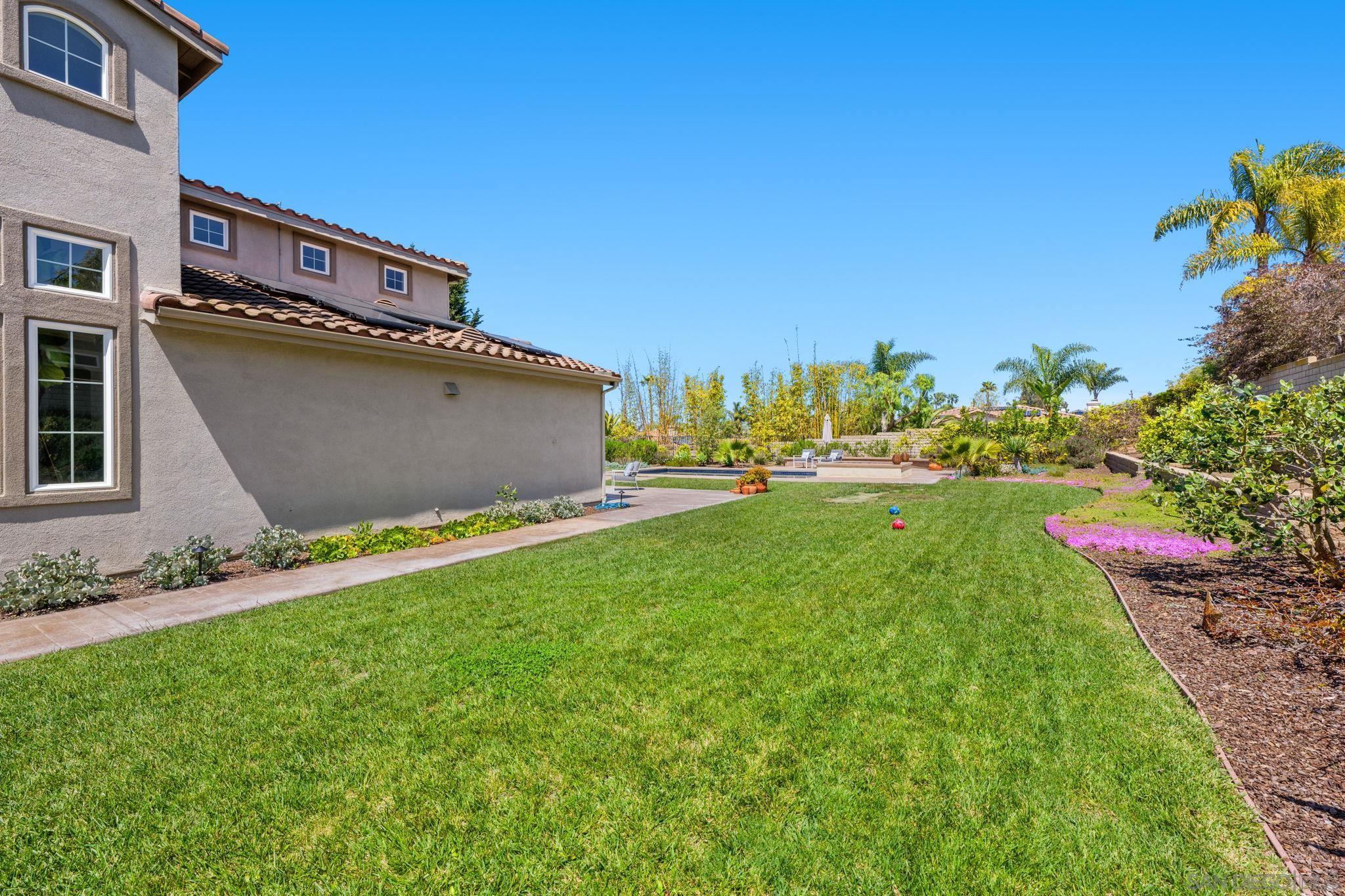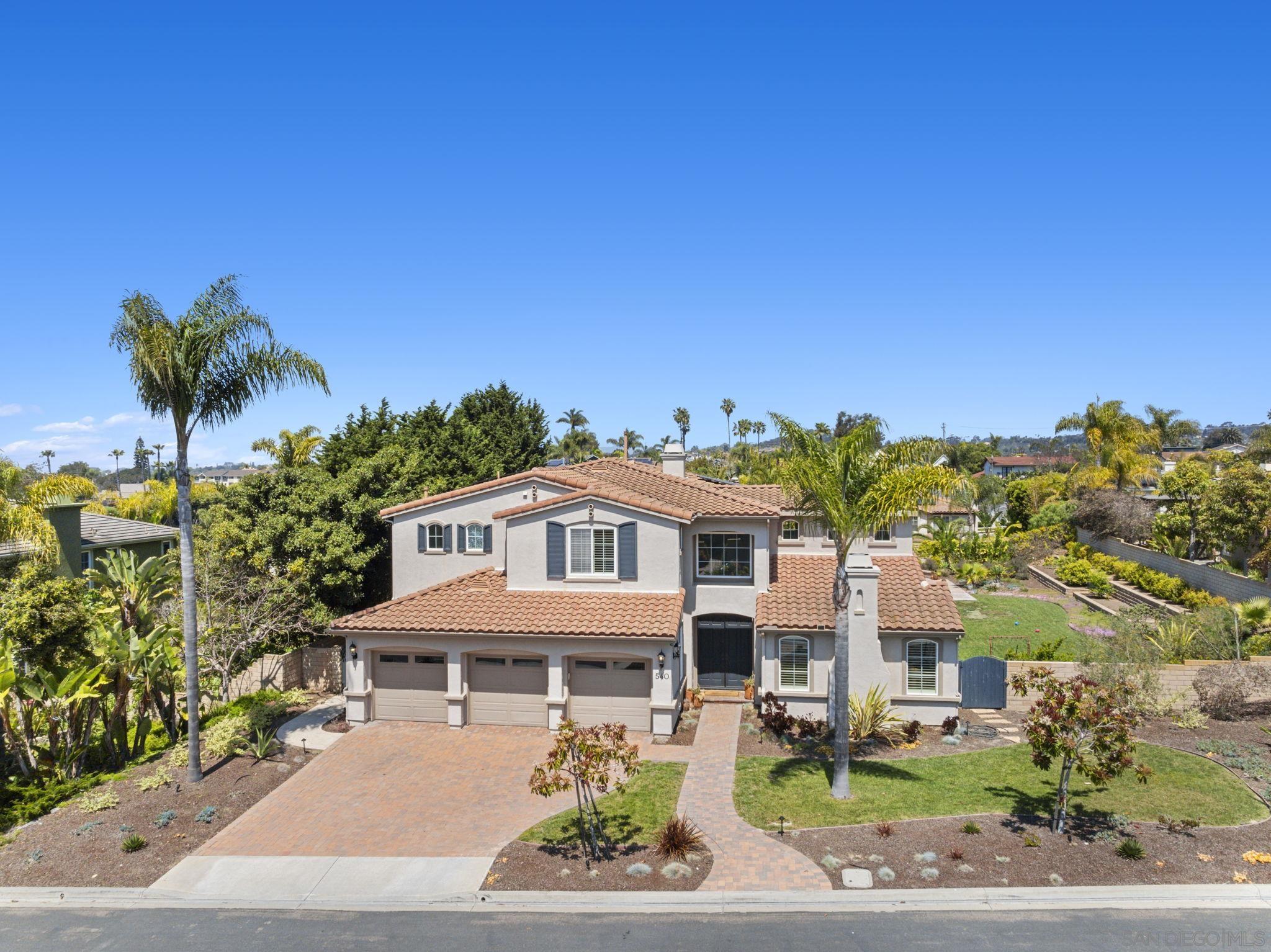Fabulous West Encinitas five bedroom spacious home on HUGE flat, usable, level lot (approximately .43 acres) with gorgeous modern pool & spa. Large grassy yard space with room to add ADU. Located on a tucked away cul-de-sac street with only one mile to the the town and beaches of Encinitas! No HOA. Fantastic floor plan with two secondary bedrooms and two baths downstairs (one BR is on-suite). Upstairs are three large bedrooms and two additional baths. Most rooms in the home are generously oversized. Enjoy Solar for electricity, tankless water heater, oversized family kitchen with large secondary eating area, three car garage, walkway & driveway pavers and the very finest award winning schools, all close by!Interested in this Listing?