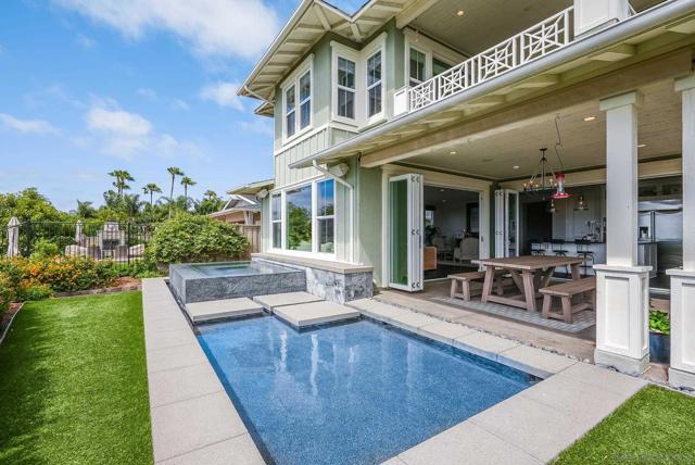 Heavenly ocean views and indoor/outdoor luxury in an award-winning Encinitas community! Nestled on a tranquil cul-de-sac, this stunning 5-bedroom home is part of Shea Homes' sought-after One Channel Island, honored in 2015 as San Diego's best new home community by the Building Industry Association. Coastal Plantation architecture evokes Hawaii and New Zealand with dramatic large windows, folding glass walls, and an open floor plan that seamlessly connects indoor and outdoor living in this exclusive, coastal location. An entertainer's main level takes open-concept to new heights, with two sets of 12' vanishing doors joining airy living space and the contemporary kitchen with a covered loggia for ideal al fresco dining. Breathtaking Pacific sunsets and cool ocean breezes provide the perfect setting to dip in the pool and spa, serve cocktails at the outdoor bar/grill station, and gather together at the built-in fire pit. One downstairs bedroom offers flexible guest or multigenerational space with a full en-suite bath. Upstairs, the incredible master bedroom is brimming with ocean views and natural light through nine windows and glass French doors to a private covered balcony. A luxurious dressing room closet sits across from the master bath with a massive doInterested in this Listing?