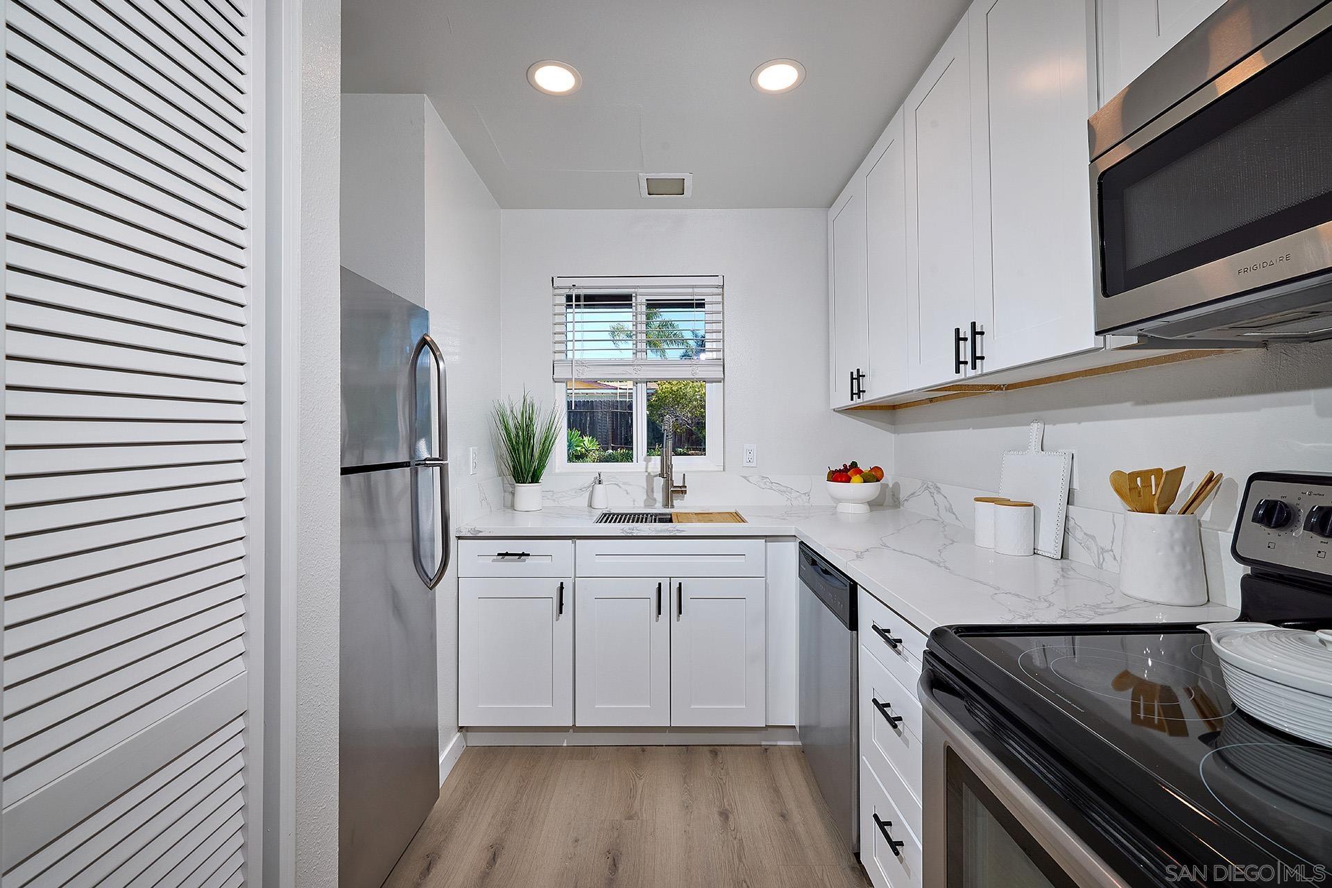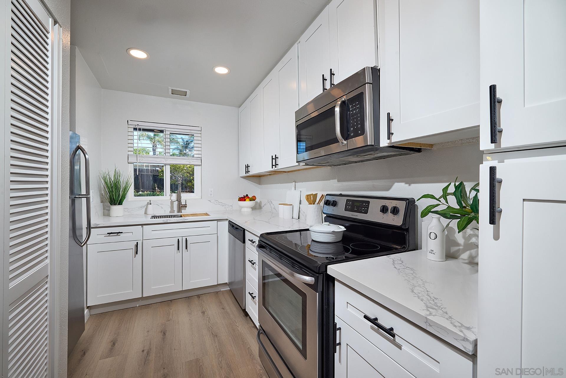 This top-floor, end-unit condo is a prime chance to enjoy coastal living priced right at just 1.4 miles from Moonlight Beach and vibrant downtown Encinitas. Move in with ease brand-new kitchen and bathroom featuring shaker cabinets, quartz countertops, and vinyl plank flooring. The open floor plan extends to a patio overlooking a greenbelt, inviting ocean breezes inside. Convenient full-sized washer/dryer closet. Private one-car garage with storage plus an assigned parking space for extra gear. Quick access to the Coaster and freeway makes exploring San Diego easy.Interested in this Listing?