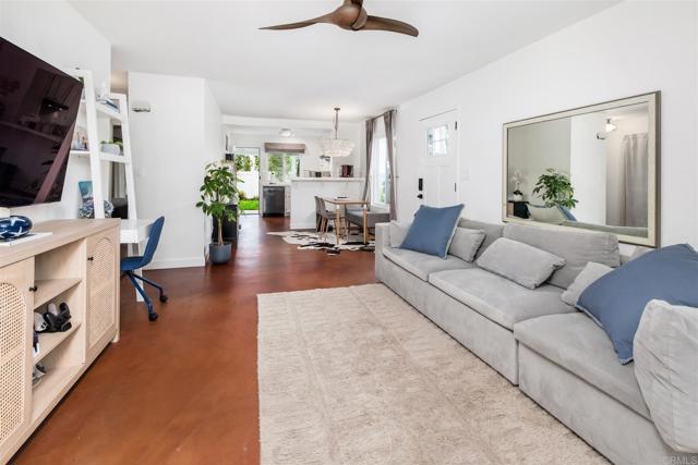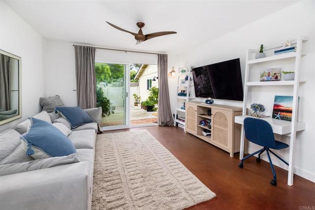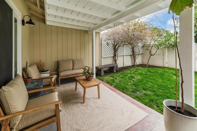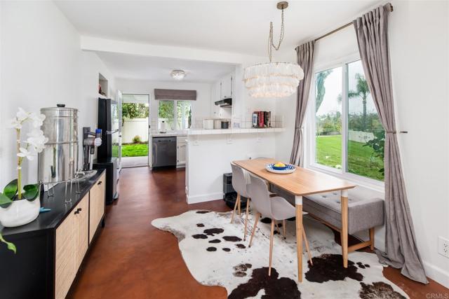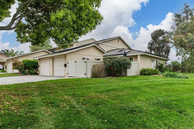 Charming Coastal Condo in the Heart of Encinitas Your Dream Home is here! The property has to be seen to be appreciated; it lives larger than its' sq. Footage. This is truly "indoor, Outdoor California Living" in Encinitas. Welcome to this beautiful 2-bedroom, 2-bathroom condo located in the vibrant and sought-after community of Encinitas, California! This updated townhouse features hilltop views over Encinitas and the surrounding Community Greenbelt, and a location that s just minutes away from stunning beaches, shopping, dining, and top-rated schools, this home truly has it all. The property is only a short bike ride to Moonlight Beach and downtown Encinitas's shopping & dining. The community pool, tennis courts & Pickle Ball are a couple blocks east. Step inside to discover a spacious open-concept living area with plenty of natural light and a breezy shotgun floor plan with an easy to maintain yard. This home is a lucky end unit with a private backyard that blooms with orange trees, bougainvillea and room to grow your veggies. Sit out back with morning coffee or Happy Hour wine under the recently remodeled covered patio. The front end of the property opens through the updated glass slider to a large gated patio with room for bikes, surfboards and a workshop area with bonus citrus trees. Property has updated kitchen appliances including fridge, dishwasher, range, and modern light fixtures throughout. The property interior & the kitchen cabinets are freshly painted. There is also a new front door with a keyless entry. The one car garage has been converted to a finished room with tile floor, back wall & a side door to the outside patio; garage storage space behind the wall too. The garage is equipped with a hard-wired electric car charger and the roof has owned solar panels. The beauty of this charming home is also the lovely neighborhood with a community spirit that is welcoming and fun; filled with impromptu block parties and neighborly trips to the pool. The last winning features are the top schools and the easy access to all that Encinitas and the North County lifestyle offers.