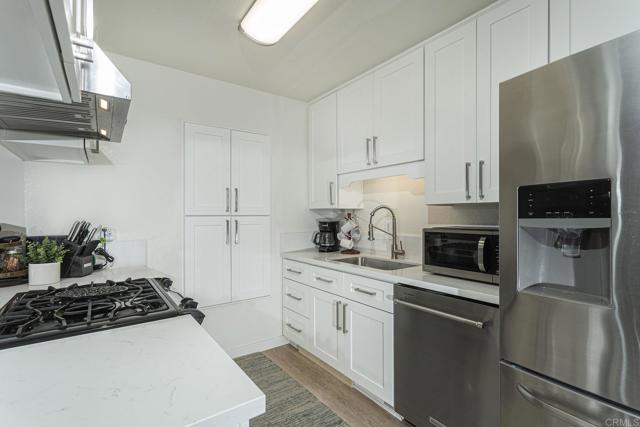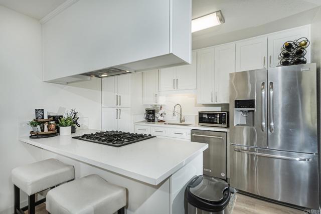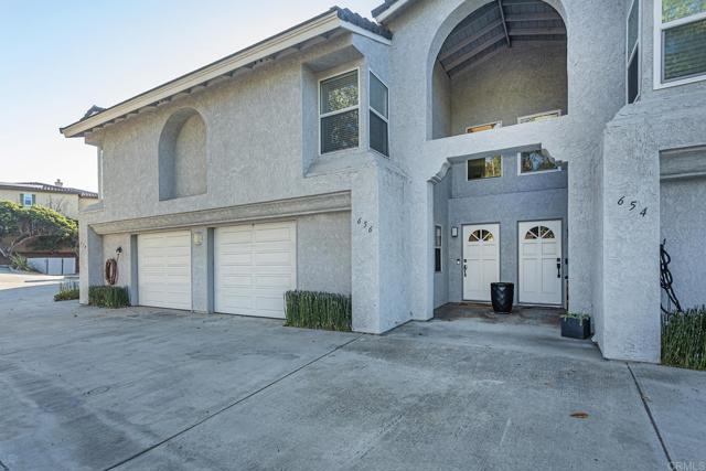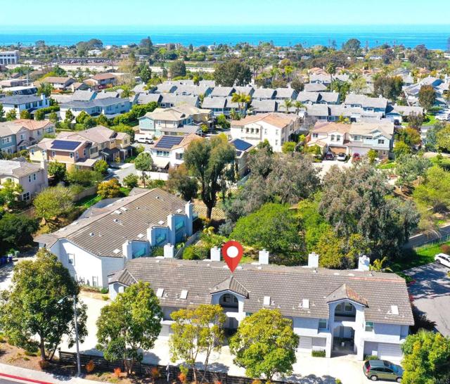 Stylishly updated condo ideally located just 1.1 miles from the renowned Moonlight Beach and within easy reach of upscale shops and vibrant dining, this beautiful home offers the perfect coastal lifestyle. Rarely available, this 9-unit building includes a charming green space accessible from the patio. Step inside to a striking high-entry foyer with a skylight, setting the tone for this inviting home. The renovated kitchen features quartz countertops with bar seating, under-cabinet lighting, new flooring, and stainless-steel appliances, plus a convenient spice cabinet. The living room's centerpiece is a stunning gas fireplace, complete with a stone hearth, wrought iron door, reclaimed wood ledge, and a brick surround with outlet. Upstairs, plush new carpeting enhances the comfort of two ensuite bedrooms. Skylights in the bathrooms bathe the space in natural light, while full-wall closets in both bedrooms provide ample storage. The primary suite includes a private balcony to watch the sunset, an indoor window to enhance the ocean breezes and dual sinks for added convenience. A half bath is located on the main level, along with direct access to the attached one-car garage. An additional assigned parking space is conveniently located just outside the building entrance. Don t miss this rare opportunity to own a coastal retreat in a prime location!Interested in this Listing?