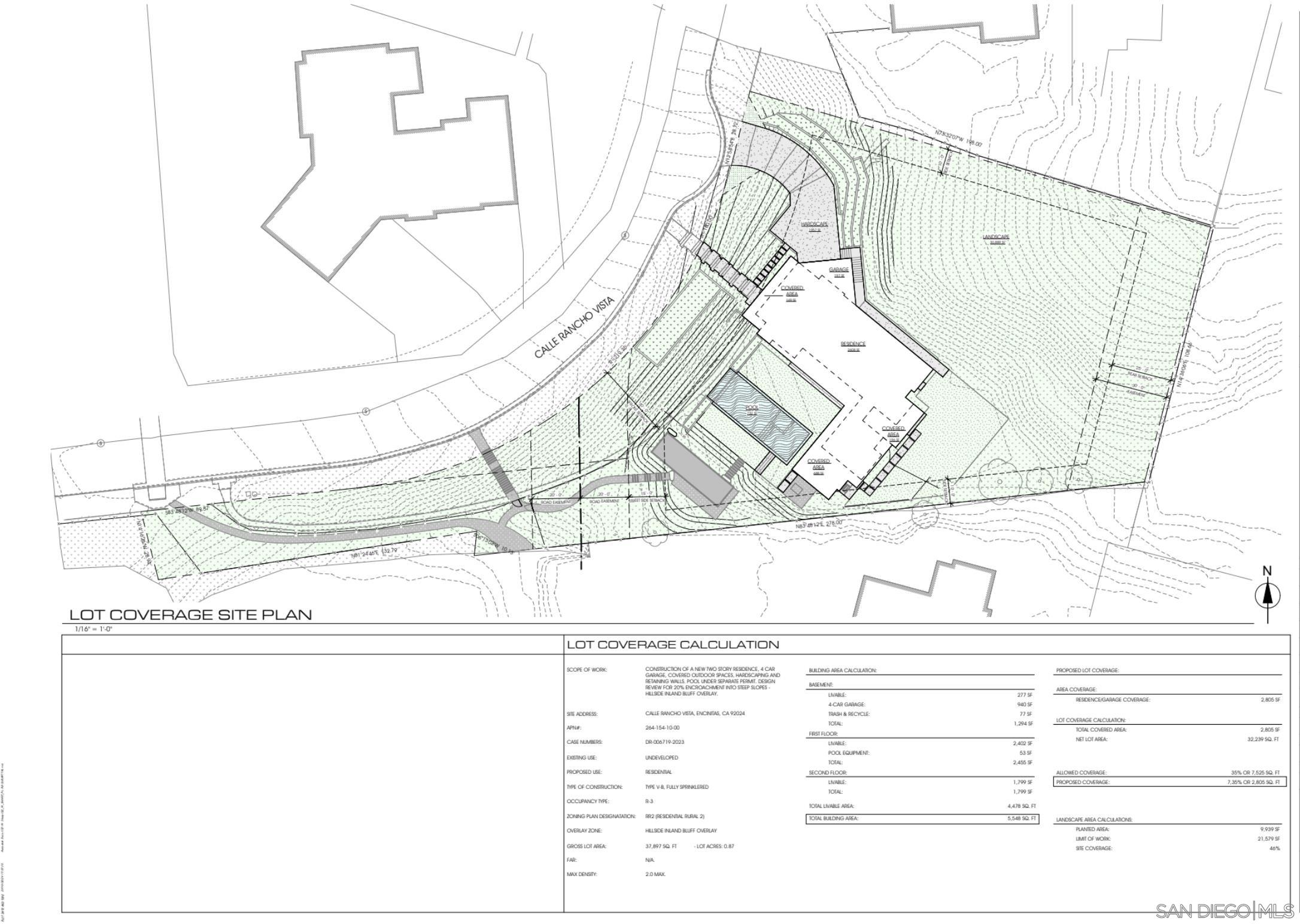 One of the Last Remaining Lots in Olivenhain Canyon Views | Approved Design Path | Prime Location. Rare opportunity to build a custom estate on one of the final available lots in a private Olivenhain cul-de-sac, just 10 minutes from Cardiff Beach. This exceptional property offers stunning canyon views and over three years of completed work with the City of Encinitas. The proposed design features a 4,600 sq ft custom home with a 1,000 sq ft subterranean 4-car garage, 4 bedrooms (plus optional 5th), office, study, private elevator, oversized walk-in pantry, 250 sq ft primary closet, and a spacious backyard with a front-facing infinity edge pool. Progress highlights: Soils and ecological reports completed, grading and slope evaluations done, fire, water, and sewer services evaluated at the street Passed full design review with the City, including engineering Ready to enter structural and construction "doc" phase With just one lot left in this coveted neighborhood, and the potential to break ground as early as late 2025, this is a rare chance to create a signature home in one of North Countys most desirable communities.Interested in this Listing?
